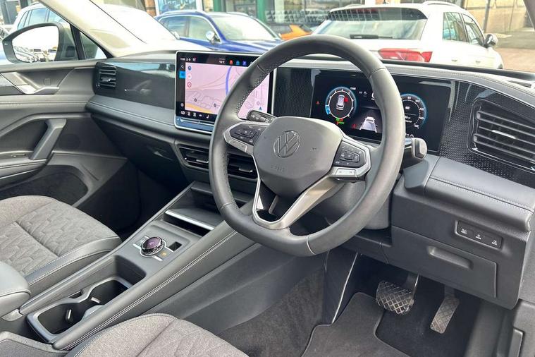 Adaptive cruise control (ACC), Advanced driver attention and drowsiness monitor, Bluetooth mobile phone interface, Car2X technology, Digital Cockpit Pro - 10.25" high resolution dash display screen with customisable menus and information, Dynamic road sign display, E-Sim card for online connectivity, eCall emergency call service, Front Assist - Autonomous emergency braking with pedestrian and cyclist monitoring, Lane change system, Side assist, Rear traffic alert and Exit warning system, Lane keeping system Lane Assist, Multifunction front facing camera, Oncoming vehicle braking when turning including swerve support, Park assistance plus with front and rear parking sensors, Power assisted steering with speed sensitive, Start/stop system with regenerative braking, Warning signal and warning light for front and rear seatbelts not fastened, Wireless App-Connect, Front wheel drive, Digital radio reception (DAB), Diversity antenna for FM reception, Ambient lighting with logo projection, Auto dimming interior rear view mirror, Automatic headlight control system, Body coloured bumpers and air intake with chrome trim, Body coloured door handles, Body-coloured exterior mirror housings, Coming/leaving home lighting function, Heat insulating glass in side and rear windows, Heat insulating windshield, Heated rear window, High level 3rd brake light, Illuminated door handle recesses, Illuminated lightline between headlamps, Rain sensor windscreen wipers, Rear fog light on one side, reversing light on both sides, Rear side wing doors, Rear wiper, 12V outlet in center console rear and in luggage compartment, 12V socket in centre console, 3 bench rear seats in 2nd row, Air care climatronic 3 zone air conditioning system with rear air conditioning control panel, Carpet mats, front and rear, Centre console with illuminated storage compartment with sliding cover and two drinks holders, Ceramique headlining, Door and side trim panel in foam film and woven fabric, Front centre armrest, ISOFIX anchors for child seats on outer rear seats and front passenger seat compatible with i-Size, Mechanical rear seat release, Power adjustable lumbar support in front, Rear bench seat, split folding, longitudinally movable and folding with load-through hatch and centre armrest, Safety optimised front head restraints, Single front passenger seat, Sun visors with illuminated vanity mirrors, Three rear head restraints, Variable luggage compartment floor, Comfort package with park assist plus and Safelock - Tiguan, Design package - Tiguan, 3 point seat belt for centre rear seats, 3 Point seat belts in front with pretensioners, 3 point seatbelts in outer rear with ECE label, Driver and front passenger airbag with front passenger airbag deactivation, Electronic parking brake with auto hold, Front and rear curtain airbags, Front and rear side airbags, Front centre airbag, Front disc brakes, Manual child proof rear door locks, Rear disc brakes, Two tone horn, Warning triangle, Anti theft wheel bolts, Soul instrument panel,