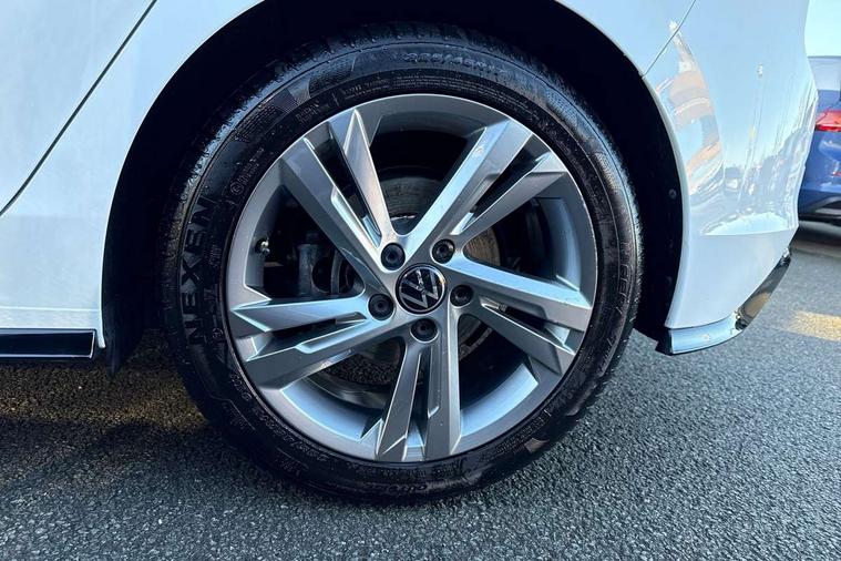 Adaptive cruise control (ACC) with speed limiter and front assist (reacting to vehicles pedestrians and cyclists), Car2X communication, Digital cockpit pro - 10.25" high resolution TFT dash display screen with customizable menus and information, Driver alert system, Dynamic road sign display, eCall - Emergency call service for SOS calls to emergency response, Lane assist, Mobile phone interface with wireless inductive charging function, Multifunction camera for distance control, PAS, Speedo, rev counter, electronic odometer, trip, service interval display, exterior temperature and fuel gauge, Start/Stop function, USB-C ports in the front and rear centre console with increased charging performance, Warning buzzer and light for front seatbelts unfastened, Wireless app connect, Petrol Particulate Filter, XDS electronic differential lock for improved traction and handling, Premium USB cable in choice of either Apple or Android smartphone compatibility, Ambient lighting, exterior illuminated styling elements at the sides, Auto dimming rear view mirror, Automatic headlamp activation with Coming home and Leaving home feature, Automatic headlights, Body colour door handles, Body colour door mirrors with integrated indicators, Body colour rear roof spoiler, Electrically heated and adjustable door mirrors with memory feature, Front and rear electric windows, Heat insulating glass windscreen, Heated rear windscreen, High level 3rd brake light, Highway light, LED License plate illumination, R Line body coloured bumpers, Rain sensor, Rear fog light on one side and reversing lights on both sides, Rear lights incorporating LED technology, Rear side wing doors, Rear tinted glass 65% light absorbing from B pillar backwards, Rear windscreen washer and wiper with interval delay, Welcome light, 12V socket in front centre console, 12V socket in luggage compartment, 3 rear head restraints, 3 seat bench in 2nd row, Ambient lighting - Customisable 30 colour ambient lighting, Black roof lining, Brushed stainless steel pedals, Chrome plated surround to electric mirror button, window switch and air vent surrounds, Drivers and front passengers sun visors with vanity mirrors, Front + rear carpet mats, Front centre armrest with storage compartment, Front cupholders x 2, Front passenger seat, Front reading lights x 2 incorporating LED technology, Front seat lumbar support adjuster, Front sports seats, Glovebox, Height adjustable front seats, Height and reach adjustable steering wheel, Isofix child seat preparation for 2 rear child seats and front passenger seat, Luggage compartment lighting, R Line door and side trim panel, R Line front seats integrated head restraints, R-Line leather wrapped multi function sports heated steering wheel, Removable luggage compartment cover, Sardegna cloth upholstery with front and outer rear seats Art Velour inner sides of bolsters, Split folding backrest with centre armrest and unsplit rear seat bench, Titanium black instrument panel, Woven fabric storage compartments in front and rear doors, 3 point height adj front seatbelts + pretensioners, 3 rear three point seatbelts, ABS, Child locks on rear doors, Driver and front passenger airbag with front passenger airbag deactivation, Drivers and front passengers safety optimised head restraints, Electronic parking brake with auto hold, ESC (Electronic Stability Control), Extended pedestrian protection measures, Front and rear passengers curtain airbag system including front side airbags, Front centre airbag, Front disc brakes, Front side airbags with curtain airbags, Rear disc brakes, Two tone horn, Tyre pressure monitoring system, Alarm with interior protection and deactivation via infotainment system, Electronic engine immobiliser, Carbon grey decorative inserts in dash and front door trim panels, High gloss black centre console,