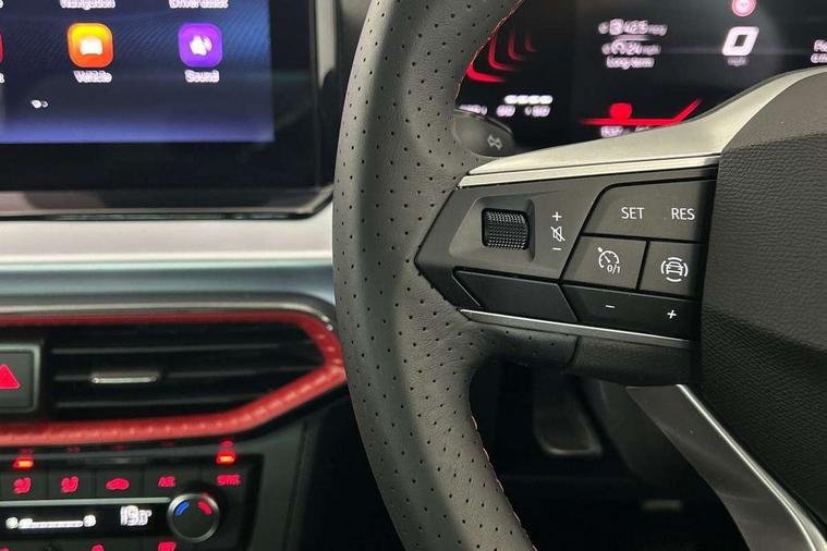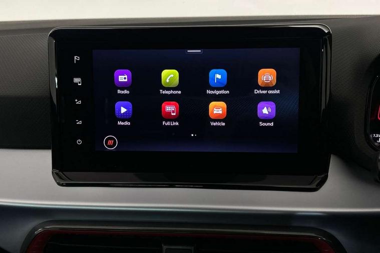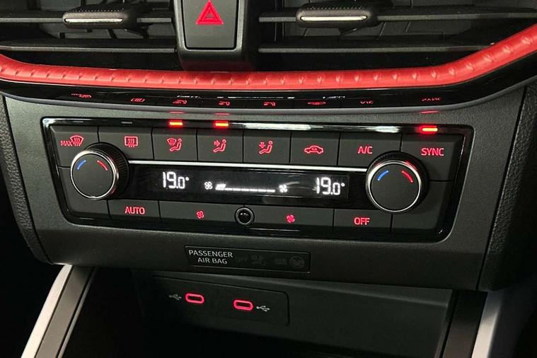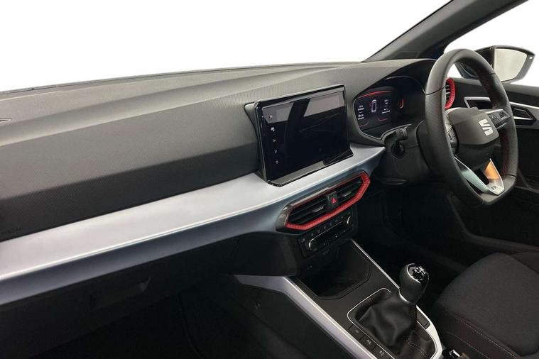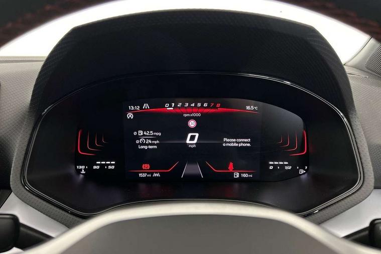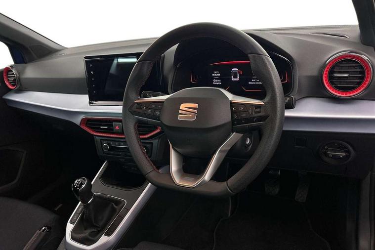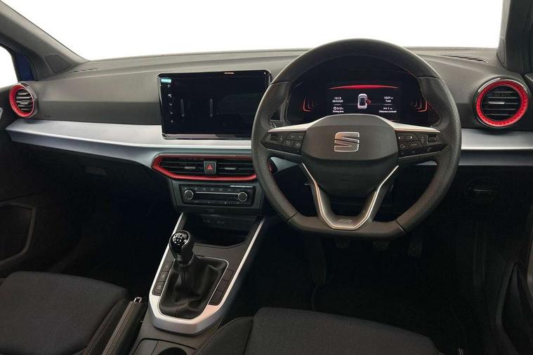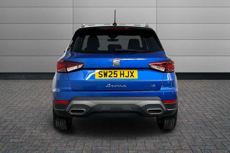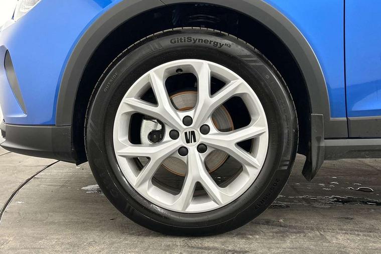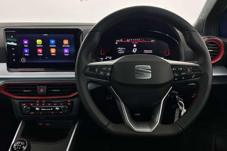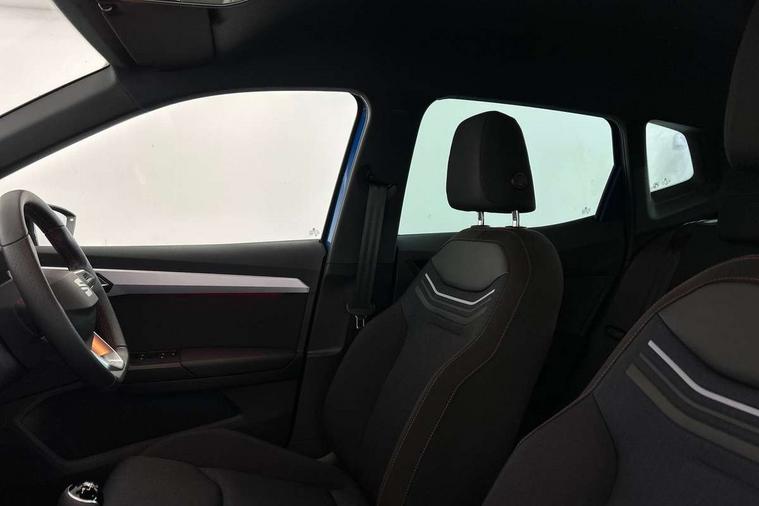 'Lights On' Reminder warning buzzer, 8" Digital cockpit, Digital clock, E-call, Electric speed sensitive power steering, Full link smartphone integration with mirror link, wireless apple carplay, Google android auto + USB Type C cable for apple and android devices, Lane keeping system, Low fuel warning light, Outside temperature display, RPM counter, SEAT Drive profile - Four different models normal-sport-eco-individual, steering response, throttle response, Trip computer, Wireless phone charger, 6 speakers, 9.2" colour touchscreen with navigation system, voice control and USB port (type c), Bluetooth interface for hands free and audio streaming, DAB digital radio and AM/FM radio, Steering wheel mounted audio controls, Anti theft roof antenna, Auto dimming interior rear view mirror, Automatic activation of hazard warning lights, Body coloured bumpers, Body coloured door handle inserts, Chrome roof rails and window surrounds, Dark tinted rear windows, Electric front/rear windows, Electrically adjustable, heated and folding door mirrors, Front fog lights with cornering function and rear fog light, FULL LED automatic headlights with dynamic headlight range control, coming and leaving home, LED daytime running lights, LED rear tail lights and licence plate lights, Protective side mouldings, Rain sensing wipers, Rear side wing doors, Rear spoiler, Rear window wash/wipe, Roof colour door mirrors, Third brake light, Twin exhaust pipe styling hidden exhaust pipe, Visible VIN plate, 2 cupholders, 3 seat bench in 2nd row, 60/40 split folding rear seat, Aircare filter, Black interior roof, Cloth upholstery, Double boot floor, Driver sunvisor with covered mirror + card holder, Dual zone climate control, Front courtesy light with front reading lights, Gear shift indicator, Height adjustable front seats, Height/reach adjustable steering column, Illuminated air vent surrounds, Illuminated boot, Instrument lighting with brightness control, Interior ambient lighting, Interior light in footwell, central console and door panel, ISOFIX points in outer rear seats with top tether anchorage points, Passenger sunvisor with vanity mirror, Perforated flat bottomed leather steering wheel/gear knob/handbrake with red stitching and FR logo, Potentiometer, Single front passenger seat, Two front and three rear height adjustable headrests, Interior chrome pack - Arona, Safe and driving pack (S) - Arona, 3 point seatbelts on all rear seats, ABS, Active front headrests, Child locks on rear doors, Driver and front passenger airbags with front passenger airbag de activation, front side and curtain airbags, Emergency Brake Assist (EBA) and front assist, Front and rear seatbelt reminder, Hill hold control, Multi-Collision braking, Tiredness recognition system, Traction control, Tyre pressure monitoring system, Alarm with back up horn with tow away protection, Deadlock, Electronic engine immobiliser, Locking wheel bolts, Remote central locking, Titan black dashboard, 17" Dynamic alloy wheels,