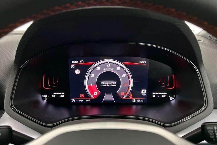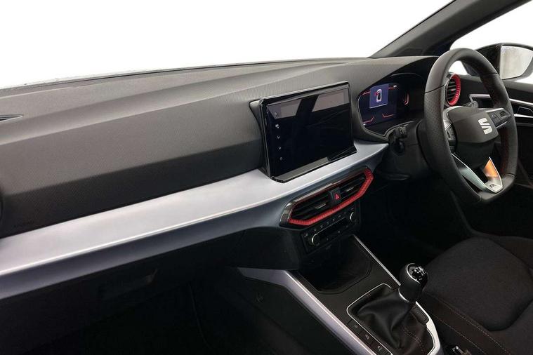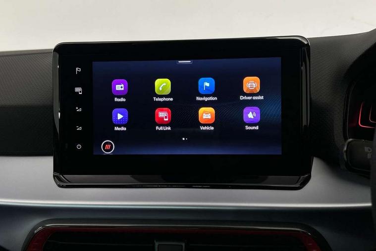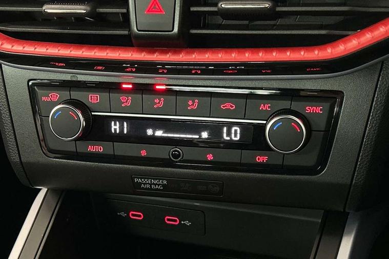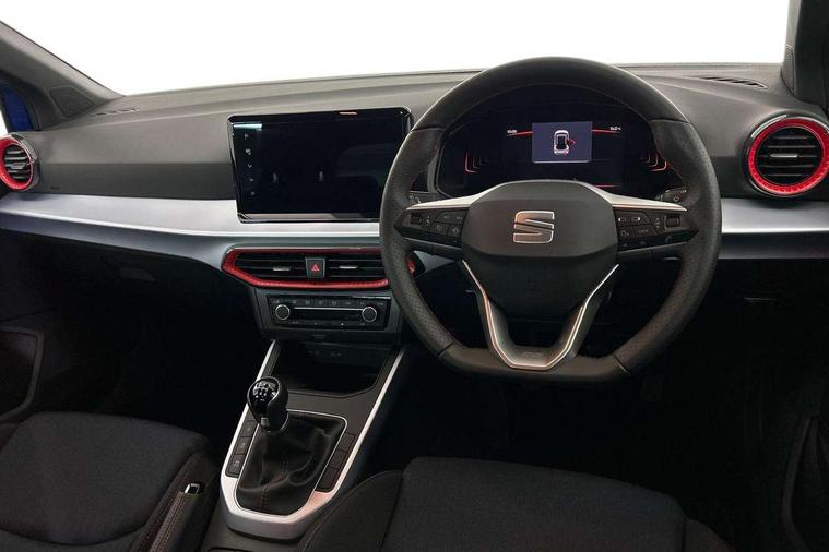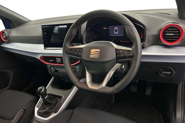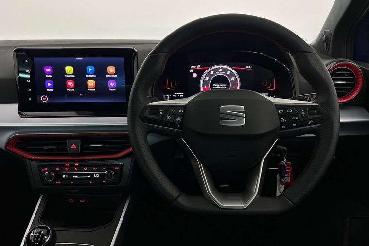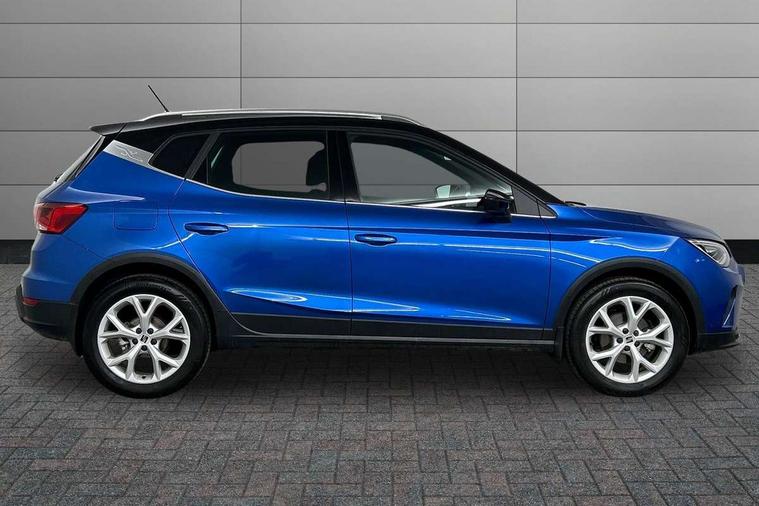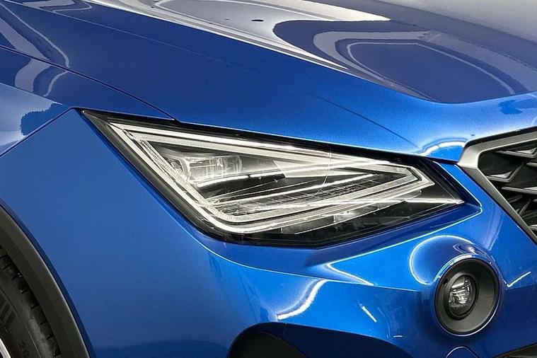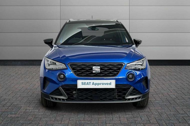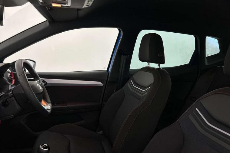 'Lights On' Reminder warning buzzer, 8" Digital cockpit, Digital clock, E-call, Electric speed sensitive power steering, Full link smartphone integration with mirror link, wireless apple carplay, Google android auto + USB Type C cable for apple and android devices, Lane keeping system, Low fuel warning light, Outside temperature display, RPM counter, SEAT Drive profile - Four different models normal-sport-eco-individual, steering response, throttle response, Trip computer, Wireless phone charger, 6 speakers, 9.2" colour touchscreen with navigation system, voice control and USB port (type c), Bluetooth interface for hands free and audio streaming, DAB digital radio and AM/FM radio, Steering wheel mounted audio controls, Anti theft roof antenna, Auto dimming interior rear view mirror, Automatic activation of hazard warning lights, Body coloured bumpers, Body coloured door handle inserts, Chrome roof rails and window surrounds, Dark tinted rear windows, Electric front/rear windows, Electrically adjustable, heated and folding door mirrors, Front fog lights with cornering function and rear fog light, FULL LED automatic headlights with dynamic headlight range control, coming and leaving home, LED daytime running lights, LED rear tail lights and licence plate lights, Protective side mouldings, Rain sensing wipers, Rear side wing doors, Rear spoiler, Rear window wash/wipe, Roof colour door mirrors, Third brake light, Twin exhaust pipe styling hidden exhaust pipe, Visible VIN plate, 2 cupholders, 3 seat bench in 2nd row, 60/40 split folding rear seat, Aircare filter, Black interior roof, Cloth upholstery, Double boot floor, Driver sunvisor with covered mirror + card holder, Dual zone climate control, Front courtesy light with front reading lights, Gear shift indicator, Height adjustable front seats, Height/reach adjustable steering column, Illuminated air vent surrounds, Illuminated boot, Instrument lighting with brightness control, Interior ambient lighting, Interior light in footwell, central console and door panel, ISOFIX points in outer rear seats with top tether anchorage points, Passenger sunvisor with vanity mirror, Perforated flat bottomed leather steering wheel/gear knob/handbrake with red stitching and FR logo, Potentiometer, Single front passenger seat, Two front and three rear height adjustable headrests, Interior chrome pack - Arona, Safe and driving pack (S) - Arona, 3 point seatbelts on all rear seats, ABS, Active front headrests, Child locks on rear doors, Driver and front passenger airbags with front passenger airbag de activation, front side and curtain airbags, Emergency Brake Assist (EBA) and front assist, Front and rear seatbelt reminder, Hill hold control, Multi-Collision braking, Tiredness recognition system, Traction control, Tyre pressure monitoring system, Alarm with back up horn with tow away protection, Deadlock, Electronic engine immobiliser, Locking wheel bolts, Remote central locking, Titan black dashboard, 17" Dynamic alloy wheels,