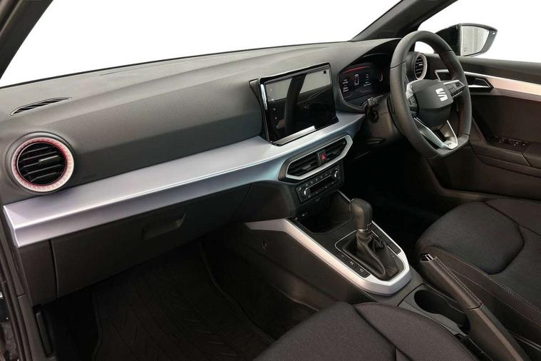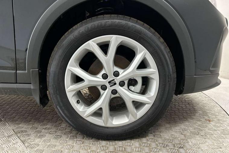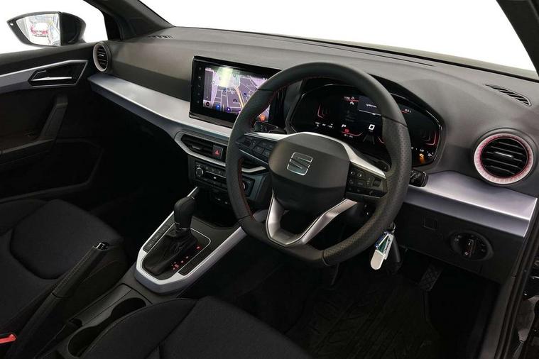 'Lights On' Reminder warning buzzer, 8" Digital cockpit, Digital clock, E-call, Electric speed sensitive power steering, Full link smartphone integration with mirror link, wireless apple carplay, Google android auto + USB Type C cable for apple and android devices, Lane keeping system, Low fuel warning light, Outside temperature display, RPM counter, SEAT Drive profile - Four different models normal-sport-eco-individual, steering response, throttle response and gear shifts mode, Trip computer, Wireless phone charger, 6 speakers, 9.2" colour touchscreen with navigation system, voice control and USB port (type c), Bluetooth interface for hands free and audio streaming, DAB digital radio and AM/FM radio, Steering wheel mounted audio controls, Anti theft roof antenna, Auto dimming interior rear view mirror, Automatic activation of hazard warning lights, Body coloured bumpers, Body coloured door handle inserts, Chrome roof rails and window surrounds, Dark tinted rear windows, Electric front/rear windows, Electrically adjustable, heated and folding door mirrors, Front fog lights with cornering function and rear fog light, FULL LED automatic headlights with dynamic headlight range control, coming and leaving home, LED daytime running lights, LED rear tail lights and licence plate lights, Protective side mouldings, Rain sensing wipers, Rear side wing doors, Rear spoiler, Rear window wash/wipe, Roof colour door mirrors, Third brake light, Twin exhaust pipe styling hidden exhaust pipe, Visible VIN plate, 2 cupholders, 3 seat bench in 2nd row, 60/40 split folding rear seat, Aircare filter, Black interior roof, Cloth upholstery, Double boot floor, Driver sunvisor with covered mirror + card holder, Dual zone climate control, Front courtesy light with front reading lights, Gear shift indicator, Height adjustable front seats, Height/reach adjustable steering column, Illuminated air vent surrounds, Illuminated boot, Instrument lighting with brightness control, Interior ambient lighting, Interior light in footwell, central console and door panel, ISOFIX points in outer rear seats with top tether anchorage points, Passenger sunvisor with vanity mirror, Perforated flat bottomed leather steering wheel/gear knob/handbrake with red stitching and FR logo, Potentiometer, Single front passenger seat, Steering wheel mounted gearshift paddles, Two front and three rear height adjustable headrests, Interior chrome pack - Arona, Safe and driving pack (S) - Arona, 3 point seatbelts on all rear seats, ABS, Active front headrests, Child locks on rear doors, Driver and front passenger airbags with front passenger airbag de activation, front side and curtain airbags, Emergency Brake Assist (EBA) and front assist, Front and rear seatbelt reminder, Hill hold control, Multi-Collision braking, Tiredness recognition system, Traction control, Tyre pressure monitoring system, Alarm with back up horn with tow away protection, Deadlock, Electronic engine immobiliser, Locking wheel bolts, Remote central locking, Titan black dashboard, 17" Dynamic alloy wheels,