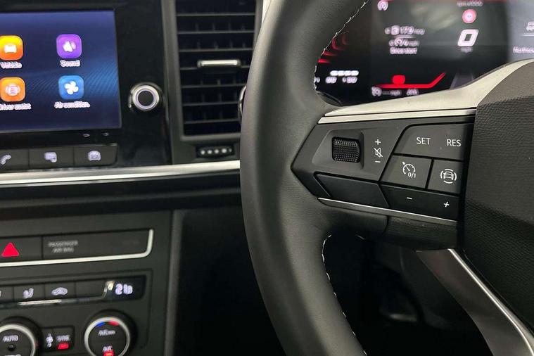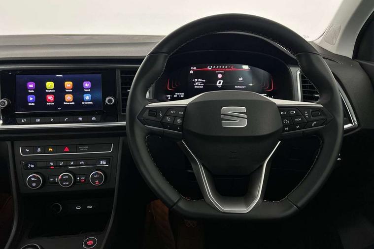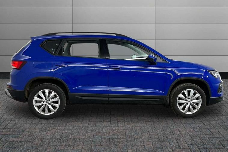 8" Digital cockpit, Colour multi-function on board computer display, Cruise control system with speed limiter, E-call, Outside temperature gauge, PAS, Self parking functionality (includes front and rear parking sensors), Start/stop system, Tailgate, Trip computer, wired and wireless full link smartphone integration, Wireless phone charger, Black roof rails, Black side window trim, Black wheel arch surrounds, Body colour bumpers, Chrome front grille frame, Daytime running lights, Door mirrors with welcome light silhouette, Dynamic headlight range control with self adjusting whilst driving, Electric adjustable/heated/folding door mirrors, Front and rear electric windows, Full LED headlamps with lens and LED front fog lamps with cornering function, LED 3rd brake light, LED rear tail lights, Rear exhaust tailpipe, Rear fog lights, Rear side wing doors, Rear wash/wipe, Variable front intermittent wipers, 12v socket in front, 3 seat bench in 2nd row, 60/40 split folding rear seat, Cloth upholstery with front comfort seats, Drawer under right front seat, Dual zone climate control, Front and rear head restraints, Front centre armrest, Front seat back storage pockets, Height adjustable driver and passenger seat with lumbar adjustment, ISOFIX points in outer rear seats with top tether anchorage points, Leather sports steering wheel and gear knob, Rear armrest and easy back seat release mechanism from boot, Single front passenger seat, Convenience pack - Ateca, Interior lighting pack - Ateca, Media system plus pack - Ateca, Safety and driving pack with attention and drowsiness assist - Ateca, 3x3 point rear seatbelts, ABS, Traction control system (TCS), Electronic stability control (ESC) and Electronic differential lock system (XDS), Airbags - Driver and front passenger airbag with deactivation, front side, two curtain and driver's knee airbags, Electric parking brake with auto hold function, Front and rear seatbelt reminder, Front assist with autonomous emergency braking, Hill hold control, Manual rear child locks, Single tone horn, Tiredness recognition system, Tyre pressure monitoring system, Alarm, Keyless entry, Locking wheel bolts, Remote central locking, Chrome interior detailing, 17" Brilliant silver alloy wheels with super low rolling resistance,
