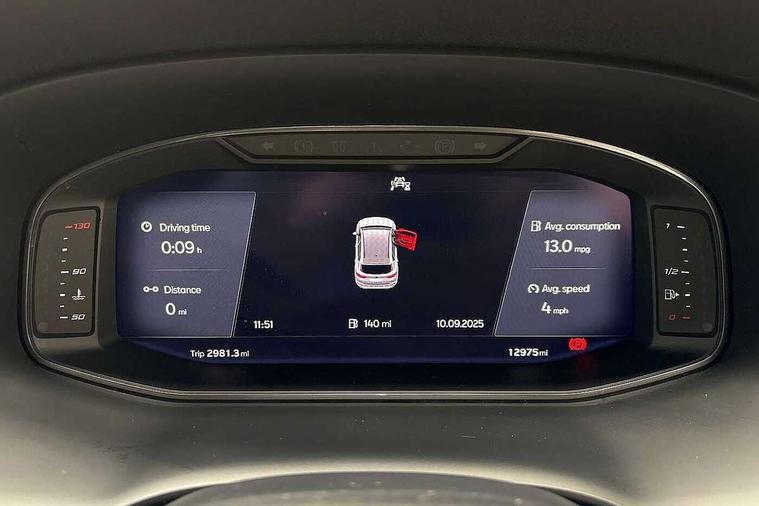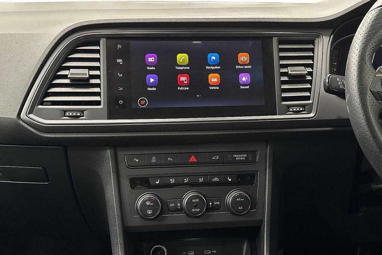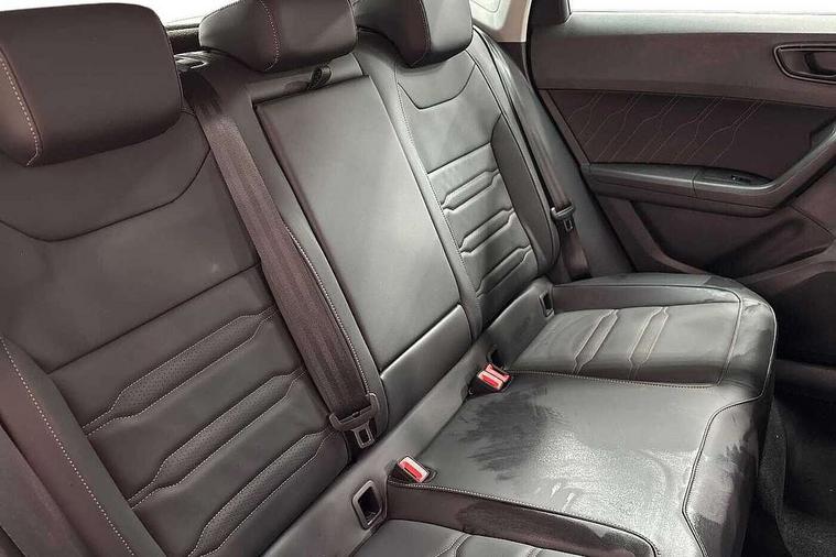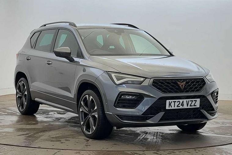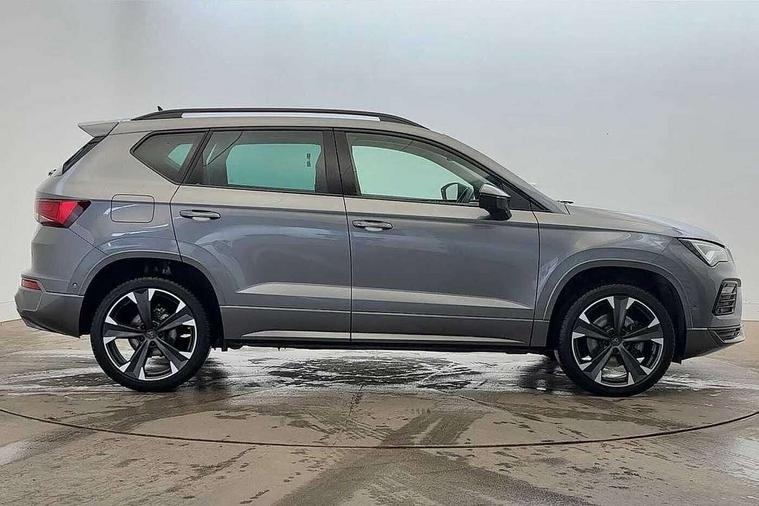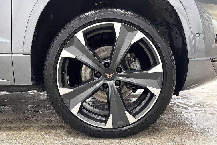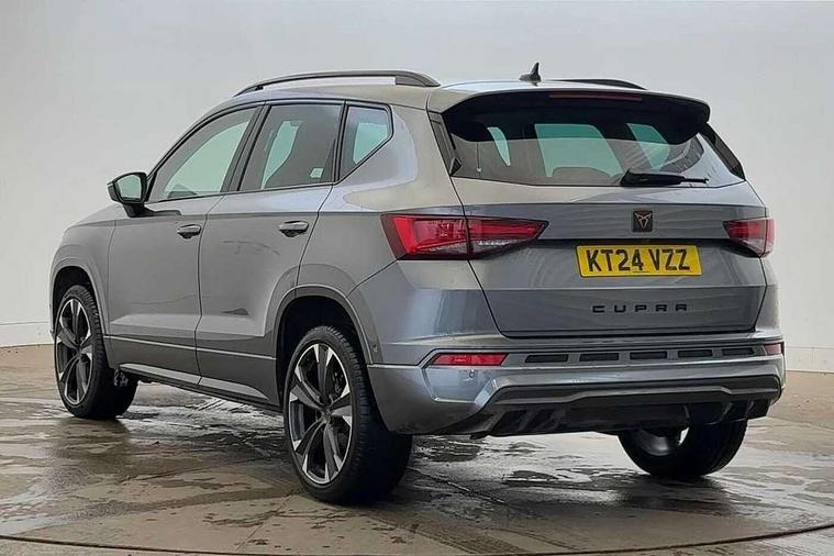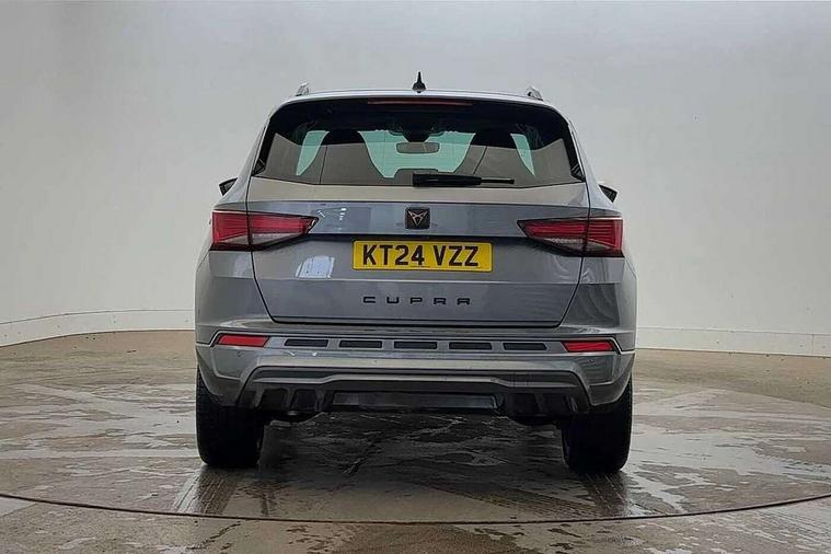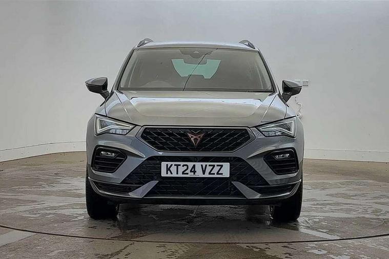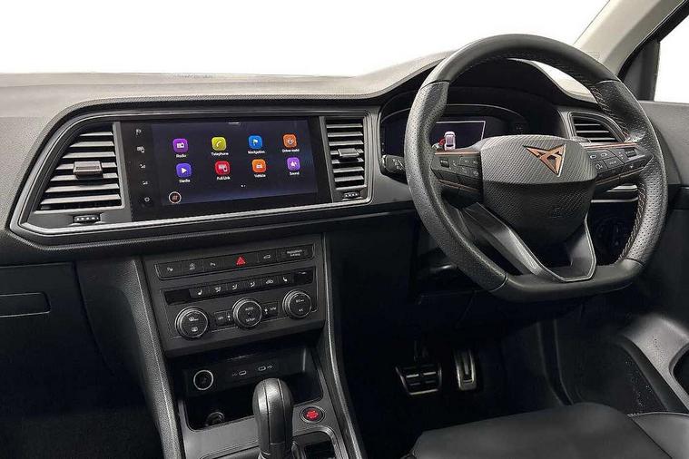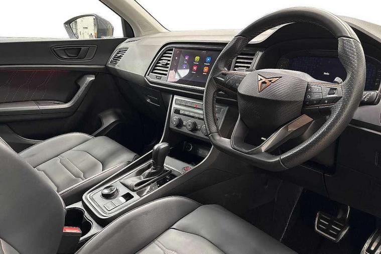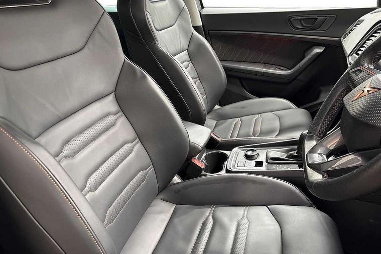 Cruise control system with speed limiter, Digital cockpit, Driving profile selection and conventional shock absorber, E-call, Electric tailgate with virtual pedal, Outside temperature gauge, Progressive power assisted steering, Rear view camera, Self parking functionality (includes front and rear parking sensors), Trip computer, Wireless full link smartphone integration, Wireless phone charger, Front and rear shock absorption, chassis with increased ride height, Steering wheel mounted audio/phone controls, Body colour bumpers with dark aluminium diffusor, Body coloured wheel arch surrounds, Dark tinted rear windows, Daytime running lights, Door mirrors with welcome CUPRA light silhouette, Dynamic headlight range control with self adjusting whilst driving, Electric adjustable/heated/folding door mirrors, Front and rear electric windows, Front grille frame in chrome, Full LED headlamps with lens and LED front fog lamps with cornering function, Gloss black door mirrors, Gloss black roof rails, Gloss black side mouldings, Gloss black side window trim, Illuminated aluminium front door sill, LED rear tail lights with dynamic indicators, Rear fog lights, Rear side wing doors, Rear spoiler, Rear wash/wipe, Specific CUPRA design front bumper, Standard rear exhaust tailpipes, Third brake light, 12v socket in front, 3 seat bench in 2nd row, 60/40 split folding rear seat, Aluminium pedals, Cupra steering wheel emblem, Dual zone climate control, Electric driver seat with memory function, Front and rear head restraints, Front centre armrest, Front seat back storage pockets, Grey roof lining, Heated front seats, Heated steering wheel, Height adjustable driver and passenger seat with lumbar adjustment, ISOFIX points in outer rear seats with top tether anchorage points, Leather sport bucket seats, Leather steering wheel and gear knob, Multicoloured ambient lighting with LED interior illumination, Pedal cluster, Rear armrest and easy back seat release mechanism from boot, Single front passenger seat, Sports steering wheel, Steering wheel mounted gearshift paddles, Storage compartment in roof console for sunglass, Storage compartment under driver's seat, Convenience pack - Ateca, Interior lighting pack - Ateca, Navigation system plus pack with DAB - Ateca, Safety and driving pack - Ateca, 3x3 point rear seatbelts, ABS, Traction control system (TCS), Electronic stability control (ESC) and Electronic differential lock system (XDS), Airbags - Driver and front passenger airbag with deactivation, front side, two curtain and driver's knee airbags, Black brake callipers with CUPRA logo, Electric parking brake with auto hold function, Front and rear seatbelt reminder, Front assist with autonomous emergency braking, Hill hold control, Manual rear child locks, Single tone horn, Tiredness recognition system, Tyre pressure monitoring system, Alarm, Keyless entry, Locking wheel bolts, 19" Sport machined alloy wheels 36/3 in black/silver,