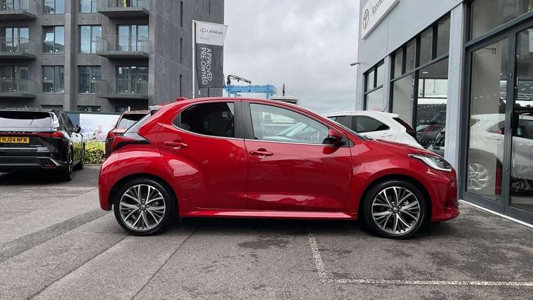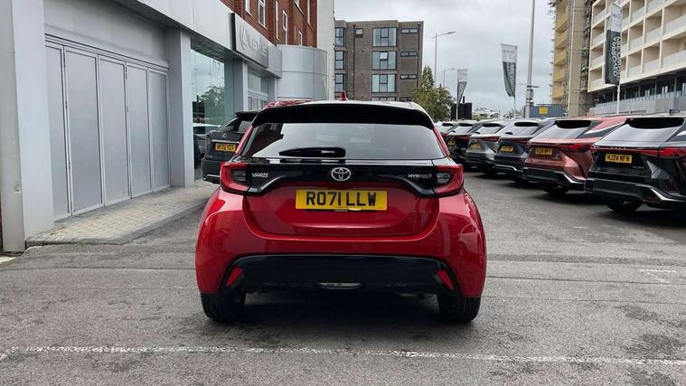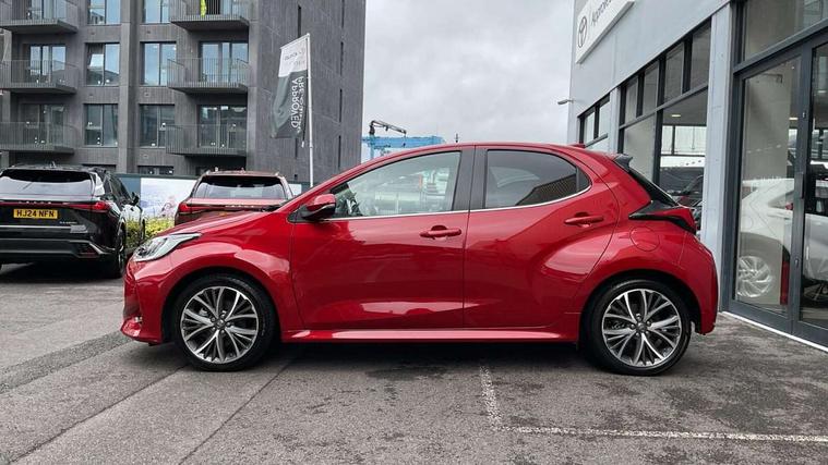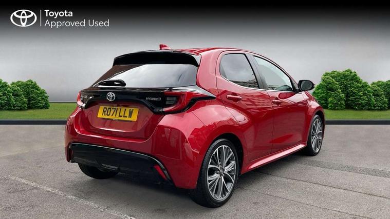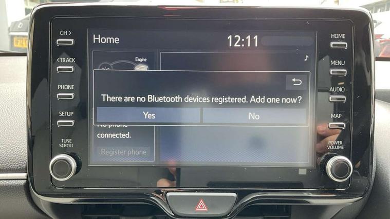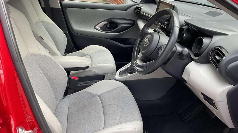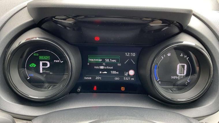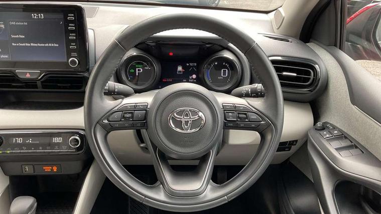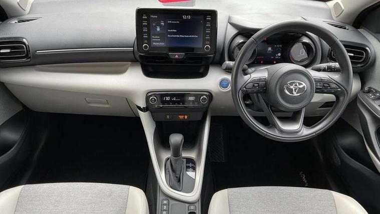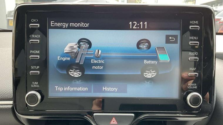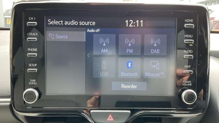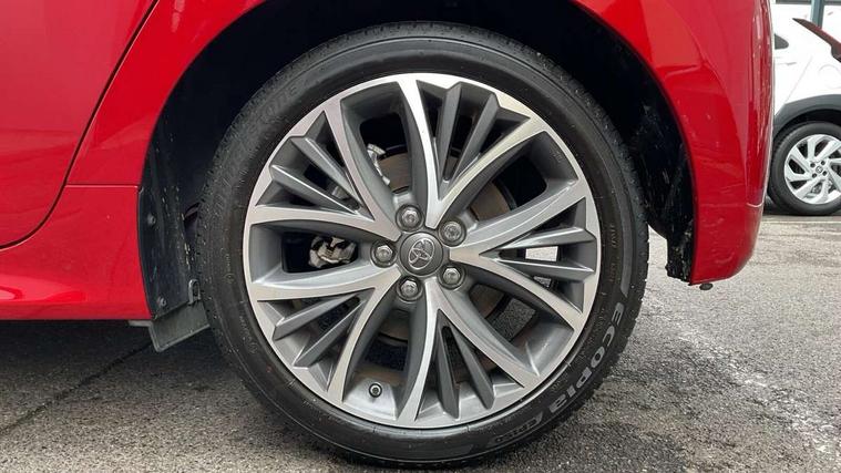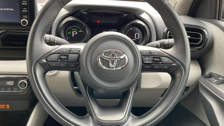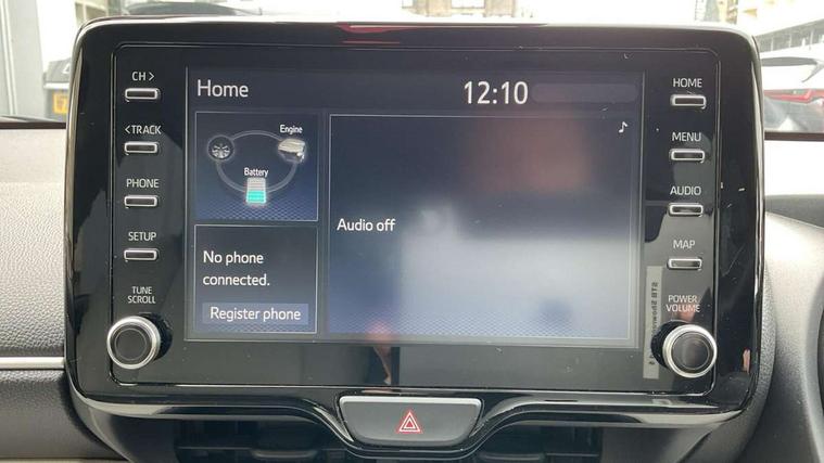Adaptive cruise control, Adjustable speed limit with speed warning, Blind spot monitoring, Bluetooth connectivity, Colour binocular inspired displays with digital speedometer, E-call, Electric power steering, Front and rear parking sensors with intelligent clearance sonar and automatic braking, Hybrid energy display, Multi information display switches on steering wheel, Reversing camera, Smartphone integration with Apple CarPlay and Android auto, Vehicle Stability Control (VSC), 6 speakers, 8" Multimedia display touch screen, USB connection, Acoustic windscreen glass, Automatic headlights, Automatic windscreen wipers with rain sensor, Automatically retractable door mirrors, Body coloured door mirrors, Electric adjustable heated door mirrors, Follow me home headlights, Front auto power windows with anti jam protection, Full LED rear lights, LED daytime running lights, LED front fog lights, LED Headlights, LED High mounted stop lamp, Painted front grille, Rear auto power windows with anti jam protection, Rear privacy glass, Rear side wing doors, Rear spoiler, Rear wiper, Satin lower front grille, Shark fin antenna, Turning signal integrated indicators in door mirrors, 3 adjustable rear headrests, 3 spoke leather steering wheel, 60/40 split folding rear seat, Active headrests, Adjustable boot height, Coat hooks in rear grab handles, Cup holders (2 front & door), Data Communication Module (DCM) connected services, Dual zone automatic air conditioning, Fabric seat with partial synthetic leather upholstery, Front armrest, Front sport seats, Glovebox, Height adjustable driver's seat, Height adjustable passenger seat, Isofix seat fixing, Leather gearshift, Map pockets on the backs of the front seats, Pollen filter, Shopping bag hooks, Single front passenger seat, Tilt/telescopic steering column, 3 point seatbelts on all rear seats, ABS+EBD+Brake assist, Electronic parking brake, Emergency brake light system (EBS), Front passenger airbag on/off switch, Front seatbelt reminder, Hill start assist control (HAC), Rear child proof door locks, Rear seat belt reminder, Supplemental Restraint System (SRS) 8 airbags: Driver & passenger's airbags, dual side curtain airbags, side impact airbags, front centre airbag, Toyota Safety Sense 2, Precollison + Night time Pedestrian & Cyclist Detection, Lane Trace Assist, Auto High Beam, Intelligent ACC & Road Sign Assist, Tyre pressure warning system, Alarm/immobiliser, Keyless smart entry with push button start, Remote powered central double locking doors, Satin chrome interior styling, Soft touch instrument panel, Space saver spare wheel,