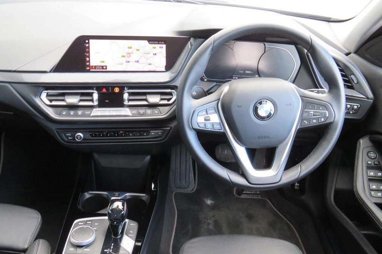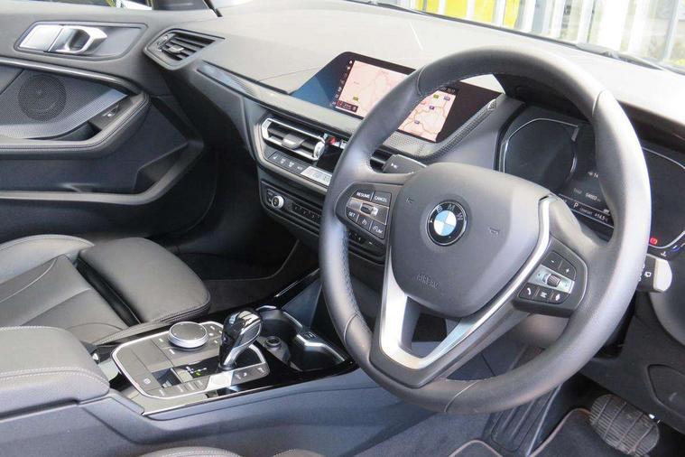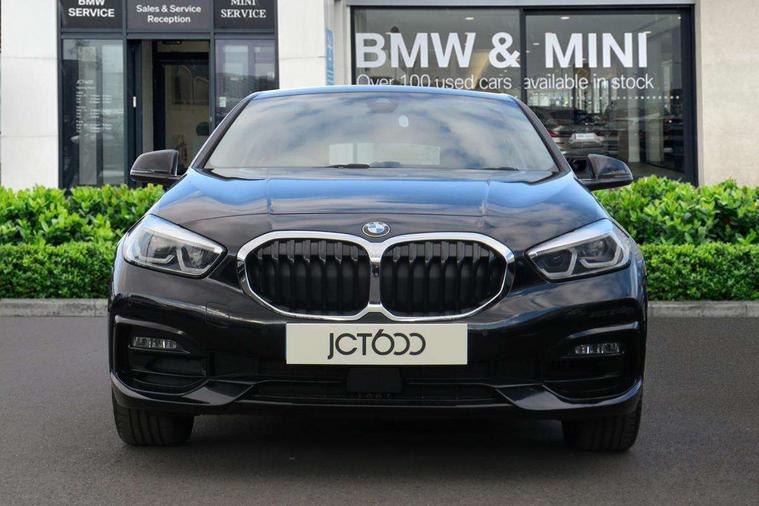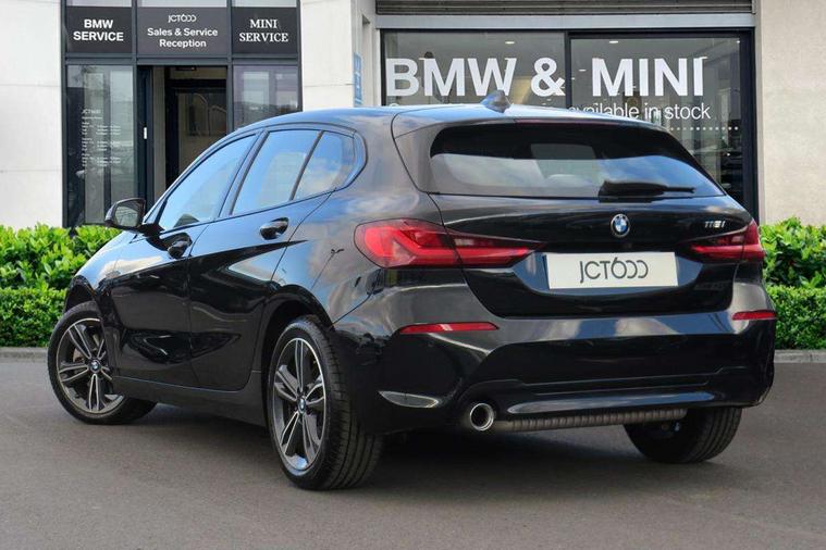 Active guard plus, Attentiveness assist, BMW Online services, BMW Teleservices, Check Control warning system for monitoring of lights and door/luggage compartment open warning, Connected eDrive Services, Eco pro mode, Electric power steering, Integrated owners handbook, On board computer, Optimum shift indicator, Personal Profile, Pull away assistant, Speed limiter, Anti roll bar front and rear, Balancer shaft, Double VANOS, Drive Performance Control, Electronic differential lock, Petrol Particulate Filter, VALVETRONIC engine management, Bluetooth audio streaming, DAB Digital radio, Auto dimming rear view mirror, Body colour door handles, Body colour mirror caps, Chrome exhaust tailpipe in single, round (Exhaust tailpipe, stainless steel - single, round), Chrome kidney grille with extra wide black, high gloss black vertical slats, Direction indicator side lights in exterior mirrors, Fading support, Follow me home headlights, Front and rear electric windows with open and close fingertip control, anti trap facility and comfort closing, Front bumper in Body colour with exclusive Sport air inlets finished in High gloss Black, Front door sill finishers in black plastic with BMW designation, Green tinted heat protection glazing, Headlight beam throw control, Heated, electrically adjustable exterior mirror aspheric on driver side, convex on passenger side, High gloss shadow line exterior trim, High level third brake light, LED daytime running lights, LED front fog lights, Lightweight engineering, Matt black air guide grilles, Matt black roof moulding, B pillar finisher and wheel arch trim, Matt black window frame, Model designation on right side of tailgate, Nearside reverse light in rear light cluster, Rain sensor including auto headlights activation, Rear bumper in Body colour with exclusive Sport design elements finished in High gloss Black, Rear fog lights, Rear window wiper, Shark fin antenna, Visible VIN plate, Welcome lighting, Windscreen wipers with integrated washing jets, 12V power socket in centre console, 2 cupholders in front centre console, 3 rear seat head restraints, 3 spoke sports leather steering wheel in pearl Chrome, Child seat ISOFIX attachment for two outer rear seats and front passenger seat with anchorage points, Conditioned based service, Driver side folding compartment in instrument panel, Folding rear clothes hook, Folding rear seats, Four grab handles integrated in roof lining, Front and rear door pockets, Front and rear side armrest integrated into door trim, Front armrest foldable with integrated storage compartment, Front sports seats with electric side bolster adjustment, Glove compartment, Height adjustable front head restraints, Manual adjust steering wheel, Multi-function controls for steering wheel, Rear seat backrest with manual 60:40 split folding with 3 top tether clips integrated on rear of seat panels, Storage compartment in centre console, Sun visors with vanity mirrors and insert tab, Two zone automatic air conditioning, Velour floor mats, Extended storage pack - 1 Series, Interior lights pack - 1 Series, 2 tone horn, 3 point seatbelts on all seats, front pyrotechnic belt tensioners, stopper and belt force limiters, rear coded belt buckles, Airbags - Front driver and passenger, front and rear head, front side, curtain head protection, Anti lock braking system (ABS) with brake assist, BMW emergency call, Brake drying, Braking readiness, Crash sensor activating central locking release, hazard warning lights, fuel cut off, interior lighting + activation of safety battery terminal clamp, Driver and front passenger seat belt security check, Dynamic stability control + (DSC+), Dynamic Traction Control - DTC, Electrically operated hand brake, Front passenger manual airbag deactivation, Rear child proof door locks, Seatbelt warning, Side impact protection, Tyre pressure monitoring system, Warning triangle and first aid kit, Automatic drive away locking facility, Central locking switch for all doors, fuel filler cap and luggage compartment, Deadlocking function system to all doors, Locking wheel bolts, Remote central locking with two Integrate key, one button for opening and closing all lock, open and close window, button for open luggage compartment, Start/stop button with comfort go keyless engine start and auto start stop deactivation button, Thatcham Cat.1 alarm and immobiliser, Contrast stitching on instrument panel, Illuminated Berlin interior trim, Reduced rolling resistance tyres,