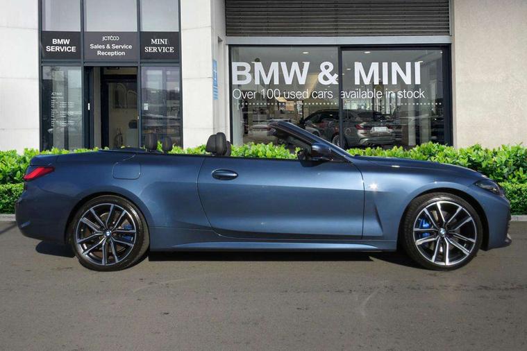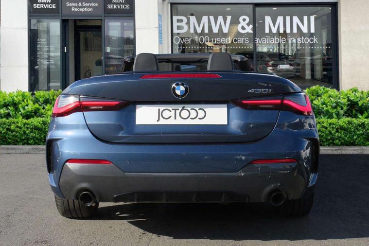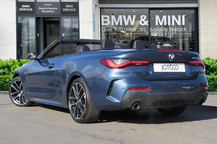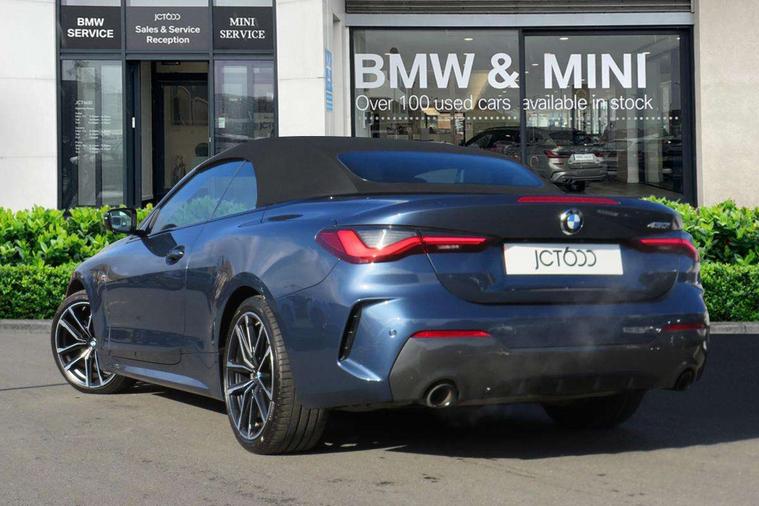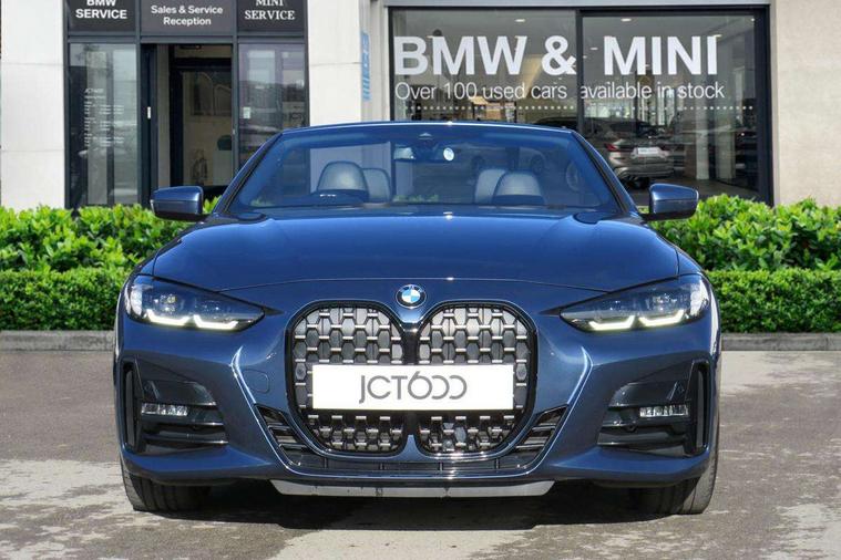 Active guard plus, Attentiveness assist, Auto start-stop, Bluetooth hands free facility with USB audio interface with audio streaming, BMW ConnectedDrive online services, BMW Live Cockpit Professional Nav with 12.3" instrument display + 10.25" display, Intelligent Voice Assist, BMW OS 7, HDD, 2USB, 4G LTE connect, BMW service history, BMW Teleservices, Brake pad wear indicator in front and rear, Check Control warning system for monitoring of lights and door/luggage compartment open warning, Condition based service, Cruise control with brake assist, Electric power steering with Servotronic steering optimised at all speed ranges, Gearshift time display in manual mode, iDrive controller on centre console, Instrument cluster with speedometer with mph readout, tachometer, fuel gauge and oil temperature gauge, Integrated owners handbook, Oil sensor for level and grade, warning by check control system, On board computer - average speed, fuel consumption, outside temp display with acoustic warning, clock/date, service interval, odometer/trip meter, Optimum shift indicator, Variable sport steering, 8 speed automatic steptronic transmission with gearshift paddles, Balanced 50/50 weight distribution, Double VANOS, Driving experience modes - Comfort, ECO PRO, Sport and Sport+ mode, High precision injection, Low centre of gravity, M sport suspension, Petrol Particulate Filter, Stroke dependent dampers, VALVETRONIC engine management, DAB tuner, Electronic service booklet, Acoustic glazing, Automatic headlight beam throw control with load dependent regulating reaction, dynamic compensation of braking dive and acceleration squat, Automatic windscreen wipers and automatic headlight, Automatically dimming electrochromatic rear view mirror, BMW emblem on engine compartment lid and tailgate, BMW kidney grille with mesh grille front side of the nuggets in matt aluminium and frame in chrome high gloss, Body colour fuel filler flap, Body colour roof fin, Brushed aluminium inserts in the front door sill finishers with BMW designation, Daytime running lights, Dynamic brake lights, Electric windows - front and rear, with open/close fingertip control, anti trap facility and comfort closing function all round, Exhaust tailpipe - split left and right, Exterior mirrors - electrically folding with anti-dazzle, Fading support, Front and rear bumper system, Front apron plastic in body colour, Green tinted heat protection glazing, High gloss shadow line exterior trim, Illuminated bow type door handles in body colour drivers side with door lock, Interior rear view electrochromatic mirror with automatic anti dazzle function, LED front fog lights, Licence plate panel integrated into front bumper and tailgate, Lightweight engineering, M designation on front side panels, left and right, Model designation on right side of tailgate, One piece front bumper cover including towing eye cover in body colour, Preparation for high beam assistant, Rear boot, Side frame decorative moulding black matt, Third brake light, Two part LED tailights in L-shape with components in smoked glass, brake light, LED turn indicator and rear fog light, Visible VIN plate, Welcome lights in interior and door handle area, Widened track and increased camber values for max transverse dynamics, agility and steering precision, Window recess cover black high gloss, Windscreen wipers with integrated washing jets, 12V power socket in front centre console, 2 2nd row folding seats, 2 front cupholder in centre console with clamping elements and matt black inlay, 2 Rear seat headrests, 2nd row centre armrest with built-in cupholders, 3 spoke M sport leather multifunction steering wheel, 3 zone automatic air conditioning, 4 pieces lashing eyelets in luggage compartment, Ambient lighting with welcome carpet light, Armrest integrated in front and rear door trim + front centre console armrest, Electric seat adjustment with memory, Four grab handles integrated in roof lining, Front and rear door exit lighting (left / right), Front and rear door pockets, Front and rear footwell lights, Front and rear reading lights, Front headrests, Front seat backrest width adjustment, Front sport seats, Heated driver and front passenger seats, Height adjustable mechanically and infinitely variable steering column, Illuminated armrest storage compartment, Illuminated glove compartment with separate small compartment, Luggage compartment light, Make-up mirror lights, Single front passenger seat, Storage compartment in rear centre console, Sunvisors with vanity mirrors and ticket pocket, Toolkit located in luggage compartment, Velour front floor mats, Vernasca leather upholstery, Connected professional pack - 4 Series, M sport exterior styling pack - 4 Series, Park assist pack - 4 Series, 2 x 3-point rear seat belts, Battery safety cut-off, BMW emergency call, Brake energy regeneration, Braking pre-tensioning, CBC - (Cornering brake control), Child proof rear door locking, Child seat ISOFIX attachment for the two outer rear seats, Coasting in idle in ECO PRO mode, Crash sensor activating of airbags, Unlocking doors, hazard warning lights, fuel cut off, interior lighting+activation of safety battery terminal clamp, Driver and front passenger side airbags, integrated in the door side seat backrest bolsters for all seat variants, Driver/Front Passenger airbags, Dry braking, Dynamic brake control, Dynamic stability control + (DSC+) - Anti-lock Braking System (ABS) with brake assist and cornering brake control + Automatic Stability Control (ASC), Dynamic Traction Control - DTC, Electromechanical parking brake including automatic hold function and automatic release of the parking brake when pulling away, Electronic differential lock control (EDLC), Front and rear ventilated brake disc, Front passenger manual airbag deactivation, Head airbags for all 4 outer seats, Hill start assistant, Seat belt security check for driver and front passenger, Seat belt with belt stopper, pyrotechnic belt tensione