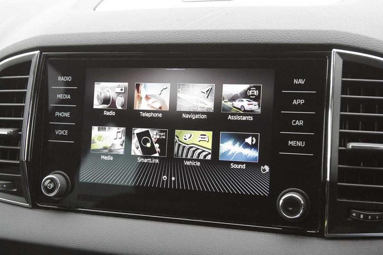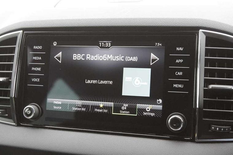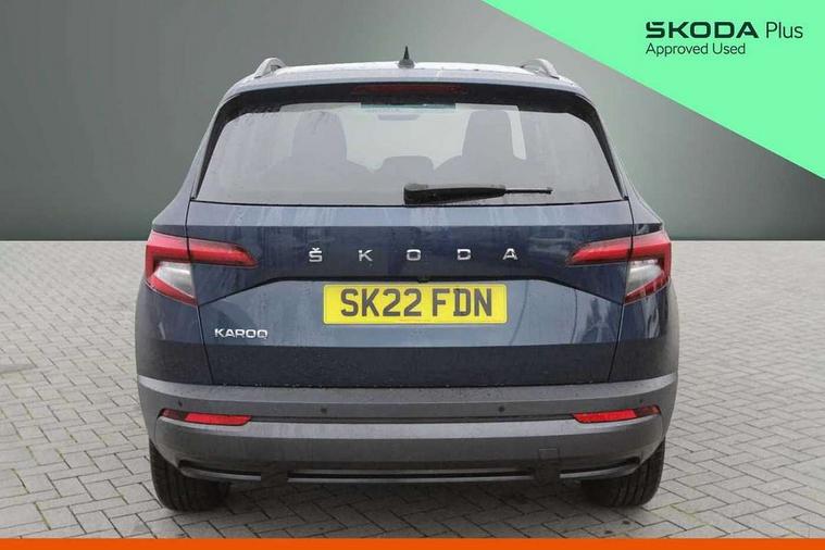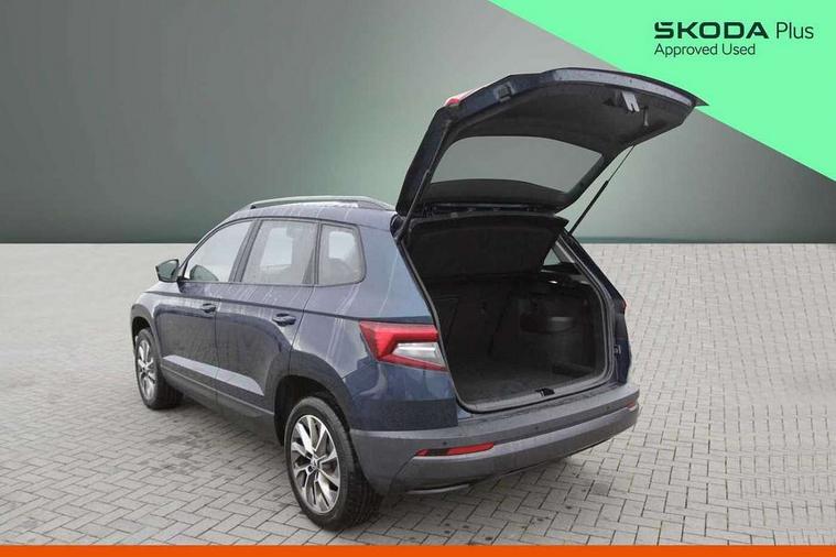 Amundsen satellite navigation with 8" touchscreen display with maps Europe, WLAN and web radio, Care connect, Driver fatigue sensor, Electro-mechanical PAS, Multifunction colour trip computer, Outside temperature gauge, Rear view camera, Service interval indicator, SmartLink wireless for Apple and wired for Android, Start/stop system with regenerative braking, USB C Port x 2 in front centre console, DAB radio with Bluetooth, USB connection, Acoustic glass, Aero front windscreen wipers with intermittent function, Automatic headlight control system, Black electric window control buttons, Body colour door mirrors and handles, Body coloured bumpers, Doors steps in front with Karoq badging, Electric front and rear windows with child proof lock, Electrically adjustable heated folding and auto dimming door mirrors, Heated rear windscreen, LED rear lights with high functionality, Light assistant (coming/leaving home/tunnel light), Privacy glass, Safety reflectors on front doors, Third brake light, 1.5 litre bottle holders in driver and front passenger door panels, 12V socket in boot, 12v socket in front centre armrest with storage compartment and rear air vents, 2 Folding hooks and nets in boot, 2 Front readings lights for driver and passenger, 3 rear height adjustable headrests, 4 foldable roof handles with rear coat hooks, Cargo elements in boot, Chrome inner door handles, Door sill scuff plates, Driver and passenger seats height adjust, Fabric upholstery, Folding tables on the front seat backrests, Front head restraints, Height adjustable front three point seats belts with tensioners, Height/reach adjust steering wheel, Ice scraper, Illuminated and cooled glovebox, Illuminated luggage compartment, Isofix child seat preparation outer rear, Manual lumbar support for front seats, Net programme in boot, Pen holder, Pollen filter, Rear boot cover, Rear reading lights, Safety vest holder, Stars graphite decorative inserts, Storage box in upper central dashboard closed, Sunvisors with illuminated vanity mirrors, Textile floor mats, Umbrella under passenger seat, Airbags - Front side, head, knee and curtain, Automatic door unlocking in case of crash, Automatic fuel cut off in case of crash, Driver airbag, Electronic parking brake with auto hold function, Emergency rear braking signal, ESC including ABS, MSR, ASR, EDS, HBA, DSR, RBS, MKB and traction control, Front assist radar scanning of the space in front of the car with automatic braking, Hill hold control, Passenger airbag with switch-off function, Pedestrian monitor, Seatbelt reminder signalisation and pretensioner for all seats, Three point seatbelts rear, Two tone horn, Tyre pressure display, Tyre pressure monitor, Alarm with interior monitoring, back up horn and tilt sensor with safe function, Electronic engine immobiliser, Remote central locking with 2 remote folding keys, Chrome framed air vents, Storage on wheel cover,