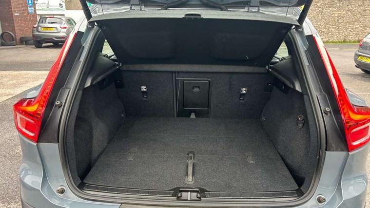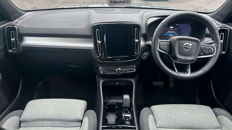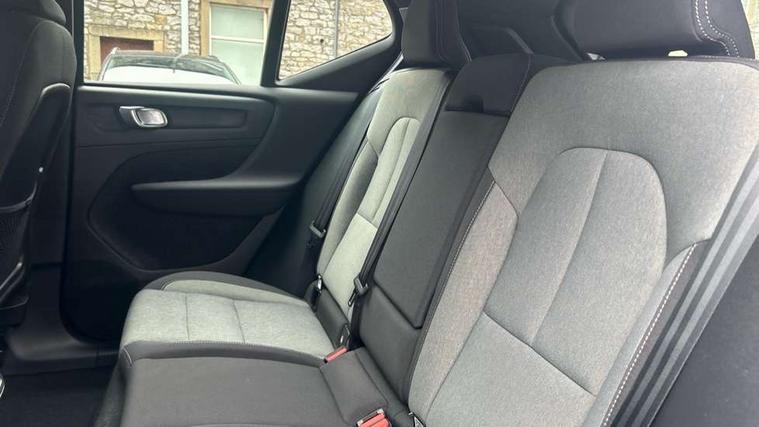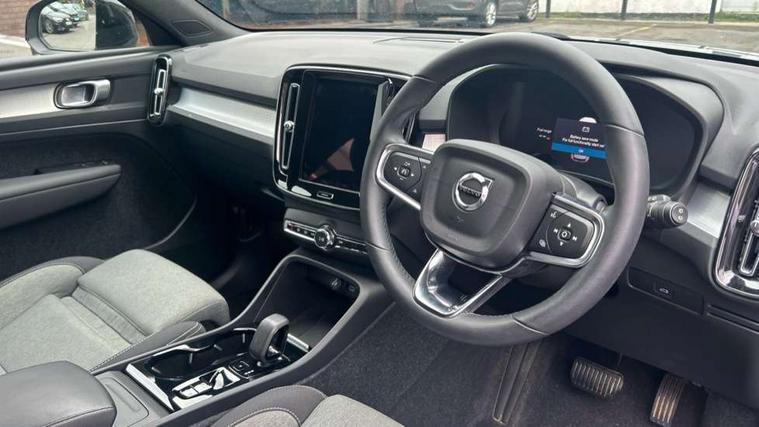 12.3" Progressive Driver Display, 9" centre console portrait touch screen, Adjustable steering wheel force, Bluetooth hands free telephone kit, Cruise control, Driver awareness - blind spot information system with steer assist, cross traffic alert with autobrake, rear collision warning and migitation, E-call, Front park assist, Google automatic services - Nav with google maps, apple carplay/android auto, voice recognition with google assistant, Hands free power tailgate, Lane keep assist with driver alert control, Oncoming Lane Mitigation, Rear park assist, Rear park assist camera, Speed limiter, Speed sensitive steering, Wireless/Inductive Mobile Phone Charging, Dynamic chassis, DAB Digital radio, High performance sound, 8 speakers/250W, front USB and 2 rear type C USB, Steering wheel mounted remote controls, Adaptive brake lights with high level LED brake lights, Auto dimming feature for exterior door mirrors, Auto dimming interior mirror, Automatic headlamp levelling, Automatic LED Headlights + Active high beam incorporating daytime running lights, Front aluminium tread plates, Front and rear electric windows, High gloss black front and rear skid plate, High gloss black mesh front grille with high gloss black surround, High gloss black window trim, Home safe and approach lighting, Integrated roof rails in high gloss black, LED front fog lights, Puddle lights, Rain sensor with automatic windscreen wiper activation, Rear side wing doors, Rear wiper, Roof antenna, Roof spoiler, Visible VIN plate, 12V socket in front tunnel console and luggage compartment, 2-Zone electronic climate control with CleanZone air quality system and pollen filter, 3 seat bench in 2nd row, 3 Spoke tailored steering wheel with chrome trim, 60/40 versatile split folding rear seat, A-pillar parking ticket holder, Ambient front door and instrumental panel lighting, Centre console cupholders and storage, Flexible load floor and grocery bag holder, Floor mats, Front door pocket and front cupholder illumination, Front footwell illumination, Front headrests, Front reading light and theatre lighting, Front seat cushion extensions, Front tunnel pocket, Glovebox bag hook, Heated front seats, Height adjustable passenger seat, Height/reach adjustable steering column, High gloss centre tunnel deco, Illuminated glovebox, Illuminated luggage compartment, Illuminated tailgate, Illuminated vanity mirrors, Integrated waste bin, Isofix attachments on outer rear seats, Load protection net, Multi directional lumbar support, Power driver seat with memory + exterior mirrors memory, Rear armrest / integral cup holders / storage tray, Rear headrests, Rear reading and courtesy lights, Single front passenger seat, Underfloor cargo storage, Climate pack without heated front seats - XC40, 3x3 point rear seatbelts, City safety with steering support with Pedestrian + cyclist + front collision warning with full auto brake and rear auto brake, Drivers knee airbag, Dual stage driver/passenger airbags, Electronic parking brake with auto hold, First aid kit, Front and outer rear seatbelt reminder and pretensioners, Front seats SIPS airbags, Hill descent control, Hill start assist, Inflatable curtain, Passenger airbag cut-off device, Power child locks on rear doors, Road sign information display, Run off Road Mitigation, Run off Road Protection, SIPS (Side Impact Protection System), Slippery road and hazard light alert, Stability and Traction Control with Spin control, Engine Drag Control and Corner Traction Control, Tyre pressure monitoring system, Vehicle deceleration control with Anti-lock Brake System, Electronic Brake Distribution and Emergency Brake Assist, Warning triangle, WHIPS whiplash protection system - front, Anti-theft alarm including immobiliser/volume sensor + level sensor, Key integrated remote control central locking + fuel flap with deadlocking system and auto open/close power windows, Keyless drive includes keyless entry and keyless start, Locking wheel nuts,