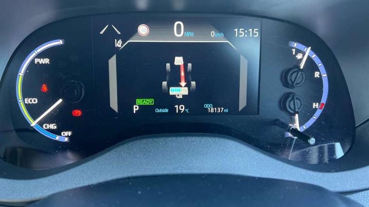 7" Multi information display screen, 8" Toyota touch 2 multimedia system with Smartphone integration with Apple CarPlay and Android auto, Adjustable speed limiter, Bluetooth connectivity, Driver attention alert system, eCall emergency system, Electric power steering, Full range intelligent adaptive cruise control, Hybrid system indicator, Key reminder warning, Lane trace assist, Multimedia, audio, telephone and voice recognition switches on steering wheel, My T Connected services, Pre-collision system enhanced with emergency steering assist, Reversing camera, Road sign assist - RSA, Steering assisted vehicle stability control, 6 speakers, DAB Digital radio, USB connection, 3rd brake light, Acoustic windscreen glass, Aluminium roof rails, Anti-jam protection on power windows, Auto high beam [AHB] with on/off switch, Automatic headlights, Black lower front grille, Black Shark-fin antenna, Black upper front grille, Black wheel arch mouldings, Body colour door handles, Body colour front bumper, Body colour rear bumper, Electric adjustable heated door mirrors, Follow me home headlights, Front and rear electric windows with auto up/down function, Front intermittent wipers, Headlight cut off reminder, Indicators integrated on door mirrors, Intermittent rear wiper, LED daytime running lights guide, LED front fog lights, LED front light guide, LED Indicators, LED projector headlights, LED rear light guide, Manual headlight levelling, Manually retractable door mirrors, Noise reduction layer on windscreen, Privacy glass, Rain sensor, Rear LED lights with sequential indicators, Rear side wing doors, Rear spoiler, Rear window defogger, 12v power outlet - front, 2x Rear coat hooks, 3 seat bench in 2nd row, 3 spoke leather steering wheel, 40:20:40 split folding rear bench seat, Adjustable speed limiter switch on steering wheel, Auto air conditioning, Black roof lining, Boot light, Central armrest, Centre console in light blue ambent lighting, Driver and front passenger personal lights, Fabric door trim, Fabric upholstery, Footwell in light blue ambient lighting, Front console box, Front cup holders, Front head restraints, Glovebox, Height adjustable driver's seat, Height adjustable front passenger seat, Hooks for luggage holding belts, ISOFIX child restraint system, Lane departure alert switch on steering control, Leather gearshift, Light blue ambient lighting on front doors, Manual telescopic and tilting steering wheel, Mirror on driver and passenger sun visor, Pollen air filter, Rear cup holders, Rear head restraints, Single front passenger seat, Soft tonneau cover, 3x3 point rear seat belts, ABS+EBD+Brake assist, Driver and passenger central airbags, Driver and passenger front airbags, Driver and passenger side airbags, Electronic parking brake, Emergency brake light system (EBS), Front seat belt reminder, Hill start assist control (HAC), Passenger airbag on/off switch, Pre-collision system with pedestrian and cyclist detection, Rear door child safety locks, Rear passenger side airbags, Rear seat belt reminder, Traction control, Tyre pressure warning system, Immobiliser, Intrusion alarm, Keyless smart entry with push button start, Power door locks, Power passenger window lock, Remote door lock, Tyre repair kit,