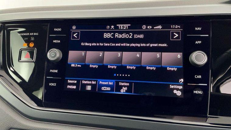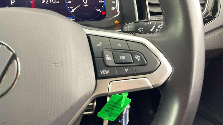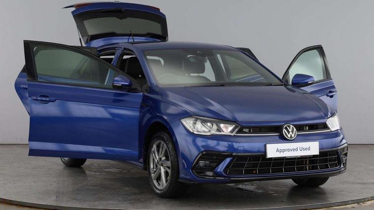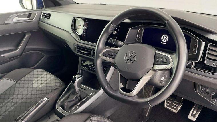 Adaptive cruise control with follow-to-stop and speed limiter, Bluetooth mobile phone interface, Digital Cockpit Pro with 10.25" Display, Driver alert system, Dynamic road sign display, Emergency call service, Power assisted speed sensitive steering, Preparation for We connect and We connect plus, Speedo and rev counter, electronic odometer, trip, service interval display and fuel gauge, Standard rear axle, Travel Assist - Lane keeping system and traffic jam assist, Travel assist including emergency assist, Trip computer, Warning signal and warning light for front and rear seatbelts not fastened, Washer fluid level indicator, Wireless app connect, Front wheel drive, Rear shock absorpion, Start-stop system with battery regeneration (recuperation - energy recovery during braking), DAB Digital radio, Diversity antenna for FM reception, Front and rear 6 speakers, Body colour bumpers, Body colour door handles, Body colour door mirrors, Electric front windows, Front scuff plates with R-Line logo, Heat insulating darkened glass in side and rear windows, Heat insulating glass windscreen, Power folding adjustable/heated exterior mirrors and front passenger exterior mirror lowering function, Rear electric windows, Rear fog light, Rear side wing doors, Rear tinted glass from B-pillar backwards approx 65% tinted, Rear windscreen washer and wiper with interval delay, Third brake light, 12V power socket in centre console, 2 USB-C ports in the front, 2 USB-C charging sockets on the center console in the rear, 3 rear head restraints, 60/40 split folding rear seat and rear seat bench not split, Air care climatronic air conditoning system with active combination filter and 2-zone temperature control, Black roof lining, Ceramique headliner, Chrome plated radiator grille inserts, air vent surrounds and light switch surrounds, Door and side trim panel, Driver and front passenger seat height adjustment, Driver/passenger sunvisors with illuminated vanity mirrors, Front + rear carpet mats, Front centre armrest, Front footwell illumination, Front seat backrest storage pockets, Front sports comfort seats, Handbrake lever handle in leather, Isofix child seat preparation easy-fit (for two outer rear seats, and front passenger seat) compatible with I-size, Karoso artvelours cloth upholstery, Leather trimmed gear knob, LED interior light with switch off delay and dimmer, 2 reading lights front and rear, Luggage compartment cover, Luggage compartment floor, Luggage compartment lighting, Lumbar adjustment for front seats, Single front passenger seat, Stainless steel pedals, Standard pedal cluster, Three spoke leather wrapped multifunction steering wheel with shifting paddles, Light and sight pack - Polo R-Line/Black Edition, 3 point height adj front seatbelts + pretensioners, 3x3 point rear seatbelts, ABS, Driver and front passenger airbag with front passenger airbag deactivation, Drivers and front passengers safety optimised head restraints, ESC (Electronic stability control) + EDL (Electronic Differntial lock) and ASR (Traction control), Extended and predictive pedestrian/ cyclist protection, Front curtain and side airbags with center airbag, Front/rear disc brakes, Hill hold control, Manual child lock in rear doors, Single tone horn, Tyre pressure loss indicator, Alarm with interior protection, Anti-theft alarm system with interior monitoring, backup horn, and towing protection, Anti-theft wheel bolts, Electronic engine immobiliser, Chrome applications on rotary light, mirror adjustment, window regulator switches, outlet with frame in black, Dark grey anodised matt decorative inserts in dash and front door panels, Low rolling resistance tyres,
