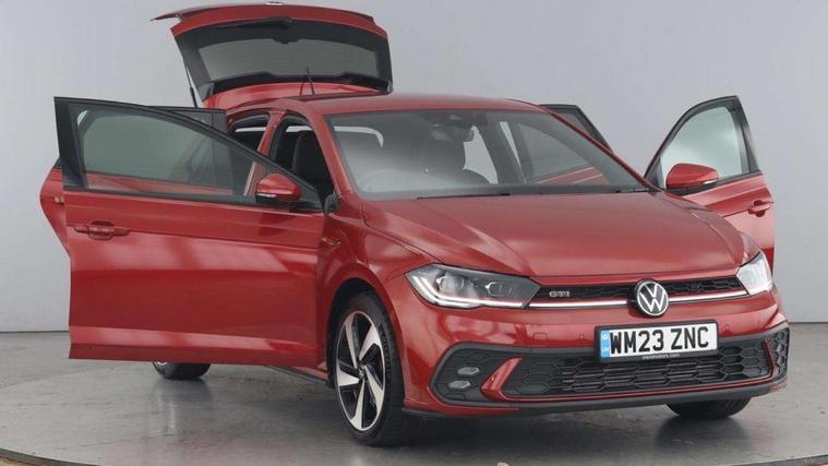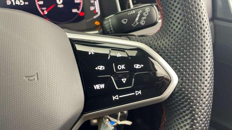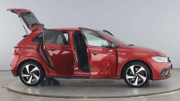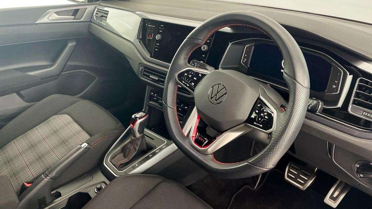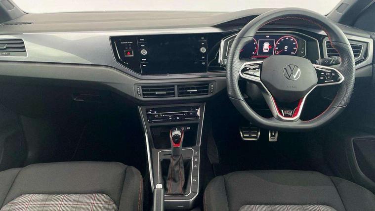 Adaptive cruise control with follow-to-stop and speed limiter, Bluetooth mobile phone interface, Digital Cockpit Pro with 10.25" Display, Driver alert system, Dynamic road sign display, Eco mode, Emergency call service, Power assisted speed sensitive steering, Preparation for We connect and We connect plus, Speedo and rev counter, electronic odometer, trip, service interval display and fuel gauge, Travel Assist - Lane keeping system and traffic jam assist, Travel assist including emergency assist, Trip computer, Warning signal and warning light for front and rear seatbelts not fastened, Washer fluid level indicator, Wireless app connect, Adaptive chassis control, Front wheel drive, Heavy duty rear axle, Rear shock absorpion sports version, Sports select suspension lowered by 15mm, Start-stop system with battery regeneration (recuperation - energy recovery during braking), DAB Digital radio, Diversity antenna for FM reception, Front and rear 6 speakers, Body colour bumpers, Body colour door handles, Electric front windows, Front scuff plates in aluminium with GTI logo, Heat insulating darkened glass in side and rear windows, Heat insulating glass windscreen, Power folding adjustable/heated exterior mirrors and front passenger exterior mirror lowering function, Rain sensor, Rear electric windows, Rear fog light, Rear side wing doors, Rear windscreen washer and wiper with interval delay, Sport bumpers with air intakes with honeycomb structure, Third brake light, Twin chrome exhaust tailpipes, 12V power socket in centre console, 2 USB-C ports in the front, 2 USB-C charging sockets on the center console in the rear, 3 rear head restraints, 60/40 split folding rear seat and rear seat bench not split, Air care climatronic air conditoning system with active combination filter and 2-zone temperature control, Black roof lining, Chrome plated radiator grille inserts, air vent surrounds and light switch surrounds, Door and side trim panel, Driver and front passenger seat height adjustment, Driver/passenger sunvisors with illuminated vanity mirrors, Front + rear carpet mats in recycled material, Front centre armrest, Front footwell illumination, Front seat backrest storage pockets, GTI sports gearshift knob in aluminium leather, Handbrake lever handle in leather, Headliner in recycled material, Isofix child seat preparation easy-fit (for two outer rear seats, and front passenger seat) compatible with I-size, LED interior light with switch off delay and dimmer, 2 reading lights front and rear, Luggage compartment cover, Luggage compartment floor, Luggage compartment lighting, Single front passenger seat, Stainless steel pedals, Standard pedal cluster, Three spoke leather wrapped multifunction sports steering wheel with shifting paddles, IQ LED matrix headlights pack - Polo, Light and sight pack - Polo GTI, 3 point height adj front seatbelts + pretensioners, 3x3 point rear seatbelts, ABS, Driver and front passenger airbag with front passenger airbag deactivation, Drivers and front passengers safety optimised head restraints, ESC (Electronic stability control) + EDL (Electronic Differntial lock) and ASR (Traction control), Extended and predictive pedestrian/ cyclist protection, Front and rear disc brakes with red brake calipers, Front curtain and side airbags with center airbag, Hill hold control, Manual child lock in rear doors, Two tone horn, Tyre pressure loss indicator, Alarm with interior protection, Anti-theft alarm system with interior monitoring, backup horn, and towing protection, Anti-theft wheel bolts, Electronic engine immobiliser, Chrome applications on rotary light, mirror adjustment, window regulator switches, outlet with frame in black, Low rolling resistance tyres,