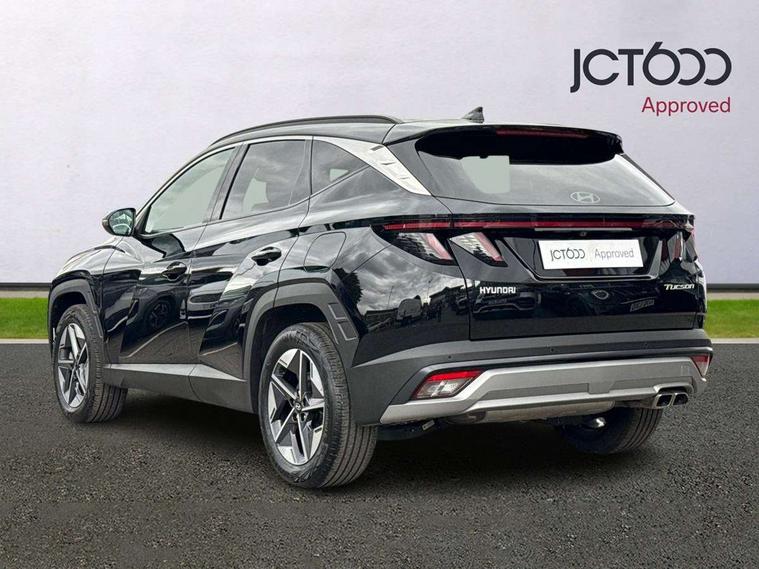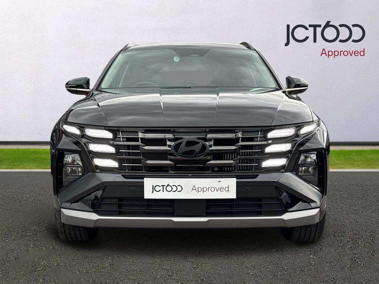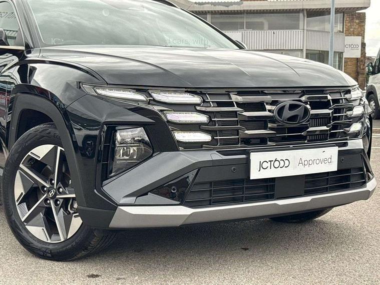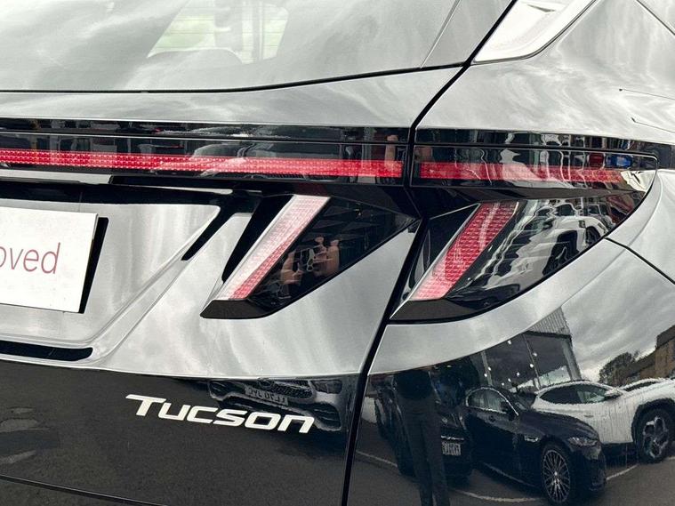 12.3" LCD display with driver's supervision instrument cluster, 12.3" widescreen navigation with bluelink and mapcare, Bluetooth system, Cruise control - smart adaptive speed control with stop and go function, Digital clock, Drive mode selector, Driver attention warning, E-call, Emergency stop signalling system, Forward Collision Avoidance Assist (FCA) - Car, Pedestrian and Cycle, Forward Collision Avoidance Assist Junction Turning (FCAJX), Front and rear parking sensors, Highway Driving Assist (HDA), Hyundai road side assistance, Intelligent speed limit assist, Lane follow assist, Lane keep assist, Over the air updates(OTA), PAS, Rear camera and guidance parking system, Rev counter, Smart power tailgate, Tailgate open warning light, Trip computer, Trip odometer, Voice recognition, Water temperature gauge, Windscreen washer fluid sensor and warning indicator, Wireless Apple CarPlay/Android Auto, Wireless phone charging pad, Shift by Wire Gear Selector (SBW), 2 front and 2 rear USB-C ports, DAB Digital radio, Krell premium audio system with 8 speakers and subwoofer, Steering wheel mounted audio/phone controls, Adjustable intermittent front windscreen wipers with aero wiper blade, Auto dimming rear view mirror, Automatic defog system, Automatic headlights with dusk sensor, Automatic windscreen wipers with rain sensor, Black wheel arches, Body colour bumpers, Body colour door mirrors with integrated indicators, Body colour exterior door handles, Electrically adjustable, heated and power folding door mirrors, Follow me home headlights, Front and rear electric windows with anti-trap mechanism and one touch control, Front fog lights, LED 3rd brake light, LED daytime running lights, LED Headlights, LED rear lights, Positioning Lights - LED, Privacy glass - Rear windows and tailgate, Rear side wing doors, Rear wash/wipe with intermittent wipe setting, Roof rails, Soft touch rear door paneling, Tinted glass with windscreen shade band, Trailer stability assist, 12V power outlets in front console and luggage compartment, 3 seat bench in 2nd row, 40/20/40 split folding rear seat, 64 colours interior ambient lighting, Adjustable head restraints (Up and down), Cupholders in rear armrest, Door courtesy lights, Driver and passenger sunvisors with illuminated LED vanity mirrors, Driver's seat electric adjustments, Dual zone climate control, Front and rear door pockets, Front armrest with storage box, Front centre console and door bottle holders, Front passenger's seat electric adjustments, Heated front seats, Heated rear seats, Heated steering wheel, Height/reach adjustable steering column, Illuminated/air conditioned glove compartment, ISOFIX child seat anchorage points attached on outer rear seats, Leather wrapped steering wheel and gear knob, LED interior lighting, Luggage compartment lighting, Luggage cover, Luggage hooks, Luggage net, Map and reading lights, Premium cloth/leather upholstery, Rear seat remote folding function, Rear side window sunblind, Reclining rear seats, Retractable load cover, Single front passenger seat, Sunglasses holder, Touch sensitive climate controls with temperature dials, TUCSON branded metal door scuff plate, Underfloor boot compartment, Wireless charging with armrest, Trailer wiring package - Tucson, 3x3 point rear seatbelts, Active bonnet, Airbag - Front, front side, curtain and centre front airbags, Anti-lock brake system (ABS), Brake assist function, Childproof rear door locks, Curtain airbag roll over sensor, Downhill brake control, Electric parking brake, Electronic stability control, Front and rear seatbelt reminder, Front passenger airbag deactivation switch, Front seatbelt pretensioners, Hill start assist control (HAC), Multi-Collision braking, Outer rear seatbelt height adjustment, Seatbelt height adjustment for front seats, Traction control, Tyre pressure monitoring system with individual tyre pressure display - TPMS, Vehicle stability management, Deadlocks, Immobiliser, Locking wheel nuts, Remote control central locking, Smart key with keyless entry and engine start/stop button, Speed sensitive auto door locking, Thatcham category 1 alarm, 18" Alloy wheels, Tyre repair kit,
