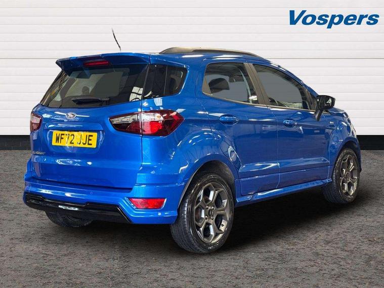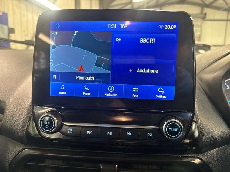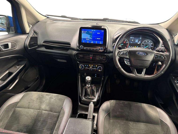 Cruise control, e-Call (emergency call), Easy fuel capless refuelling system, Ford SYNC 3 nav system with DAB radio, 8" screen, emergency assistance, Apple car play/Android auto, 2x USB, 6 speakers, Ford pass connect, Intelligent speed limiter, PAS, Rear parking sensors, Rear view camera, Traffic sign recognition, Trip computer, Sports suspension, Steering wheel mounted audio controls, Auto dimming rear view mirror, Automatic front wipers, Automatic headlights, Black roof rails, Body colour door handles, Body coloured bumpers, Chrome lower window surround, Electrically adjustable and heated door mirrors, Front fog lights, Front grille bars and surround in black, Headlight levelling control, Large rear roof spoiler, LED day running lights, LED third brake light, Power front and rear windows, Puddle lights, Quick-clear heated windscreen, Rear side wing doors, Rear wiper, ST Line body styling kit - Black headlamp bezel, front and rear sport bumpers, body colour lower door claddings, 12V socket in front and rear, 3 seat bench in 2nd row, 60/40 split rear seats, Ambient lighting, Centre console with sliding front armrest, Cooled glovebox, Courtesy lights with map reading light, Driver seat height/lumbar adjust, Driver's side glovebox, Driver/passenger sunvisors and lidded vanity mirrors, EATC - Electronic Auto Temperature control, Folding grab handles, Front head restraints, Front seat back map pockets, Illuminated glovebox, Illuminated luggage compartment, Isofix system on outer rear seats, Luggage compartment carpet, Neosuede/Partial sensico leather upholstery, Overhead console with sunglasses holder, Rake adjustable rear seats, Reach + rake adjustable steering column, Rear headrests, Sensico trimmed steering wheel, handbrake and gearshift gaiter with red stitching, Single front passenger seat, ST-Line Front floor mats with red stitching, Stainless steel sports pedals, Storage drawers under front seats, Tie down hooks, Variable boot floor, 3x3 point rear seatbelts, ABS, Autonomous emergency braking, Child locks on rear doors, Curtain airbags, Driver airbag, Drivers knee airbag, Electronic Stability Programme with hill launch assist, Front passenger airbag deactivation, Front side airbags, Passenger airbag, Pre collision assist system with AEB, Seatbelt reminder for driver and front passenger, Traction control, Tyre pressure monitoring system, Immobiliser, MyKey system, Remote central locking, Thatcham 1 volume sensing alarm, Low rolling resistance tyres, Tyre inflation kit,