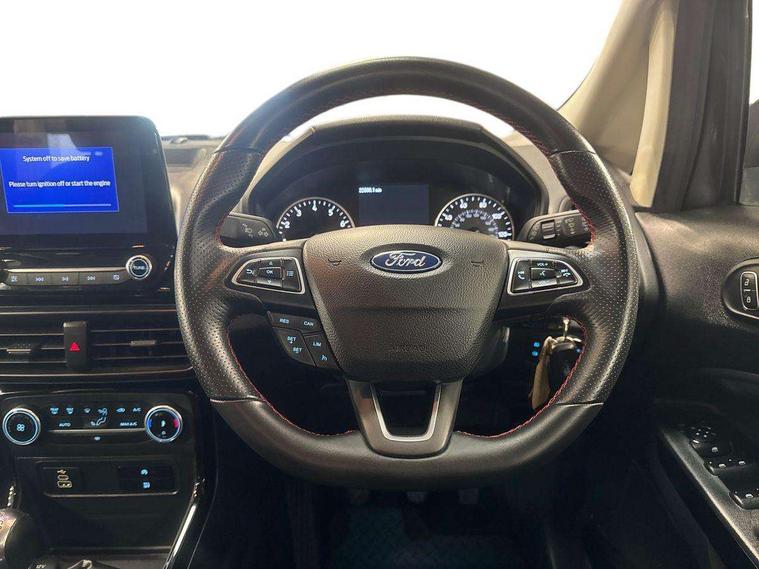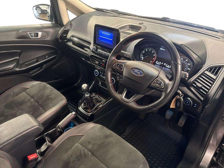 Cruise control, e-Call (emergency call), Easy fuel capless refuelling system, Ford SYNC 3 nav system with DAB radio, 8" screen, emergency assistance, Apple car play/Android auto, 2x USB, 6 speakers, Ford pass connect, Intelligent speed limiter, PAS, Rear parking sensors, Rear view camera, Traffic sign recognition, Trip computer, Sports suspension, Steering wheel mounted audio controls, Auto dimming rear view mirror, Automatic front wipers, Automatic headlights, Black roof rails, Body colour door handles, Body coloured bumpers, Chrome lower window surround, Electrically adjustable and heated door mirrors, Front fog lights, Front grille bars and surround in black, Headlight levelling control, Large rear roof spoiler, LED day running lights, LED third brake light, Power front and rear windows, Puddle lights, Quick-clear heated windscreen, Rear side wing doors, Rear wiper, ST Line body styling kit - Black headlamp bezel, front and rear sport bumpers, body colour lower door claddings, 12V socket in front and rear, 3 seat bench in 2nd row, 60/40 split rear seats, Ambient lighting, Centre console with sliding front armrest, Cooled glovebox, Courtesy lights with map reading light, Driver seat height/lumbar adjust, Driver's side glovebox, Driver/passenger sunvisors and lidded vanity mirrors, EATC - Electronic Auto Temperature control, Folding grab handles, Front head restraints, Front seat back map pockets, Illuminated glovebox, Illuminated luggage compartment, Isofix system on outer rear seats, Luggage compartment carpet, Neosuede/Partial sensico leather upholstery, Overhead console with sunglasses holder, Rake adjustable rear seats, Reach + rake adjustable steering column, Rear headrests, Sensico trimmed steering wheel, handbrake and gearshift gaiter with red stitching, Single front passenger seat, ST-Line Front floor mats with red stitching, Stainless steel sports pedals, Storage drawers under front seats, Tie down hooks, Variable boot floor, 3x3 point rear seatbelts, ABS, Autonomous emergency braking, Child locks on rear doors, Curtain airbags, Driver airbag, Drivers knee airbag, Electronic Stability Programme with hill launch assist, Front passenger airbag deactivation, Front side airbags, Passenger airbag, Pre collision assist system with AEB, Seatbelt reminder for driver and front passenger, Traction control, Tyre pressure monitoring system, Immobiliser, MyKey system, Remote central locking, Thatcham 1 volume sensing alarm, Low rolling resistance tyres, Tyre inflation kit,