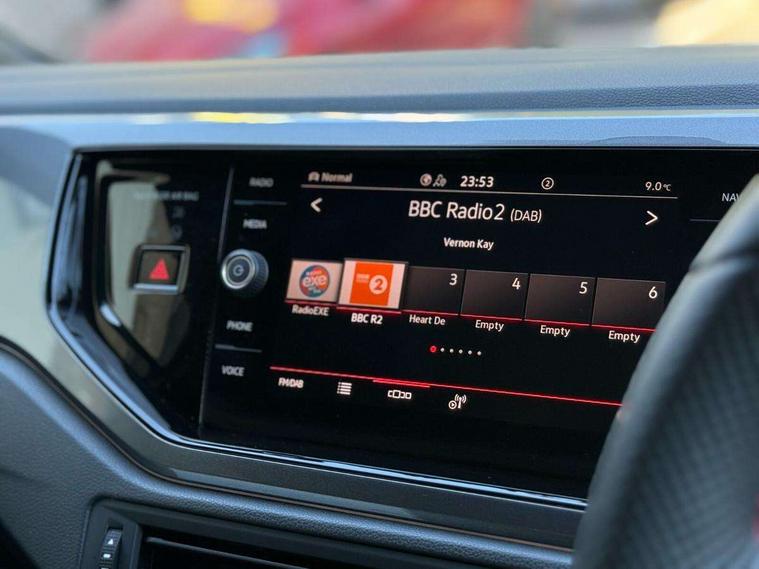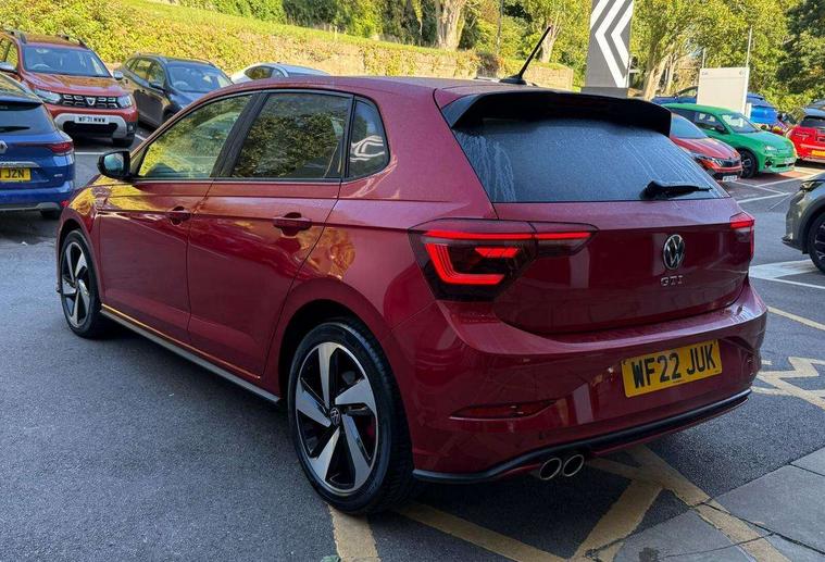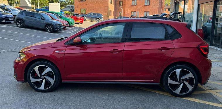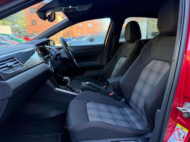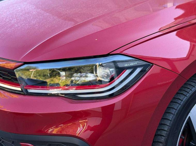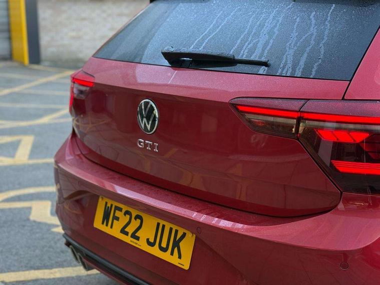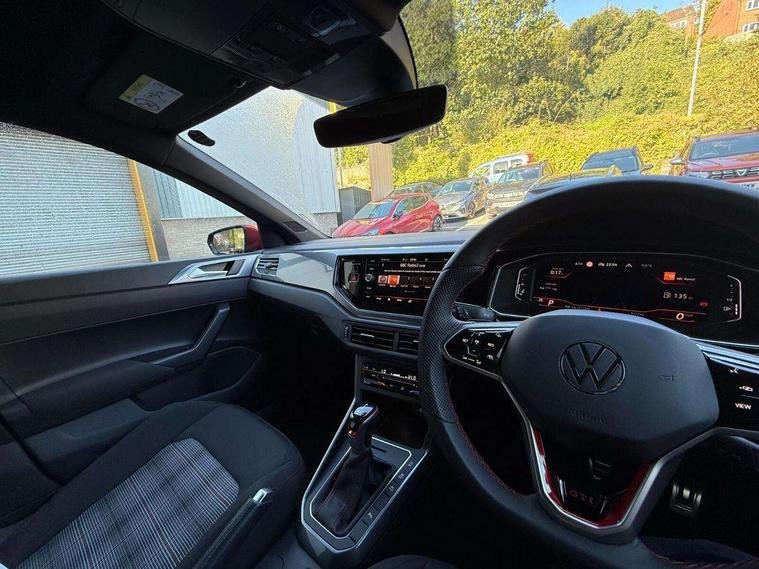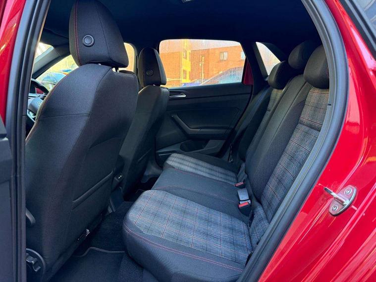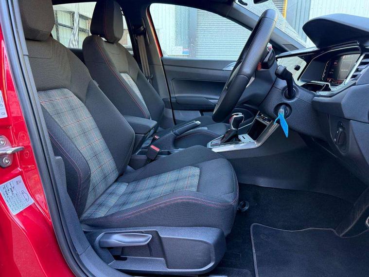 Adaptive cruise control with follow-to-stop and speed limiter, Bluetooth mobile phone interface, Digital Cockpit Pro with 10.25" Display, Driver alert system, Dynamic road sign display, Eco mode, Emergency call service, Power assisted speed sensitive steering, Preparation for We connect and We connect plus, Speedo and rev counter, electronic odometer, trip, service interval display and fuel gauge, Travel Assist - Lane keeping system and traffic jam assist, Travel assist including emergency assist, Trip computer, Warning signal and warning light for front and rear seatbelts not fastened, Washer fluid level indicator, Wireless app connect, Adaptive chassis control including driving profile selection, Front wheel drive, Heavy duty rear axle, Rear shock absorpion sports version, Sports select suspension lowered by 15mm, Start-stop system with battery regeneration (recuperation - energy recovery during braking), XDS electronic differential lock for improved traction and handling, DAB Digital radio, Diversity antenna for FM reception, Front and rear 6 speakers, Body colour bumpers, Body colour door handles, Electric front windows, Front scuff plates in aluminium with GTI logo, Heat insulating darkened glass in side and rear windows, Heat insulating glass windscreen, Power folding adjustable/heated exterior mirrors and front passenger exterior mirror lowering function, Rear electric windows, Rear fog light, Rear side wing doors, Rear windscreen washer and wiper with interval delay, Sport bumpers with air intakes with honeycomb structure, Third brake light, Twin chrome exhaust tailpipes, 12V power socket in centre console, 2 USB-C ports in the front, 2 USB-C charging sockets on the center console in the rear, 3 rear head restraints, 60/40 split folding rear seat and rear seat bench not split, Air care climatronic air conditoning system with active combination filter and 2-zone temperature control, Black roof lining, Ceramique headliner, Chrome plated radiator grille inserts, air vent surrounds and light switch surrounds, Door and side trim panel, Driver and front passenger seat height adjustment, Driver/passenger sunvisors with illuminated vanity mirrors, Front + rear carpet mats, Front centre armrest, Front footwell illumination, Front seat backrest storage pockets, GTI sports gearshift knob in aluminium leather, Handbrake lever handle in leather, Isofix child seat preparation easy-fit (for two outer rear seats, and front passenger seat) compatible with I-size, LED interior light with switch off delay and dimmer, 2 reading lights front and rear, Luggage compartment cover, Luggage compartment floor, Luggage compartment lighting, Single front passenger seat, Stainless steel pedals, Standard pedal cluster, Three spoke leather wrapped multifunction sports steering wheel with shifting paddles, IQ LED matrix headlights pack - Polo, Light and sight pack - Polo GTI, Sports suspension pack - Polo, 3 point height adj front seatbelts + pretensioners, 3x3 point rear seatbelts, ABS, Driver and front passenger airbag with front passenger airbag deactivation, Drivers and front passengers safety optimised head restraints, ESC (Electronic stability control) + EDL (Electronic Differntial lock) and ASR (Traction control), Extended and predictive pedestrian/ cyclist protection, Front and rear disc brakes with red brake calipers, Front curtain and side airbags with center airbag, Hill hold control, Manual child lock in rear doors, Two tone horn, Tyre pressure loss indicator, Alarm with interior protection, Anti-theft alarm system with interior monitoring, backup horn, and towing protection, Anti-theft wheel bolts, Electronic engine immobiliser, Chrome applications on rotary light, mirror adjustment, window regulator switches, outlet with frame in black, Low rolling resistance tyres,