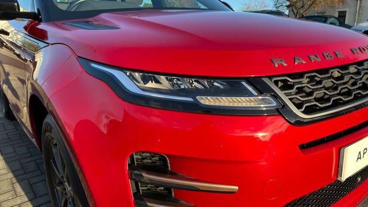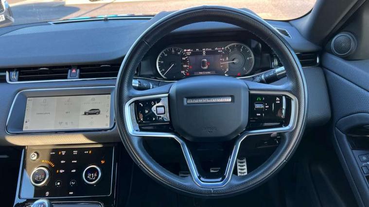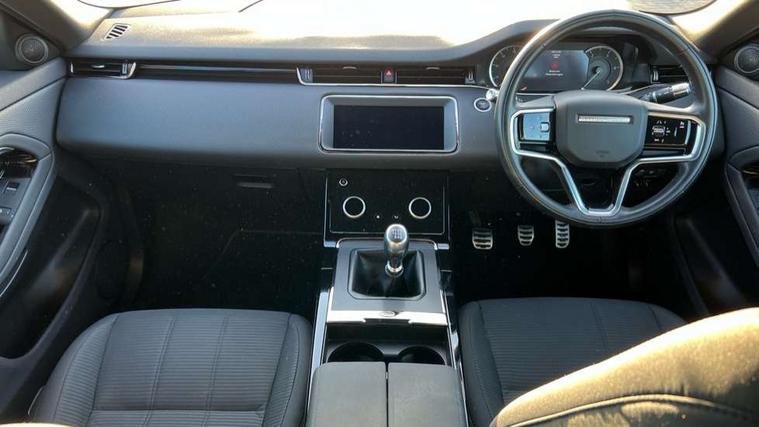 10" touch screen, Android Auto, Apple car play, Bluetooth connectivity, Brake pad wear indicator warning light, Cruise control + speed limiter, Driver condition monitor, Electronic power assisted steering (EPAS), Front and rear parking aid, InControl remote, Land Rover InControl apps, Lane keep assist, Push button starter, Voice control system, Passive suspension, Digital Audio Broadcast radio-DAB, Steering wheel mounted controls, Electric windows with one touch open/close and anti trap, Evoque and R-Dynamic badge, Flush deployable exterior door handles, Heated rear window with timer, Heated washer jets, Heated windscreen, Rain sensing windscreen wipers, Rear fog lights, Tailgate spoiler, 40:20:40 split folding rear seats with centre headrest and armrest, Ambient interior lighting, Bright metal pedals, Isofix system on outer rear seats, Overhead lighting console, Overhead stowage for sunglasses, Passive front head restraints, Rear air vents, Rear centre headrest, Sunvisors with illuminated vanity mirrors, Twin sliding front centre armrest, 3 rear 3 point seatbelts, Anti-lock braking system (ABS), Customer configurable autolock, DSC - Dynamic Stability Control, Electronic brake force distribution, Electronic parking brake, Electronic traction control, Emergency braking, Front and rear seatbelt reminder, Hill launch assist, Power operated child locks, Roll stability control, Six airbags - Driver and passenger airbags/driver knee airbag/front side airbag and curtain airbags, Tyre pressure monitoring system, Alarm, Immobiliser, Intrusion sensor, Locking wheel nuts,