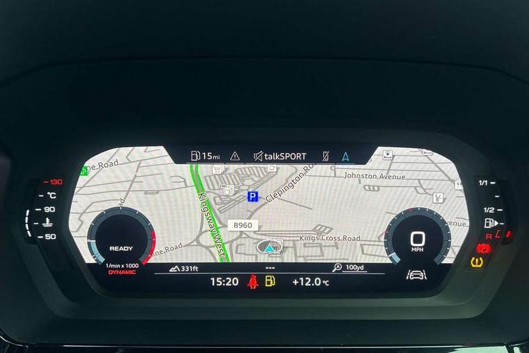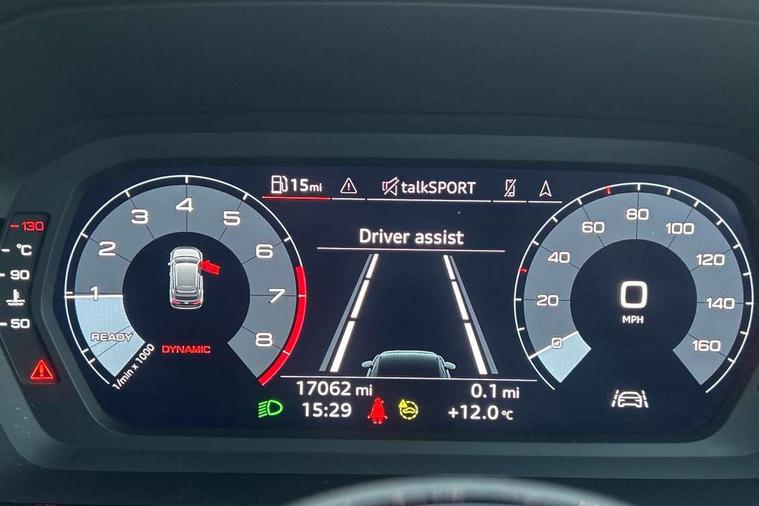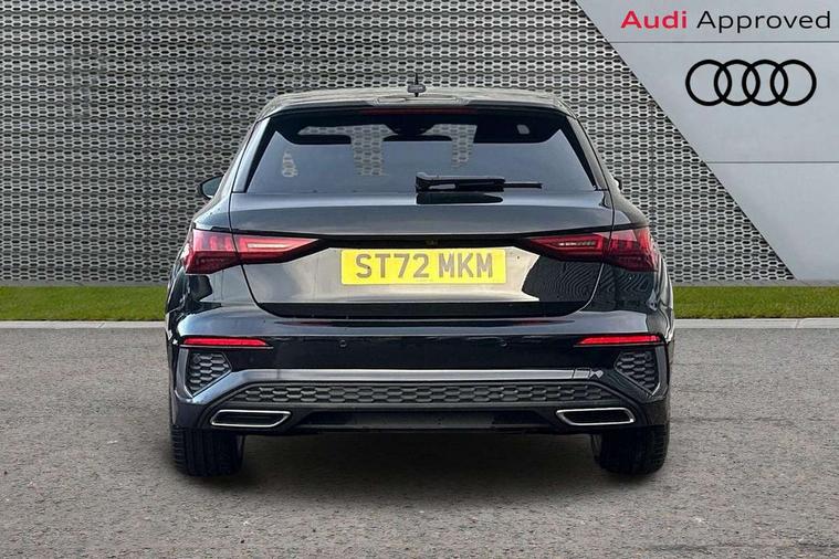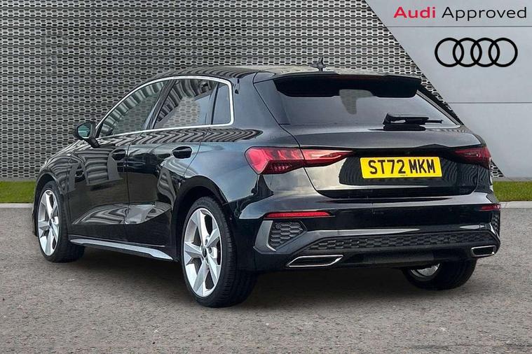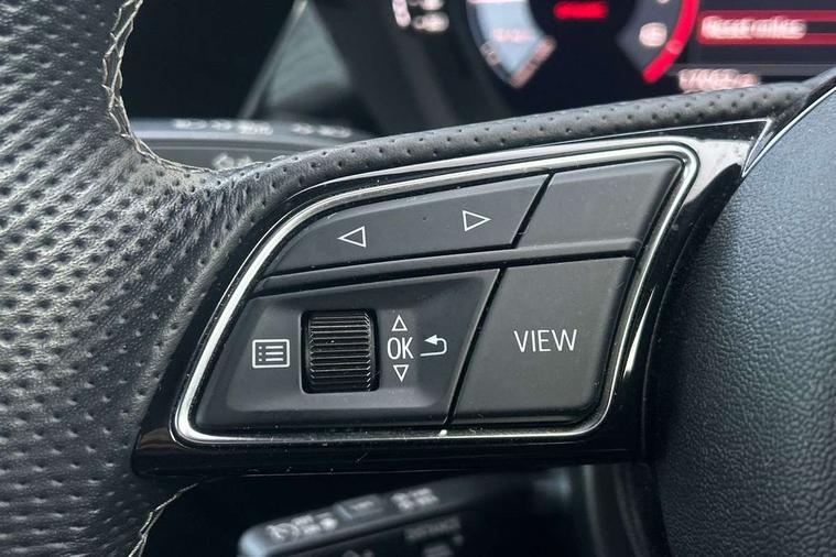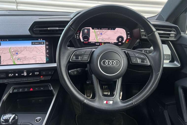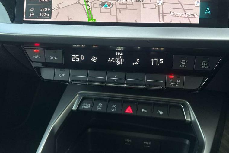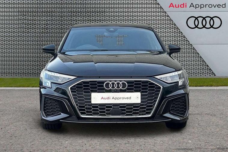 Audi drive select (Auto, Comfort, Dynamic, Efficiency and Individual), Audi smartphone interface, Audi Virtual Cockpit - 10.25" digital and colour instrument cluster, Automatic start/stop system with recuperation, Bluetooth interface, Collision avoidance assistant, Cruise control, e-Call (emergency call), Electromechanical power speed sensitive steering, Lane departure warning system, MMI Navigation Plus with high resolution 10.1" colour touch screen display, Rear parking sensors, Service indicator, Trip computer, Voice control system with natural language interaction, 2xUSB-C connection with data and charging functions, 6 passive loudspeakers, DAB Digital radio, 3rd brake light, Acoustic glass windscreen, Aluminium window trim, Auto dimming frameless rear view mirror, Electrically adjustable/heated/folding/auto dimming door mirrors with integrated LED indications + kerb view function for passenger side, Front electric windows, Illuminated aluminium inserts front door sills with S logo, LED daytime running lights, LED headlights with LED rear lights and dynamic rear indicators, Light and rain sensors, Privacy glass - dark tinted rear window, rear door and side windows, Rear electric windows, Rear side air outlets in grained matt black, Rear side wing doors, Rear wiper, S line bumpers, S roof spoiler, 12V socket and storage compartment in front centre console, 3 seat bench in 2nd row, 40/20/40 split folding rear seat bench with cupholder, Black cloth headlining, Dual zone electronic climate control, Front and rear centre armrest in leather, Front and rear headrests, Front/rear floor mats, Height and reach adjustable steering wheel, Illuminated vanity mirror, Interior lighting - glove compartment light and right hand side, Luggage compartment floor covering, Manual boot compartment lid, Manually adjustable front seats, Seat side bolsters, Single front passenger seat, Stainless steel pedals and front footrest in black, Twin leather upholstery with front sports seats S embossed logo, Aluminium interior elements pack - A3 Sportback, LED interior lighting pack - A3 Sportback, S line styling pack - A3 Sportback, 3x3 point rear seat belts, Audi pre sense front, Driver and front passenger airbag with passenger airbag deactivation, Electronic Stabilisation Control (ESC) including ABS, ASR and EDL, First aid kit with warning triangle and 2 safety vests, Front side airbags with head airbags and interaction airbag, Pre-sense front with pedestrian and cyclist detection, Seatbelt monitoring, Tyre pressure loss indicator, Anti theft alarm, Anti-theft wheel bolts, Electronically operated child lock, Immobiliser, Remote control central locking, Accent surfaces in the dashboard and centre console in platinum grey silk effect paint finish, Dark spectrum aluminium inlays,