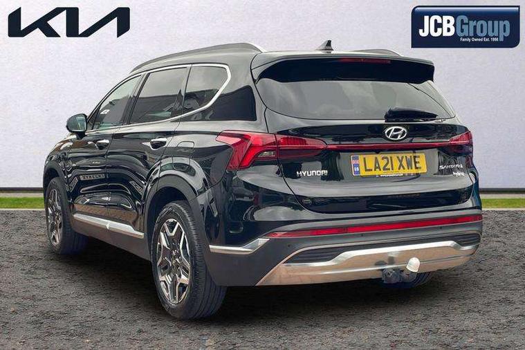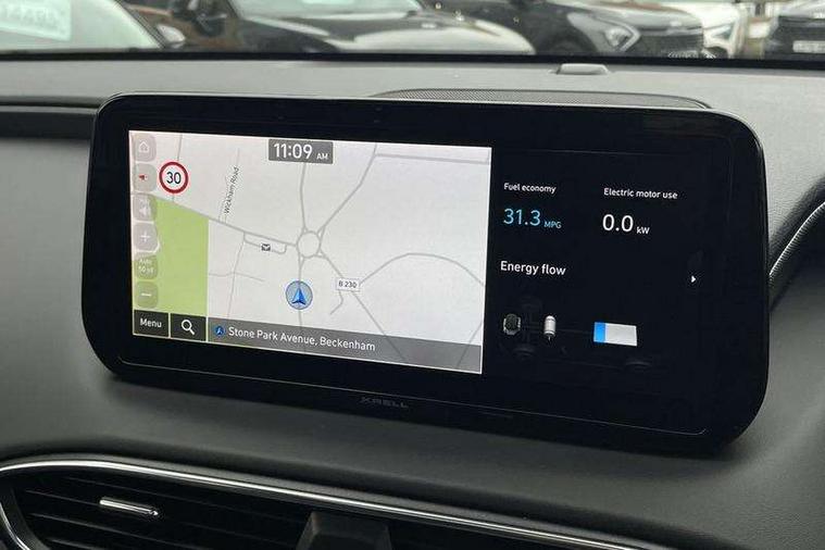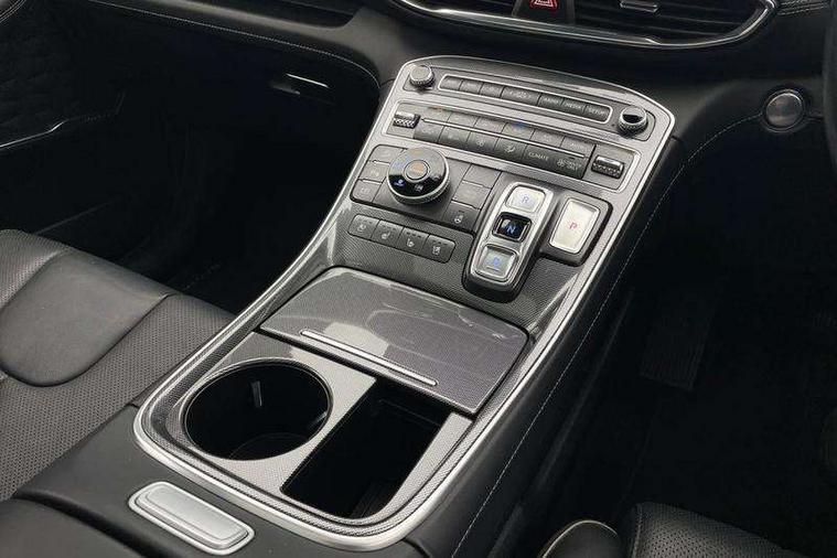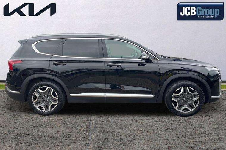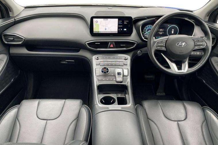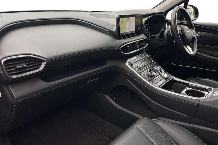 10.25" touchscreen satellite navigation includes traffic messaging channel, mapcare, live services and bluelink, 12.3" TFT supervision cluster display, Apple car play/Android Auto, Blind spot collision avoidance assist, Blind spot monitor, Bluetooth connectivity with voice control, Cruise control - smart adaptive speed control with stop and go function, Drive mode selector, Driver attention alert system, E-call, Emergency stop signalling system, Forward Collision Avoidance Assist (FCA) - Car, Pedestrian and Cycle, Forward Collision Avoidance Assist Junction Turning (FCAJX), Front parking sensor, Head up Display, Highway driver assist, Intelligent speed limit warning, Lane departure warning system with lane keep assist - LKAS, Parking system with surround view monitor, PAS, Rear parking sensor, Remote smart parking, Reverse parking collision aviodance assist, Safe exist assist (SEA), Smart electric tailgate with hand's free opening function, Smart posture control, Smartphone connectivity, Smartphone wireless charging plate, Trip computer, Self levelling suspension, Auxiliary input socket, DAB Digital radio, Krell premium audio with 10 speakers including external amplifier and subwoofer, Rear USB port, Steering wheel mounted controls, USB connection located in centre console, Automatic defog system, Automatic dimming rear view mirror, Automatic headlights with dusk sensor, Automatic windscreen wiper control, Body colour door handles with chrome inserts, Body coloured bumpers, Body coloured door mirrors, Dynamic bending headlight/cornering lights, Electric adjustable/heated/folding door mirrors, Electric front/rear windows/one touch/anti trap, Electric glass tilt and slide panoramic sunroof, Follow me home headlights, Heated rear windscreen with washer, LED daytime running lights, LED front fog lights, LED Headlights, LED rear fog light, LED rear lights, Positioning Lights - LED, Privacy glass in rear window and tailgate, Puddle lights, Rain sensor, Rear wash/wipe with intermittent wipe setting, Roof rails, Smart high beam headlights, Solar glass with windscreen shade band, Trailer stability assist, Variable front intermittent wipers, Windscreen wiper de-icer, 12V power point in luggage area, 12V power points in front + rear centre consoles, 50/50 split/folding 3rd row of seats, 60/40 split folding slide/recline seats 2nd row, Adjustable head restraints, Air conditioning - rear manual temperature control, Bottle holders, Driver seat memory function, Driver's lumbar support, Driver's seat electric adjustments, Driver/passenger sunvisors + illuminated vanity mirrors (drivers with ticket holder), Dual zone climate control, Faux leather door trim, Front and rear door pockets, Front armrest with storage compartment, Front cupholders, Front map reading lights, Front passenger's seat electric adjustments, Front seat and rear pockets, Front/rear interior lights, Grab handles, Heated front seats, Heated outer rear seats, Heated steering wheel, Height/reach adjustable steering column, Isofix child seat preparation for front passenger seat, Isofix on 2nd row outer seats, Leather upholstery, Leather wrapped gear shift knob, Leather wrapped hand brake, Lockable/illuminated air conditioned glovebox, Luggage compartment lighting, Luggage hooks, Luggage net, Manual rear door side blinds, Multifunction leather steering wheel, One-touch folding rear seats, Overhead console with sunglasses holder, Rear armrest with storage, Retractable load area cover, Underfloor storage system in load area, Ventilated front seats, Trailer wiring pack - Santa Fe, 3 point seatbelts on all seats, ABS/EBD, Childproof rear door locks, Curtain airbags, Downhill brake control, Driver and passenger airbags, Electric parking brake, ESP, Front seatbelt pretensioner, Front side airbags, Height adjustable front seatbelts, Hill start assist control (HAC), Passenger airbag deactivate switch, Rear seat belt pretensioners, Rear seat Occupancy alert, Seat belt reminder, Seatbelt warning lamp, Traction control, Tyre pressure monitoring system, Deadlocks, Engine immobiliser, Keyless entry with start/stop button, Locking wheel nuts, Remote control central locking, Speed sensitive auto door locking, Thatcham category 1 alarm, Faux leather wrapped dashboard, 19" Alloy wheels, Tyre repair kit,
