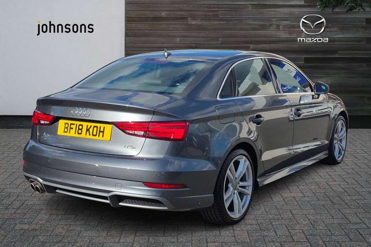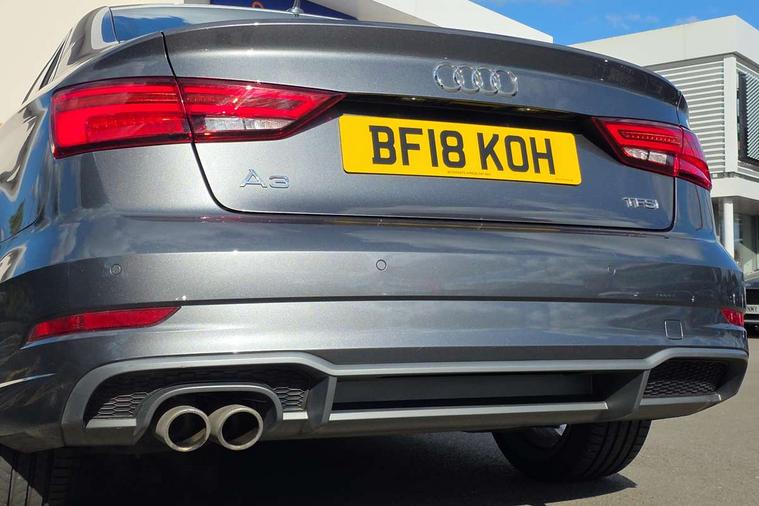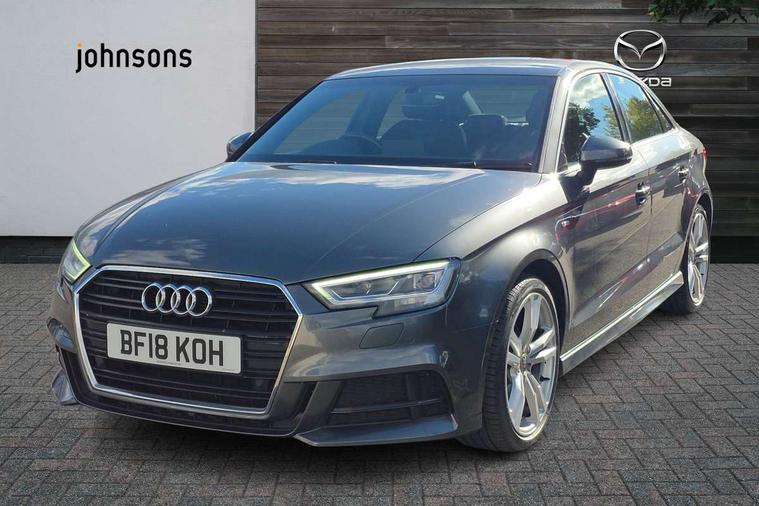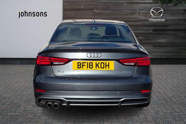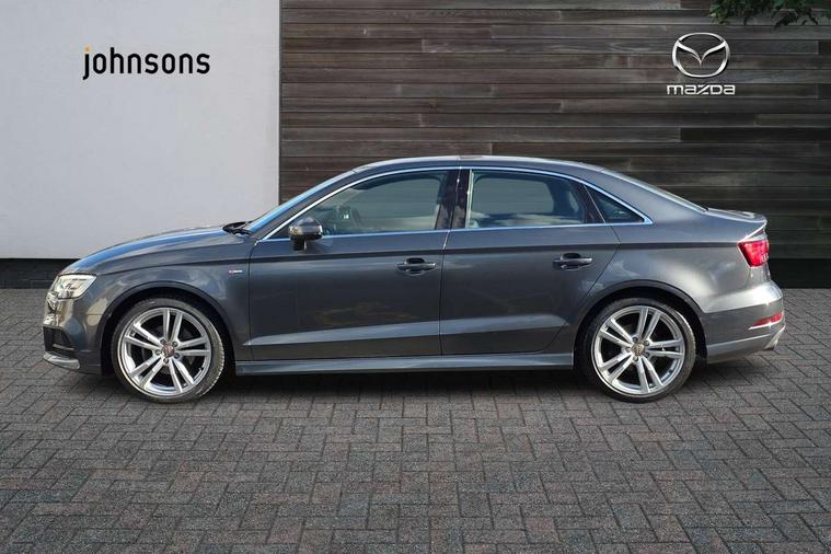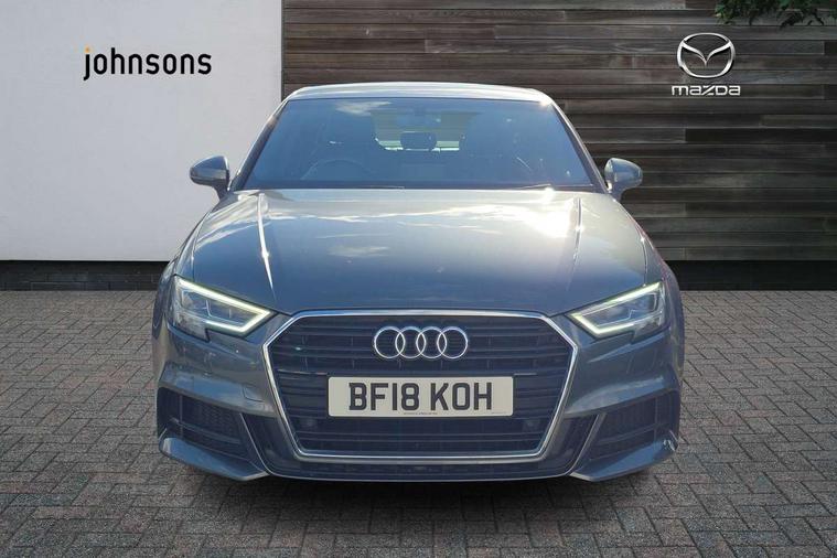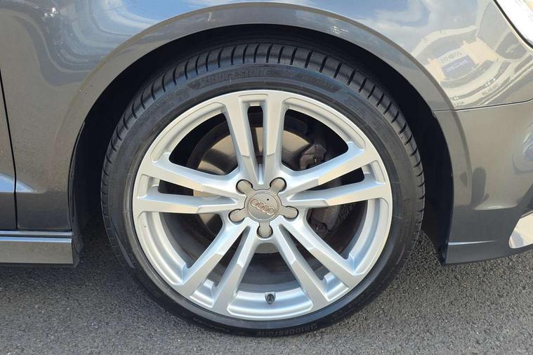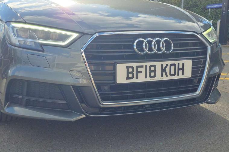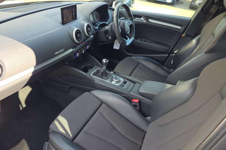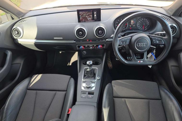 Audi connect, Audi drive select, Audi smartphone interface, Bluetooth interface, Colour driver's information system display, Electro-mechanical PAS, SD card based satellite navigation system, Service interval indicator, Voice control system, 2 USB ports, Audi music interface, Aux-in socket, CD player, DAB Digital radio, MMI radio plus with 7" colour MMI screen and MMI controller, Aluminium side window trim, Automatic lights and wipers, Body colour bumpers, Body colour door mirrors with integral indicators, Body colour roof spoiler, Chrome exhaust tailpipes, Electric operated/heated door mirrors, Front and rear electric windows, Heated rear window, Heated windscreen washer jets, High gloss dark chrome radiator grille, LED daytime running lights, S Line body styling, 3 adjustable rear headrests, 3 spoke flat bottomed multi-function leather steering wheel, 4 lashing points to secure luggage, Adjustable front armrest, Black cloth headlining, Driver/passenger sunvisors, Dual zone electronic climate control, Front and rear interior lights with delay, Front sports seats, Front/rear floor mats, Height/depth adjustable steering column, Illuminated door sills, Illuminated glovebox, ISOFIX child seat preparation+airbag deactivation, Jack and tool kit, Stainless steel pedals, Storage compartment in centre console, Storage compartments in doors, Storage under driver's seat, LED interior light pack - A3/RS3, Non smoking pack - A3, Storage and luggage pack - A3/RS3, 3 point seatbelts on all seats, ABS/EBD, ASR, Curtain airbags, Driver and passenger side airbags, Driver/Front Passenger airbags, Drivers knee airbag, EDL, Electromechanical parking brake, ESC - Electronic Stability Control + traction control, Front passenger airbag deactivation, Seatbelt warning, Tyre pressure warning, Warning triangle and first aid kit, Anti theft alarm, Anti-theft wheel bolts, Immobiliser, Remote control central locking, Aluminium air vent surrounds, Aluminium trim elements, Matt brushed aluminium inlays,