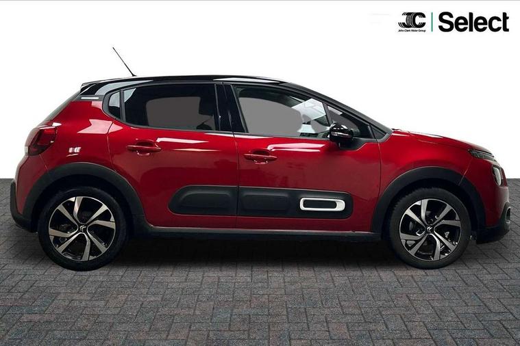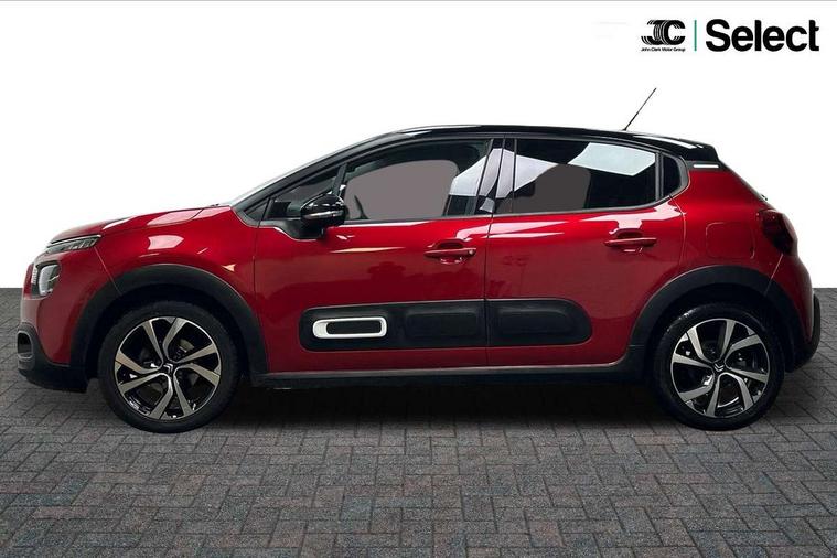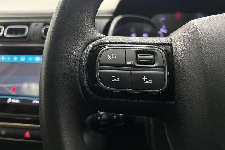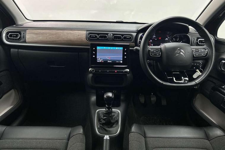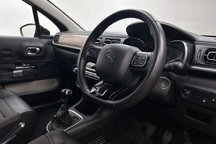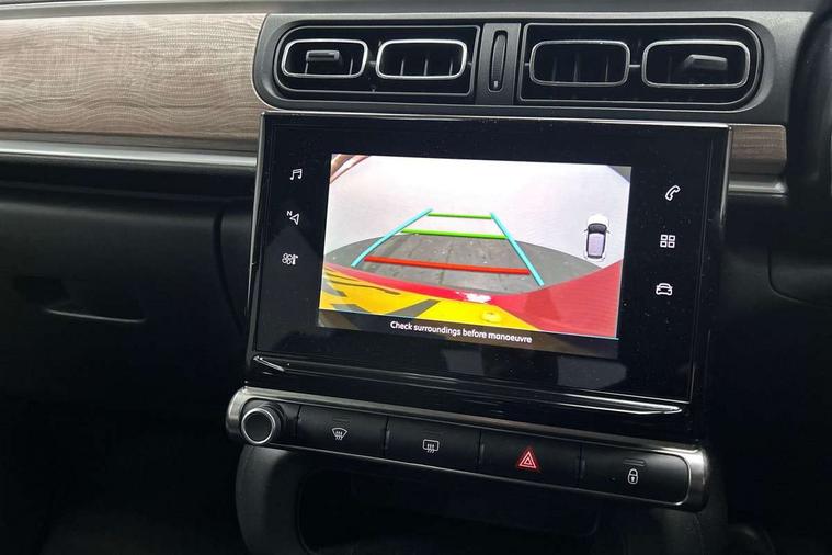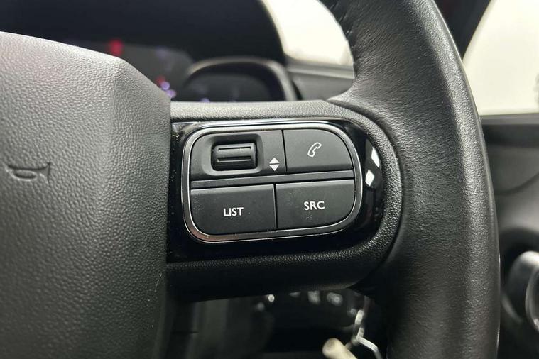 Citroen connected nav with DAB, 6 speakers, 7" captive touch screen, mirror screen includes apple carplay/android auto and bluetooth, Coffee Break Alert, Cruise control + speed limiter, eCall emergency call system, Exterior temperature display, Lane departure warning system, Multi function trip computer, Rear parking sensors, Reversing camera, Satin chrome surround instrument cluster with white LCD and analogue gauges, Variable assistance power steering, USB connection, 3D rear light signature, Airbump on side door panel, Auto headlights, Automatic activation of hazard warning lights, Body colour bumpers, Body colour door handles, Chrome decoration on front face, under chevrons and around daytime running lights, Citroen illuminated signature in LED headlights and LED daytime running lights, Dark tinted tailgate and rear side windows, Electrically adjustable door mirrors, Electrically folding door mirrors, Fog lights integrated into front bumper, Front sequential electric windows with one-touch open/close and anti-pinch system, Front windscreen wipers with two speeds and intermittent mode linked to vehicle speed, Gloss black finish B pillar, Heated door mirrors, LED Headlights, LED third brake light, Rear sequential electric windows with one-touch open/close and anti-pinch system, Rear side wing doors, Rear windscreen wiper with intermittent mode linked to vehicle speed and automatic activation when reverse gear selected, Roof colour rear view mirror caps, 1/3 to 2/3 split folding rear seat, 12V socket, Automatic air conditioning, Boot light, Cloth/leather effect upholstery, Driver and passenger's sun visor with courtesy mirror, Driver's central armrest, Driver's seat height adjustment, Front lighting panel with map reading lights, Front seats adjustable with forward back slide and adjustable backrest, Height adjustable front head restraints, Height/reach adjust steering wheel, ISOFIX mounting on outer rear seats with top tether and labels indicating fixing points, Leather steering wheel with gloss black + satin chrome elements and audio/telephone controls, Leather trimmed gear lever with leather effect gaiter and overstitching, Map pockets in back of driver and front passenger seats, Parcel shelf, Row 2 - Three seats with individually adjustable head rests, Seatbelt unfastened on the move audible and visual alert for front and rear seats, Single front passenger seat, Storage space under touchscreen with rubber mat, Three rear headrests, Upholstered armrest in front and rear doors, Safety pack 1 - C3, Safety pack 2 - C3, Visibility pack with automatic lights - C3, ABS with Electronic brakeforce distribution and Emergency braking assistance, Driver and front passenger seatbelts with pyrotechnic pretensioners and force limiters, Driver's airbag, Electric child locks, ESP with anti skid system, Front passenger airbag, Front passenger airbag deactivation, Front side airbags + front/rear curtain airbags, Hill start assist, Manual parking brake with leather handle and chrome finish button, Mono-tone horn, Outer rear seats with pretensioners and force limiters, Three rear 3-point seatbelts, Tyre pressure monitoring system, Anti theft alarm, Automatic door and boot locking when moving off with automatic unlocking in case of impact, Central locking with locked indicator and interior one touch lock button, Immobiliser, Remote control central locking with two plip keys, 17" Vector diamond cut alloy wheels, Space saver spare wheel,
