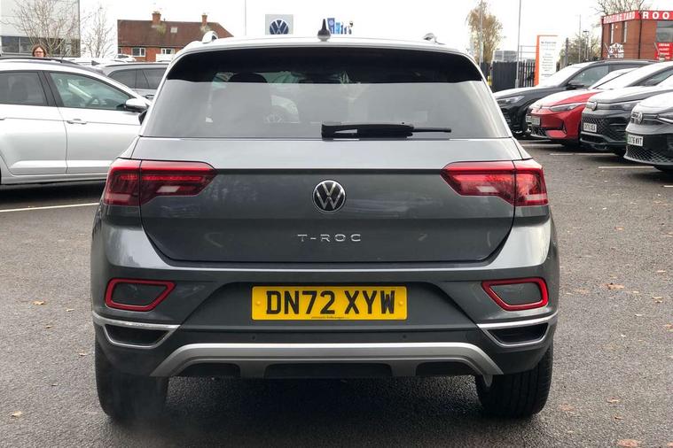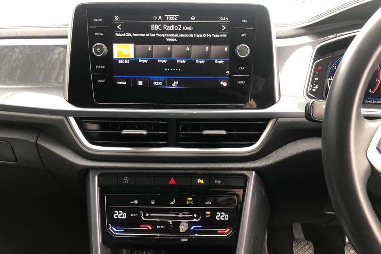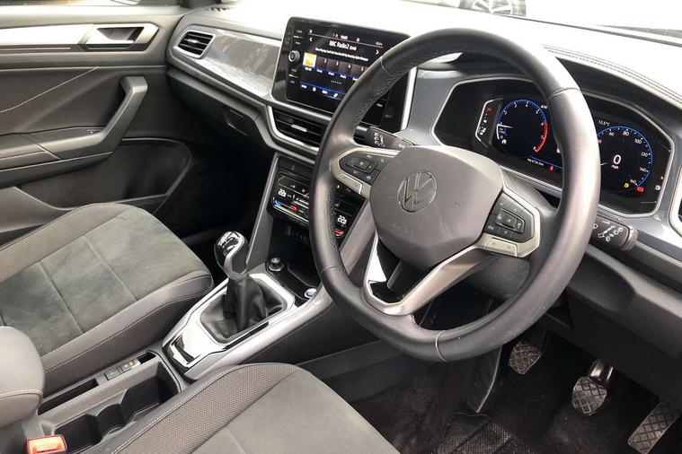 10.25" Digital cockpit pro, Bluetooth mobile phone interface, Driver alert system with fatigue detection, Driver tips and journey analysis, Emergency call service, Lane keeping system Lane Assist, Modified key software - reduce switch off time for key status change to Long no motion, Online services, Park assist including front and rear parking sensors, Service interval indicator, Tailgate/trunk lid release from outside, Think blue trainer driver tips and journey analysis, Warning sound and light for front seatbelts unfastened, Wireless app connect, Battery regeneration during braking, Start/stop function with battery regeneration, Diversity antenna for FM reception, Front and rear 6 speakers, Music playback - MP3, WMA and AAC files, Premium USB cable in choice of either Apple or Android smartphone compatibility, SD card slot, Simultaneous pairing of 2 compatible mobile devices, Title and cover art display, We Connect and We Connect Plus functionality, 3rd brake light, Auto dimming interior rear view mirror, Automatic hazard lights activation under emergency braking, Automatic headlight control with LED separate daytime running lights with coming/leaving home function, Body colour sports bumpers with silver metallic underbody fascia, Dynamic headlight range control with self adjusting whilst driving, Extended roof spoiler, Exterior mirrors aspherical on driver side, convex on front passenger side, External USB type C socket and charging sockets, Front windscreen wiper with intermittent wipe and 4 position delay, Heated rear window, LED Plus headlamps, LED rear combination lamps, LED rear number plate lights, LED tail lamp rear comination lamps, Light mode for poor weather, rain, fog or snow, Power windows with comfort operation and circuit breaker, Rain sensor, Rear exhaust tailpipe, Rear fog light on one side and reversing lights on both sides, Rear side wing doors, Rear wash/wipe with intermittent wipe setting, Remote electrically foldable door mirrors, puddle lights and reverse activated passenger's door mirror, 12V power socket in centre console, 3 rear head restraints, 3 seat bench in 2nd row, 4 load lashing points in luggage compartment, Air care climatronic air conditoning system with active combination filter and 2-zone temperature control, Chrome plated radiator grille inserts, air vent surrounds and light switch surrounds, Door and side trim panel with leatherette insert, Drawer under drivers seat, Front + rear carpet mats, Front centre armrest, Front comfort sports seats, Front cupholders x 2, Front footwell illumination, Instrument lighting, white adjustable panel illumination, Interior ambient lighting and surround lighting, Interior light delay, Isofix child seat preparation, Leather gearshift handle, LED interior light with switch off delay/dimmer and 2 front/rear LED reading lights, Load-through provision with cup holder when folded down ('Unsplit rear seat bench, split folding backrest, with centre armrest), Luggage compartment lighting, Non-folding front passenger seat backrest, Single front passenger seat, Storage compartment in left and right luggage area, Storage compartment in rear doors, Storage compartments in driver and front passenger doors, Sunvisors with illuminated vanity mirrors, Variable boot floor, height adjustable and removable, Driver assistance pack without proactive passenger protection - T-Roc, 3 point height adj front seatbelts + pretensioners, 3 point seatbelts in outer rear with ECE label, ABS, Child locks on rear doors, Driver and front passenger airbag with front passenger airbag deactivation, Driver and front passenger safety-optimised head restraints, Drivers seatbelt reminder, Electronic parking brake, Electronic Stability Control (ESC) inc EDL (Electronic Differential Lock) and ASR (Traction Control), Front and rear passengers curtain airbag system including front side airbags, Front assist with city emergency braking and pedestrian monitoring, Front seat side impact airbags, Predictive pedestrian protection, Rear disc brakes, Single tone horn, Tyre pressure loss indicator, Volkswagen roadside assistance, Alarm with interior protection, Anti-theft alarm system with interior monitoring, backup horn, and towing protection, Remote central locking with SAFELOCK, radio remote control with 2 remote control folding keys, Trims for alloy wheels,