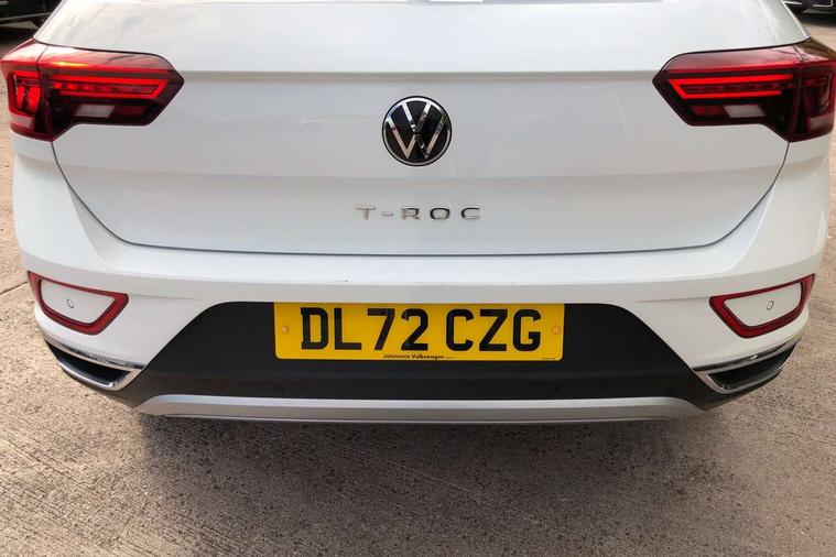 10.25" Digital cockpit pro, Bluetooth mobile phone interface, Driver alert system with fatigue detection, Driver tips and journey analysis, Emergency call service, Lane keeping system Lane Assist, Modified key software - reduce switch off time for key status change to Long no motion, Online services, Park assist including front and rear parking sensors, Service interval indicator, Tailgate/trunk lid release from outside, Think blue trainer driver tips and journey analysis, Warning sound and light for front seatbelts unfastened, Wireless app connect, Battery regeneration during braking, Start/stop function with battery regeneration, Diversity antenna for FM reception, Front and rear 6 speakers, Music playback - MP3, WMA and AAC files, Premium USB cable in choice of either Apple or Android smartphone compatibility, SD card slot, Simultaneous pairing of 2 compatible mobile devices, Title and cover art display, We Connect and We Connect Plus functionality, 3rd brake light, Auto dimming interior rear view mirror, Automatic hazard lights activation under emergency braking, Automatic headlight control with LED separate daytime running lights with coming/leaving home function, Body colour sports bumpers with silver metallic underbody fascia, Dynamic headlight range control with self adjusting whilst driving, Extended roof spoiler, Exterior mirrors aspherical on driver side, convex on front passenger side, External USB type C socket and charging sockets, Front windscreen wiper with intermittent wipe and 4 position delay, Heated rear window, LED Plus headlamps, LED rear combination lamps, LED rear number plate lights, LED tail lamp rear comination lamps, Light mode for poor weather, rain, fog or snow, Power windows with comfort operation and circuit breaker, Rain sensor, Rear exhaust tailpipe, Rear fog light on one side and reversing lights on both sides, Rear side wing doors, Rear wash/wipe with intermittent wipe setting, Remote electrically foldable door mirrors, puddle lights and reverse activated passenger's door mirror, 12V power socket in centre console, 3 rear head restraints, 3 seat bench in 2nd row, 4 load lashing points in luggage compartment, Air care climatronic air conditoning system with active combination filter and 2-zone temperature control, Chrome plated radiator grille inserts, air vent surrounds and light switch surrounds, Door and side trim panel with leatherette insert, Drawer under drivers seat, Front + rear carpet mats, Front centre armrest, Front comfort sports seats, Front cupholders x 2, Front footwell illumination, Instrument lighting, white adjustable panel illumination, Interior ambient lighting and surround lighting, Interior light delay, Isofix child seat preparation, Leather gearshift handle, LED interior light with switch off delay/dimmer and 2 front/rear LED reading lights, Load-through provision with cup holder when folded down ('Unsplit rear seat bench, split folding backrest, with centre armrest), Luggage compartment lighting, Non-folding front passenger seat backrest, Single front passenger seat, Storage compartment in left and right luggage area, Storage compartment in rear doors, Storage compartments in driver and front passenger doors, Sunvisors with illuminated vanity mirrors, Variable boot floor, height adjustable and removable, Driver assistance pack without proactive passenger protection - T-Roc, 3 point height adj front seatbelts + pretensioners, 3 point seatbelts in outer rear with ECE label, ABS, Child locks on rear doors, Driver and front passenger airbag with front passenger airbag deactivation, Driver and front passenger safety-optimised head restraints, Drivers seatbelt reminder, Electronic parking brake, Electronic Stability Control (ESC) inc EDL (Electronic Differential Lock) and ASR (Traction Control), Front and rear passengers curtain airbag system including front side airbags, Front assist with city emergency braking and pedestrian monitoring, Front seat side impact airbags, Predictive pedestrian protection, Rear disc brakes, Single tone horn, Tyre pressure loss indicator, Volkswagen roadside assistance, Alarm with interior protection, Anti-theft alarm system with interior monitoring, backup horn, and towing protection, Remote central locking with SAFELOCK, radio remote control with 2 remote control folding keys, Trims for alloy wheels,