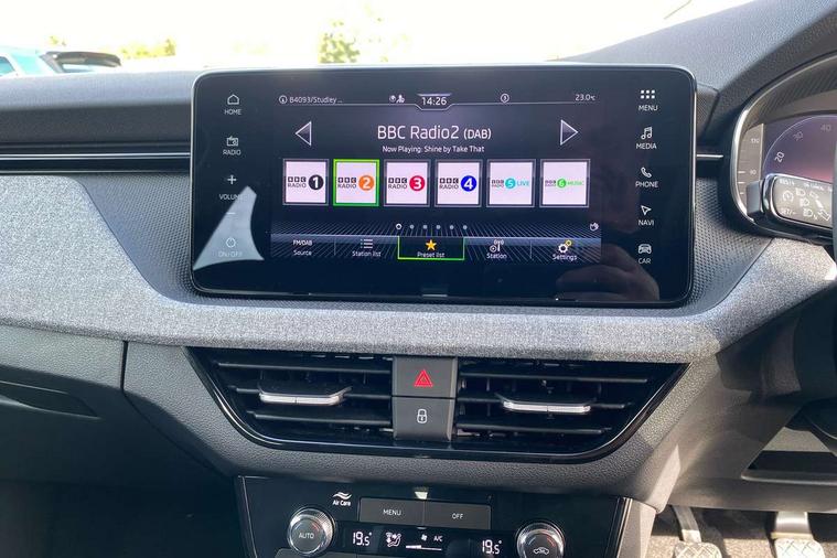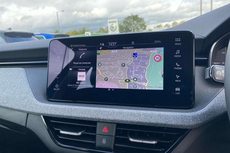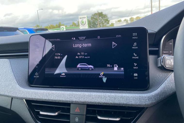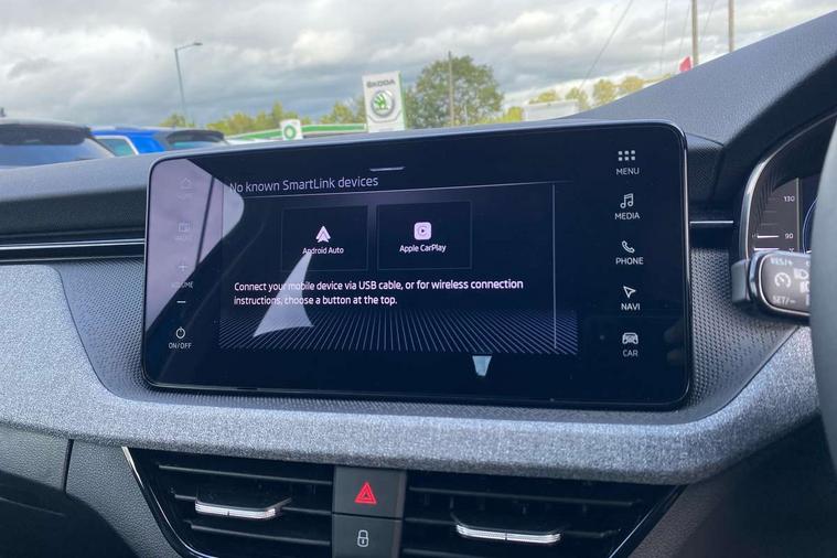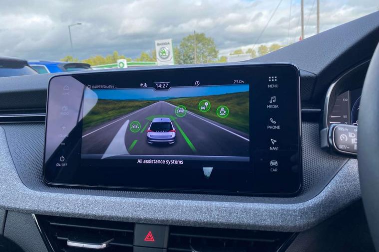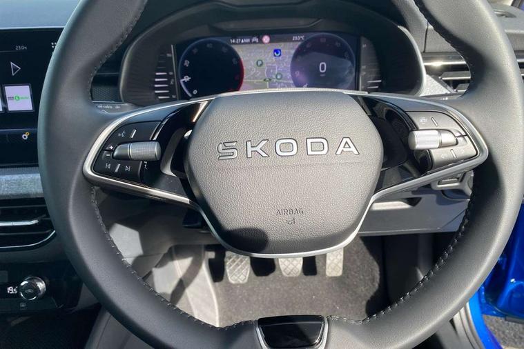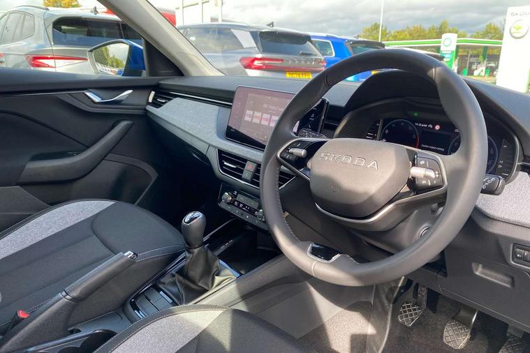 Advanced driver attention and drowsiness monitor, Bluetooth, e-Call (emergency call), Front assist system, PAS, Rear parking sensors, Rear view camera, Speed limiter, Tailgate, Traffic sign recognition, Virtual Cockpit - 10.25" digital display, Voice control system, Wireless smartlink, 4 USB C ports, 8 Speakers, 9.2" Skoda navigation display, DAB radio, Auto dimming rear view mirror, Automatic headlamp activation with Coming home and Leaving home feature, Automatic high/low beam, Body colour bumpers, Body colour door mirrors and handles, Chrome moulding around grille, Front and rear electric windows, Full LED headlights, Heated rear window, LED 3rd brake light, LED brake lights, LED daytime running lights, LED front turning lights, LED high beam, LED low beam, LED taillights, Rear LED fog light, Rear side wing doors, Rear wiper, Tinted windows, Unique dark chrome design logo on alloy wheels, 12V socket in luggage compartment, 3 seat bench in 2nd row, Black / Grey armrest stitching, Black hotstamping, Cargo elements, Chrome inner door handles, Door inserts in satin black, Driver and passenger sun visors with vanity mirror, Dual zone climate control, Front and rear roof lights, Front centre armrest, Front head restraints, Glasses storage in roof liner, Height adjustable driver seat, Height adjustable passenger seat, Ice scraper, Illuminated glove compartment, Inner circulation control with pollen filter, ISOFIX for front passenger seat, Isofix preparation for back seats, Leather gearknob and handbrake lever, Loft cloth upholstery, Luggage net under rear parcel shelf, Manual lumbar support for front seats, Net package and top tether hooks in boot space, Pearl grey ceiling, Pocket on the back of both front seats, incl. mobile phone pockets, Single front passenger seat, Skoda lettering on steering wheel, Textile floor mats, Third rear headrest, Ticket holder, Top tether for front passenger seat, Umbrella in driver's door, 3x3 point rear seatbelts, ABS, Child locks, Curtain airbags and front side airbags, Disc brakes, Driver and front passenger airbags, ESP, Hill hold control, Manual leather parking brake, One tone horn, Passenger airbag switch off function, Seatbelt reminder for driver and front passenger, Tyre pressure monitoring system, Anti theft alarm system with interior monitoring, backup horn and towing protection, Anti-theft wheel bolts, Remote central locking with 2 remote folding keys, SAFE function for remote central locking, Decord pad, door inserts Kota uni,