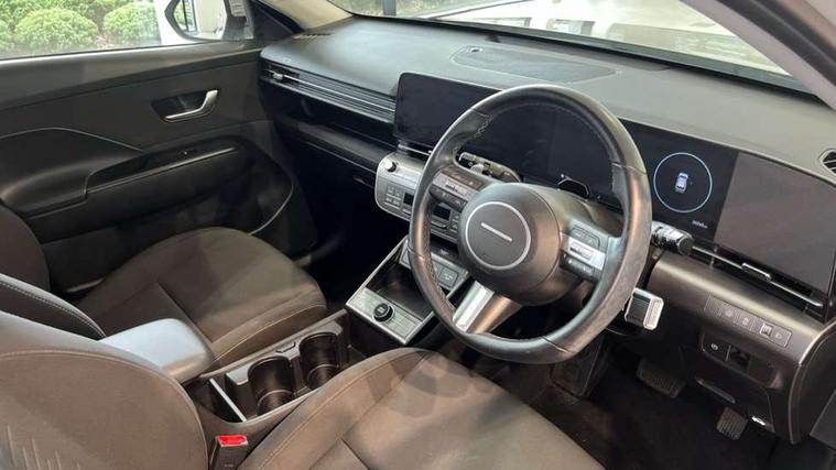10.25" touchscreen centre console display satellite navigation with live services and mapcare, Bluetooth connectivity with voice recognition, Digital clock, Driver attention warning, Driver supervision instrument cluster with 12.3" LCD display, eCall emergency call system, Forward collision avoidance assist (FCA 1.5) - Car, pededstrian, cycle and junction turning, Front parking sensor, Head up Display, Intelligent speed limit assist, Lane follow assist, Lane keep assist, Leading vehicle departure alert (LVDA), Parking system with rear camera and guidance system, PAS, Rear parking sensor, Roadside assistance, Smart cruise control with stop and go functionality, Smartphone integration compatible with Apple CarPlay and Android Auto, Windscreen washer fluid sensor and warning indicator, 2 front USB C and 2 rear USB C charging points, DAB Digital radio, Speakers - Front, rear and tweeters, Steering wheel audio, phone and cruise controls, Auto dimming rear view mirror, Automatic headlights with dusk sensor, Automatic windscreen wipers with rain sensor, Black painted wheel arch inserts, Body colour bumpers, Body colour exterior door handles, Body coloured door mirrors, Door mirror LED indicator lights, Electric front windows with anti-trap mechanism and one touch control, Electric rear windows, Electrically adjustable and heated door mirrors, Full LED MFR headlights, LED daytime running lights, LED rear lights, Power folding door mirrors, Rear roof spoiler with integrated LED brake light, Rear side wing doors, Rear skid plate - silver, Rear wiper, Roof rails, Tinted glass in front and rear doors, Windscreen auto defog function, 12V power outlet in front console, 2 zone climate control, 3 seat bench in 2nd row, 60/40 split folding rear seat, Adjustable head restraints, Cloth upholstery, Driver and passenger front seat pockets, Driver's seat electric lumbar support, Driver's seat height adjustment, Driver/passenger sunvisors and illuminated vanity mirrors, Front passenger seat manual adjustments, Height/reach adjustable steering column, Isofix rear child seat fastenings, LED centre interior light, LED front interior light, Luggage compartment LED lighting, Metal paint effect interior door handles, Parcel shelf, Rear centre armrest, Rear centre console with air vents, Shift by wire SBW, Single front passenger seat, Vertical adjustment rear head restraints, Trailer wiring package - Kona, Airbag - front, front side, curtain and centre front airbag, Anti-lock brake system (ABS), Childproof rear door locks, Downhill brake control, EBD + Brake Assist, Electric parking brake, Electronic stability control, Fasten seatbelt reminder, Fixed 3 point for second row centre passenger seatbelt, Front seatbelt pretensioners, Height adjustable front seatbelts, Hill start assist control (HAC), Passenger airbag deactivate switch, Rear seat alert, Traction control, Tyre pressure monitoring system, Alarm/immobiliser, Deadlocks, Folding key, Locking wheel nuts, Remote central locking, Smart key with keyless entry and engine start/stop button, 18" Alloy wheels, Temporary mobility kit (TMK),