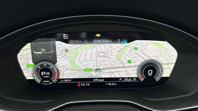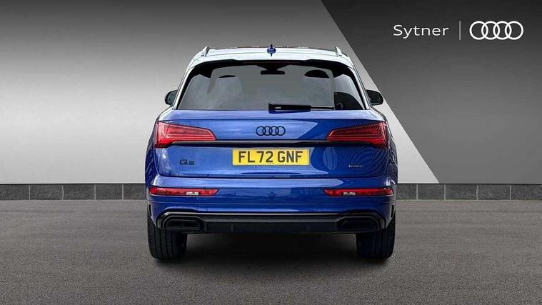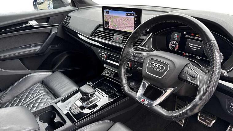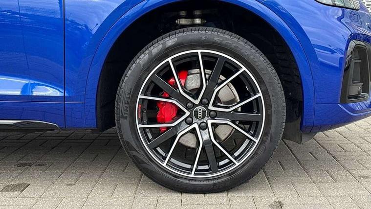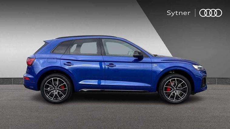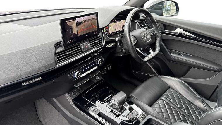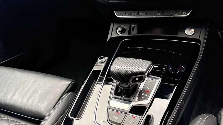 Audi connect safety and service (e-call), Audi connect with Amazon Alexa Integration, Audi drive select, Audi virtual cockpit plus with 12.3" screen and three different layout designs, Audi wireless smartphone interface, Automatic start-stop system with coasting functionality and efficiency programme, Bluetooth interface, Electro - mechanical power assisted steering, MMI navigation plus with 10.1" touch screen, Power tailgate, Reversing camera, Service interval indicator, Voice control system with Audi hotword activation "Hey Audi", Diesel particulate filter, Quattro on demand, S line sports suspension, 2 x USB charging port with aux input socket, DAB Digital radio, Acoustic windscreen, Audi matrix LED headlights with dynamic front and rear indicators, Audi rings at front and rear in black, Audi rings decal on rear doors, Auto dimming door mirrors, Auto dimming rear view mirror, Automatic headlights and windscreen wipers, Black door mirrors, Black roof rails, Body colour bumpers, Body colour underbody protection, Chrome plated exhaust trims, Daytime running lights, Door sills in Selenite silver, Electric adjustable/heated/folding door mirrors, Front air inlet surrounds in titanium black, Front and rear electric windows, Headlight washers, High gloss black B pillar trims and triangular rear door trim, High level LED brake light, Rear chrome trim strip below lights, Rear privacy glass and rear side windows, Rear side wing doors, Rear wiper, Roof bars, S Line rear spoiler, 3 rear headrests, 4 way electric lumbar support for driver and front passenger, 40:20:40 split folding 3 rear bench seat in 2nd row with rear centre armrest, Black cloth headlining, Comfort front centre armrest, Contrast stitching on seats, steering wheel and gear lever gaiter, Deluxe 3 zone electronic climate control, Electrically adjustable front seats, Fine Nappa leather upholstery with diamond pattern contrast stitching + front sport seats with S embossed logo, Front/rear floor mats, Gear lever in black leather, Heated front seats, Height adjustable front head restraints, Height/reach adjustable steering column, Illuminated door sill trims with S logo, ISOFIX child seat mounting and top tether, Rear seat bench plus, Removable luggage compartment floor, Single front passenger seat, Stainless steel pedals, Sunvisors with vanity mirrors, Black styling package - Q5 Edition 1, Extended interior upholstery pack - Q5, Extended LED Interior multi coloured Lighting Pack - Q5, 3 point seatbelts on all seats, 6 airbags - Driver, front passenger, curtain and side airbags, Electrically operated child locks on rear doors, Electromechanical parking brake, Electronic stabilisation control including ABS, ASR and EDL, Front and rear brake calipers painted in red, Front passenger airbag deactivation, Hill descent control, Hill hold assist, Multi collision brake assist, Pop-up bonnet for pedestrian protection, Pre sense city, Seat belt force limiter, Seatbelt monitoring, Tyre pressure warning, Warning triangle and first aid kit, Anti theft alarm, Anti-theft wheel bolts, Keyless Go access/ignition system, Remote central locking, Piano black finish inlay,