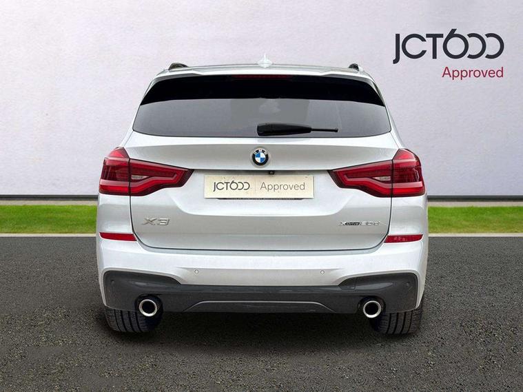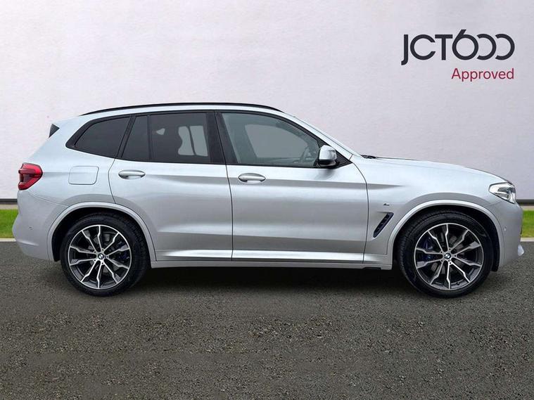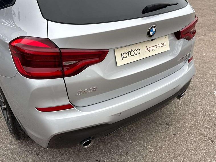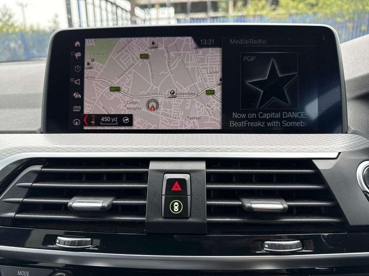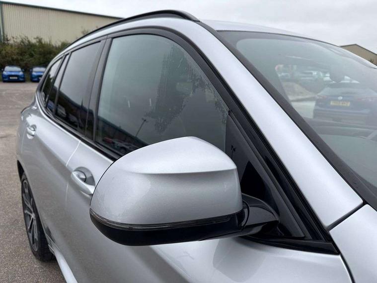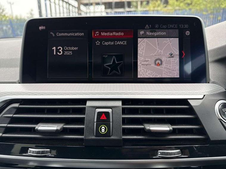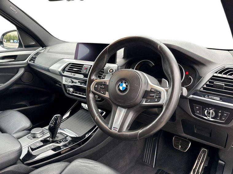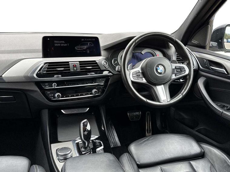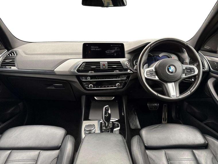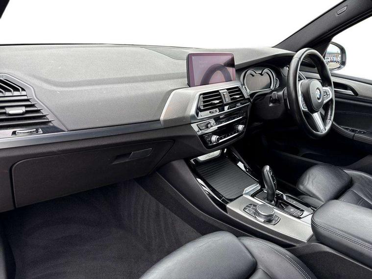 Active Guard incl speed limiting and lane departure functions with auto steering, and front collision warning with brake intervention, Attentiveness assist, Automatic tailgate operation, BMW Live Cockpit Professional sat nav system including 10.25" high resolution display and Intelligent Voice Assistant, BMW Online services, BMW Teleservices, Brake pad wear indicator in front and rear, Check Control warning system for monitoring of lights and door/luggage compartment open warning, Control display - 6.5" colour display screen, Electric Power Steering (EPS) with Servotronic, Front/rear Parking distance control, iDrive Controller with 8 favourite buttons, Lights on warning by audio warning signal when ignition is switched off, Navigation system - BMW Professional multimedia with Hard disc drive (HDD) and 10.25" touch display, Oil sensor for level and grade, warning by check control system, On board computer - average speed+fuel consumption, service interval, clock/date, odometer/trip meter, outside temperature display and ice warning, Optimum shift indicator, Personal Profile - automatic lock when driving away selectable, Real time traffic information, Semi digital instrument cluster, Stop/start system, Automatic transmission with gearshift paddles, Diesel particulate filter, Incorrect fuelling protection, Larger capacity fuel tank, Multi-link rear suspension, Performance Control, Auxiliary socket for external MP3 player, BMW professional radio/CD/MP3, DAB Digital radio, Acoustic glazing, Black finish on B pillars, Body colour door handles, Body colour electric adjust heated aspherical door mirrors, Body colour roof mouldings, Body coloured bumpers, Chrome kidney grille with high gloss black vertical slats, Direction indicator, side repeaters, integrated in exterior mirrors, Dual chrome exhaust, Dynamic brake lights, Exterior mirrors - electrically folding with anti-dazzle, Fingertip control / anti-trap function on electric window, Follow me home headlights, Front and rear bumper system with replaceable deformation elements, Front and rear electric windows, Green tinted heat insulating glass, Heated windscreen washer jets, Height adjustable headlamps, High gloss black door sill finishers, High gloss black shadow line roof rails, High gloss shadowline exterior trim in decorative moulding side frame/recess cover/guide rail/B, C pillars/mirror frame and triangle with mirror base, High level 3rd brake light incorporating LED Technology, Interior rear view electrochromatic mirror with automatic anti dazzle function, LED front fog lights, LED tail lights, Lightweight engineering, M aerodynamic bodystyling, Model designation, Rain sensor including auto headlights activation, Rear wiper, Shark fin antenna, Visible VIN plate, Welcome lighting, Windscreen wipers with adjustable interval, 12V socket in centre console and luggage area, 3 rear headrests, 3 zone automatic air conditioning, 4 lashing points to secure luggage, Ambient lighting, Anthracite headlining, Anthracite Velour floor mats, Driver/passenger sunvisors with ticket holders + illuminated vanity mirrors, Foldable boot floor with storage compartment, Four grab handles integrated in roof lining, Front and rear bottle holders integrated into door trim storage compartments, Front and rear side armrests integrated into door trim, Front centre armrest with storage compartment, Front footwell lights, Front sports seats, Front/rear courtesy lights with soft on/off dimming, Front/rear reading lights, Height adjustable front/rear head restraints, Isofix rear child seat preparation, Leather gear knob, Luggage area underfloor compartment, Luggage compartment lighting, M Sport multifunction leather steering wheel, Parcel shelf removeable and storable under boot floor, Reach and rake adjustable steering column, Rear centre armrest with 2 cupholders, Rear seat centre armrest with two cupholders, Removable / retractable luggage cover, Slope adjustable rear seats, Storage compartment in rear centre console and front/rear door trims, Through loading system with 40/20/40 split folding rear seat, Toolkit located in luggage compartment, Two front cupholders with removable oddments tray/lid, Vernasca leather upholstery, Connected pack professional - X3, ABS/EBD, ADB - Automatic Differential Brake, Automatic Stability Control (ASC), Battery safety cut-off, BMW emergency call, Brake assist, Brake assist function, Brake drying, Brake energy regeneration, Braking pre-tensioning, Child locks on rear doors, Cornering brake control (CBC), Crash Sensor - activation of central locking release, hazard warning light and interior lighting, Deactivation of fuel pump in the event of a crash, Driver and front passenger front and side airbags with passenger deactivation and ITS front and rear head airbags, DSC+, Dynamic brake control, Dynamic Traction Control - DTC, Electromechanical parking brake, Front seat belts warning, Hill descent control, Hill start assist, Seatbelt security check for front seats, Side impact protection, Three point seatbelts to all seats with front and outer rear pyrotechnic belt tensioners and seat belt force limiters, Two tone horn, Tyre pressure monitoring system, Ventilated front and rear disc brakes, Warning triangle and first aid kit, Central locking switch for all doors, fuel filler cap and luggage compartment, Electronic engine immobiliser, Locking wheel nuts, Remote control including two integrated key - one button for open/close all lockable content, windows and separate button for open luggage compartment, Remote control Thatcham category 1 alarm, Start/stop button with Comfort Go keyless engine start and auto Start/stop deactivation button, Low rolling resistance tyres,