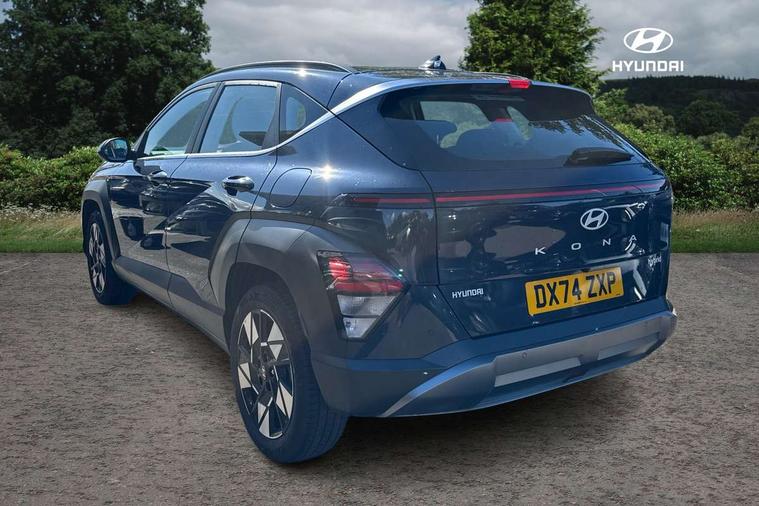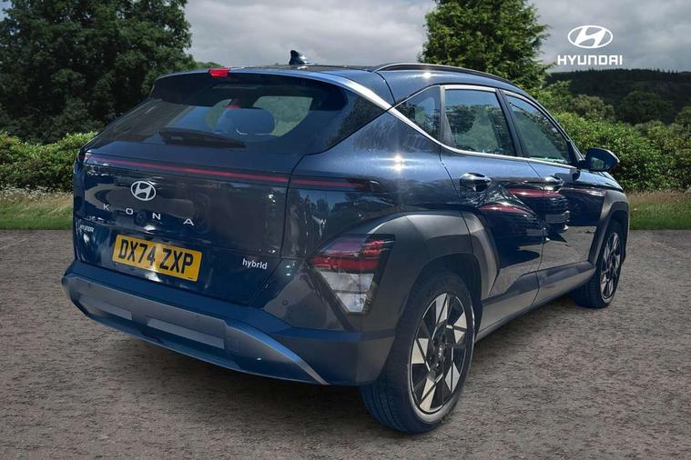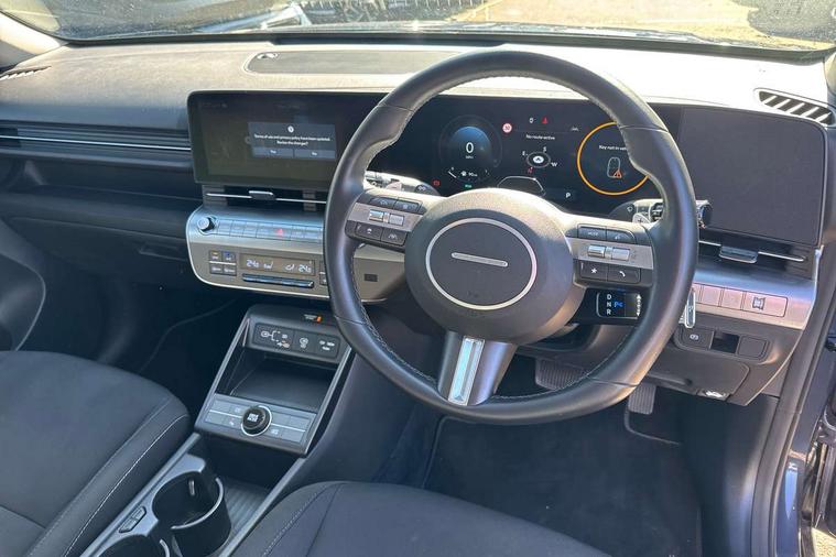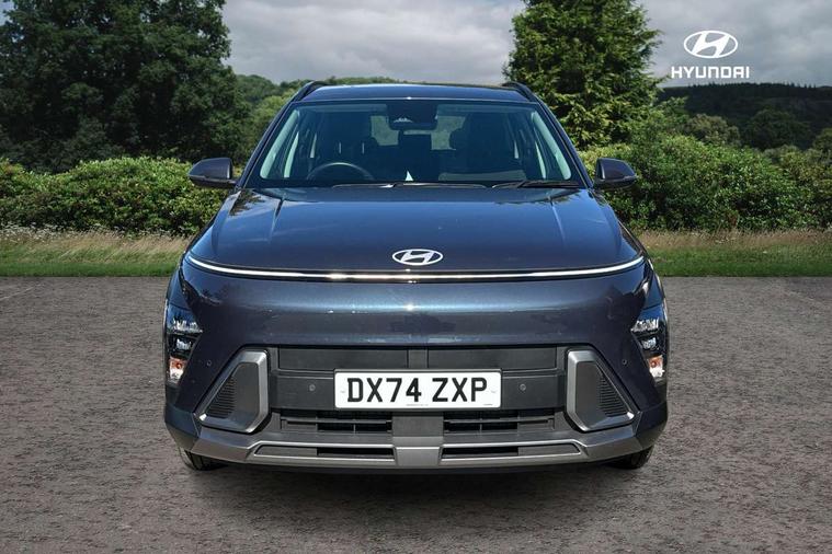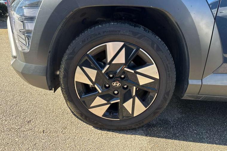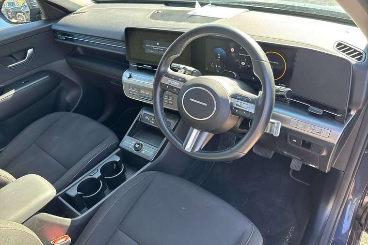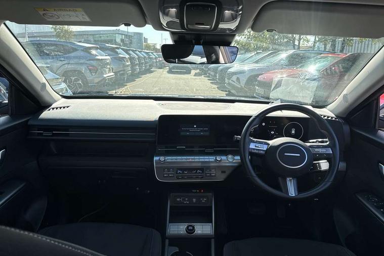 12.25" digital instrument cluster, 12.3" touchscreen centre console display satellite navigation with bluelink, live services and mapcare, Bluetooth connectivity with voice recognition, Driver status monitor (DSM), Driver supervision instrument cluster with 12.3" LCD display, eCall emergency call system, Feature on demand - Enabled, Forward collision avoidance assist (FCA 1.5) - Car, pededstrian, cycle and junction turning, Front parking sensor, HDA - Highway Drive Assist Level 1.5, Intelligent speed limit assist, Lane follow assist, Lane keep assist, Leading vehicle departure alert (LVDA), Parking system with rear camera and guidance system, PAS, Rear parking sensor, Rear view camera with dynamic guidelines, Roadside assistance, Smart cruise control with stop and go functionality, Wireless Smartphone Integration includes Apple CarPlay and Android auto, 2 front USB C and 2 rear USB C charging points, DAB Digital radio, Speakers - Front, rear and tweeters, Steering wheel audio, phone and cruise controls, Auto dimming rear view mirror, Automatic headlights with dusk sensor, Automatic windscreen wipers with rain sensor, Black painted wheel arch inserts, Body colour exterior door handles, Body coloured door mirrors, Door mirror LED indicator lights, Electric front windows with anti-trap mechanism and one touch control, Electric rear windows, Electrically adjustable and heated door mirrors, Full LED MFR headlights, LED daytime running lights, LED taillights, LED upper and lower rear lights, Power folding door mirrors, Rear roof spoiler with integrated LED brake light, Rear side wing doors, Rear skid plate - silver, Rear wiper, Roof rails, Tinted glass in front and rear doors, Windscreen auto defog function, 12V power outlet in front console, 2 zone climate control, 3 seat bench in 2nd row, Adjustable head restraints, Cloth upholstery, Driver and passenger front seat pockets, Driver's seat lumbar support, Driver/passenger manual seat height adjustment, Driver/passenger sunvisors and illuminated vanity mirrors, Floor mats, Height/reach adjustable steering column, Leather steering wheel, LED centre interior light, LED front interior light, Luggage compartment LED lighting, Luggage shelf, Metal paint effect interior door handles, Rear centre armrest with cupholders, Shift by wire SBW, Single front passenger seat, Vertical adjustment rear head restraints, Trailer wiring package - Kona, Airbag - front, front side, curtain and centre front airbag, Anti-lock brake system (ABS), Childproof rear door locks, Downhill brake control, Electric parking brake, Electronic stability control, Fixed 3 point for second row centre passenger seatbelt, Hill start assist control (HAC), Rear seat alert, Tyre pressure monitoring system, Alarm/immobiliser, Rear occupant alert, Remote central locking, Smart key with keyless entry and start/stop button, Five year annual vehicle health checks, 18" Alloy wheels, Temporary mobility kit (TMK),