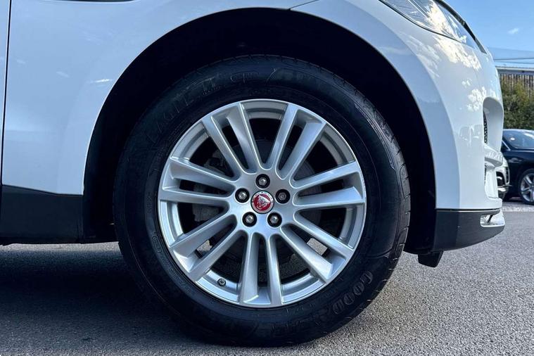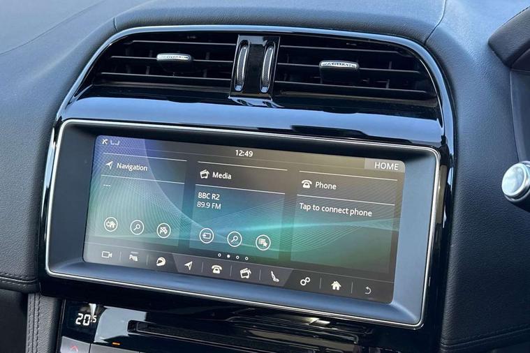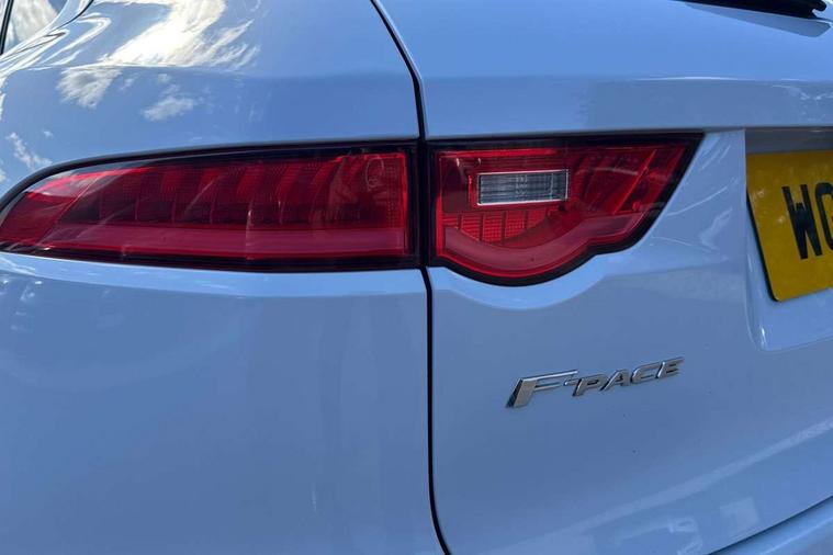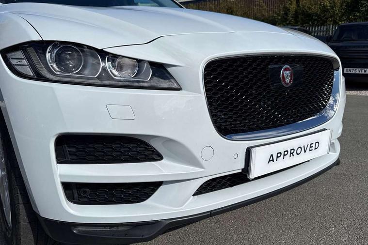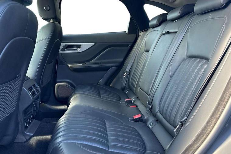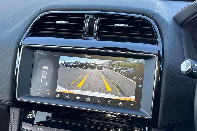 Analogue dials with 7" central TFT display, Android Auto, Apple car play, Driver condition monitor, Eco driving style assistant, Electric power assisted steering, InControl remote premium, JaguarDrive control, Lane departure warning system, Lane keep assist with driver alert control, Outside temperature gauge, Pro services and wifi hotspot, Push button starter, Rotary shifter, Service interval indicator, Speed proportional steering, Start up sequence with movement in dials and lighting, Traffic sign recognition, Trip computer, Voice control system, 8 speed automatic transmission, All terrain progress control, All Wheel Drive (AWD), Open differential with torque vectoring by braking, AM/FM radio, Bluetooth connectivity including audio streaming, DAB Radio (Digital Audio Broadcasting), Dynamic volume control, InControl apps, InControl protect, 3 flash lane change indicators, Antenna roof pod in gloss black, Approach Illumination, Auto dimming rear view mirror, Auto high beam assist, Automatic headlights, Black rear bumper valance, Body colour bumpers, Body colour door mirrors, Body coloured rear bumper with grained black valance, Chrome side power vents, Chrome side window surrounds, Electric front/rear windows with one touch/auto up/down, Front bumper, Grained black door claddings, Green tinted heat insulating glass, Headlight power wash, Heated front windscreen + heated washer jets, Heated rear window with timer, Illuminated metal tread plates with Jaguar script, Jaguar script and leaper, LED tail lights, Non acoustic front windscreen, Rain sensor windscreen wipers, Rear fog lights, Rear metal tread plates, Rear wiper, Single sided twin tailpipes with 75mm finishers, Trailer stability assist, Variable front intermittent wipers, 12V power point front, 3 rear headrests, 40:20:40 split folding rear bench seat, Black gearshift paddles, Centre armrest console, Centre console with side storage, Door sill tread plates, Fold flat front seats, Front centre armrest with storage compartment, Glovebox finisher with jaguar script, Hooks in loadspace, Illuminated glovebox, Illuminated luggage compartment, Interior front door handles with separate locking switches, ISOFIX on outer rear seats, Jaguar sense, Luggage tie downs in loadspace, Luxury seats, Multifunction steering wheel, Overhead lighting console, Passive front head restraints, Perforated Windsor leather upholstery, Premium carpet mats, Rear air vents, Rear armrest with twin cupholders, Rear centre headrest, Reversible boot floor, Soft grain leather sport steering wheel, Sunvisors with illuminated vanity mirrors, Twin front cupholders with cover, 3x3 point rear seatbelts, ABS, All surface progress control (ASPC), Anti-whiplash front headrests, Autonomous emergency braking (AEB) with forward facing camera, Brake pad warning light, Driver/Front Passenger airbags, DSC - Dynamic Stability Control, Electronic parking brake, Front and rear curtain airbags, Front and rear seatbelt reminder, Front passenger seat occupancy sensor, Front side airbags, Hill launch assist, Power operated child locks, Torque vectoring brake, Traction control, Tyre pressure monitoring system, Unpainted brake calipers, Immobiliser, Keyless entry, Keyless Start, Perimeter alarm, Remote central locking, Valet mode, Luxtec door trim, Luxtec wrapped instrument panel topper with wrapped binnacle, Satin chrome centre console storage surround finishers, Satin chrome touchscreen surround,