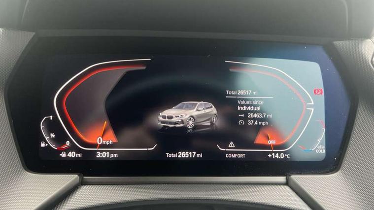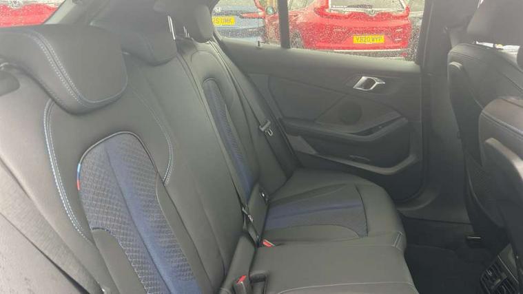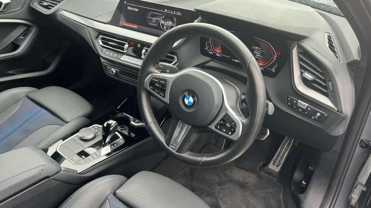 Active guard plus, Attentiveness assist, BMW ConnectedDrive online services, BMW Teleservices, Check Control warning system for monitoring of lights and door/luggage compartment open warning, Cruise control with speed limiter, Eco pro mode, Front axle single joint with specific axle kinematics to minimise drive influences on steering + provide increased rigidity agile driving behaviour, Integrated owners handbook, Lane departure warning system, Oil sensor for level and grade, On board computer, Optimum shift indicator, Personal Profile, Pull away assistant, Rigidly mounted rear subframe - Multi link construction with separate spring / damper configuration and excellent driving characteristics, Speed limit Info including no-overtaking indicator, Aluminium lightweight construction, Anti roll bar front and rear, Balancer shaft, Double VANOS twin scroll turbocharging system, Drive Performance Control, Electronic differential lock, High precision injection, M sport suspension, Petrol Particulate Filter, Twin tube gas filled shock absorbers with degressive characteristic curve, VALVETRONIC engine management, DAB Digital radio, Auto dimming rear view mirror, Automatic headlight beam throw control, Automatic windscreen wipers and automatic headlight, Body colour door handles, Body colour mirror caps, Body colour roof trims, Chrome 'M' logo side designation, Chrome exhaust twin tailpipes round 90mm in left, Chrome kidney grille frame with Satin Aluminium struts, Direction indicator side lights in exterior mirrors, Electrically adjustable exterior mirror with mirror adjustment switch on drivers armrest and aspheric on driver side, convex on passenger side, Fading support, Folding side mirrors with auto dimming/folding wing mirrors with auto dimming, Follow me home headlights, Front and rear bumper system with replaceable deformation elements, Front and rear electric windows with open and close fingertip control, anti trap facility and comfort closing, Front door sill finishers in black plastic with M designation in metallic look, Green tinted heat protection glazing, High gloss shadowline window frame, Recess cover mirror frames and B/C pillar embelisher trim, High level third brake light, Integrated front windscreen with washer jets, LED daytime running lights, LED eyebrow turn indicators, LED front fog lights, Lightweight engineering, Matt black air guide grilles, Matt black wheel arch trim, Model designation on electric bootlid, Nearside reverse light in rear light cluster, Preparation for high beam assistant, Rear fog lights, Rear side wing doors, Rear window wiper, Shark fin antenna, Trailer stabilisation logic, Visible VIN plate, Welcome lighting, 12V power socket in front centre console with blanking plug, 3 rear seat head restraints, 3 seat bench in 2nd row, 3 spoke sports leather steering wheel with black leather and stitching, pearl chrome decorative finish, specific M Badge, Anthracite headlining, Black boot net with lashing eyes, Cargo function on 2nd seat row, Child seat ISOFIX attachment for two outer rear seats and front passenger seat with anchorage points, Conditioned based service, Driver and front passenger backrest net on rear, Driver and front passenger seat heating, Driver side folding compartment in instrument panel, Folding rear clothes hook, Four grab handles integrated in roof lining, Front and rear door pockets with bottle holders, Front and rear side armrest integrated into door trim, Front armrest, Front sports seats, Glove compartment, Height adjustable front head restraints, Luggage compartment for bag hooks on left and right, foldable luggage compartment liner and four lashing eyelets, Manual adjust steering wheel, Multi-function controls for steering wheel, Single front passenger seat, Storage compartment in centre console, Storage compartment in luggage compartment, Stowage of the parcel shelf in luggage compartment trim, Sun visors with vanity mirrors and insert tab, Two front centre console cupholders, Two zone automatic air conditioning, Type C two USB ports in rear centre console, Velour floor mats, Additional interior lighting pack - 1 Series, BMW live cockpit professional pack- 1 Series, Connected pack professional - 1 Series, Interior lights pack - 1 Series, M Sport exterior styling aerodynamics pack - 1 Series, 2 tone horn, 3 point seatbelts on all seats, front pyrotechnic belt tensioners, stopper and belt force limiters, rear coded belt buckles, Airbags - Front driver/passenger, front and rear curtain head protection, front side, manual deactivation of front passenger airbag, Anti lock braking system (ABS) with brake assist, BMW emergency call, Brake drying, Braking readiness, Child proof locking system in rear door, City braking function, Comfort modes, Cornering brake control, Crash sensor activating of airbags, Unlocking doors, hazard warning lights, fuel cut off, interior lighting+activation of safety battery terminal clamp, Driver and front passenger seat belt security check, Dynamic stability control + (DSC+), Dynamic Traction Control - DTC, Electrically operated hand brake including automatic hold function, Front and rear disc brakes, Seatbelt warning, Side impact protection, Tyre pressure monitoring system, Warning triangle and first aid kit, Central locking switch for all doors, fuel filler cap and luggage compartment, Deadlocking function system to all doors, Drive away locking system on all doors and luggage compartment with de-activated in iDrive settings, Locking wheel bolts, Remote control with integrated key with High-gloss Black inlay and M designation and 1 button for open/ close lock, window, open luggage compartment, Start/stop button illuminated in centre console with keyless engine start and auto start stop deactivation button, Thatcham Cat.1 alarm and immobiliser, Wheel slip limitation close to the actuator (ARB), Contrast stitching on instrument panel, 18" Burnished M double spoke bi-colour alloy wheels finished in orbit grey - styl