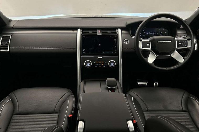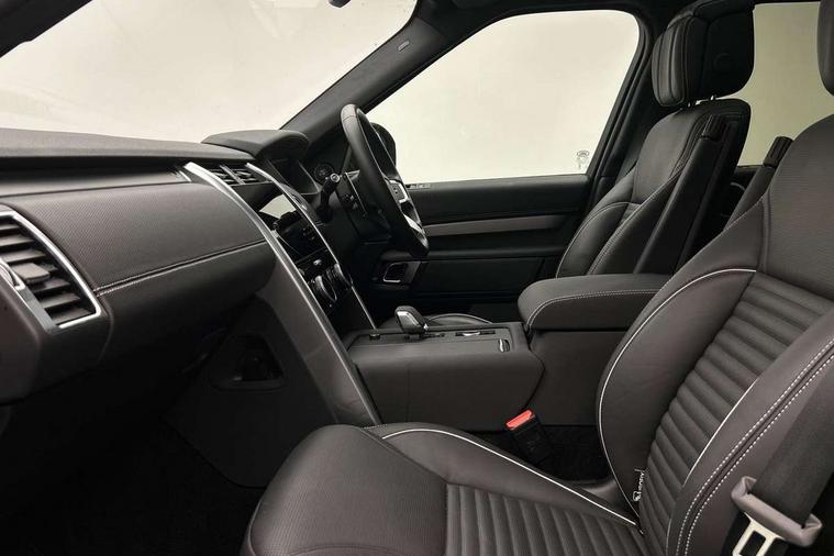 11.4" touchscreen, 3D surround camera, Adaptive cruise control, Android Auto, Apple car play, Blind spot assist, Driver condition monitor, Electric power assisted steering (EPAS), Emergency services call system, Front and rear parking aid, Interactive driver display, Lane keep assist, Power inner tailgate, Power tailgate/boot lid, Push button start, Rear collision monitor, Rear traffic monitor, Remote, Remote boot release, Service interval indicator, Speed proportional steering, Sportshift selector, Stop/start system, Traffic sign recognition with adaptive speed limiter, Trip computer, Wade Sensing, Adaptive dynamics, Dynamic stability control, Electronic air suspension, Front axle open differential, Digital Audio Broadcast radio-DAB, Dynamic volume control, Pivi pro connected, USB/aux input socket, Acoustic laminated windscreen, Animated directional indicators, Auto dimming interior rear view mirror, Automatic headlight levelling, Automatic headlights, Body colour bumpers, Body colour door handles, Centre high mounted stop light, D300 badge, Electric heated/power fold memory door mirrors with approach lights and auto dimming driver side, Electric windows with one touch open/close and anti-trap, Heated rear window, Heated windscreen, LED darkend tail lights, Matrix LED headlights with signature DRL, Narvik black Discovery script, Privacy glass, Puddle lights, Rain sensing windscreen wipers, Rear fog lights, Rear side wing doors, Rear wash/wipe, Trailer stability assist, Variable intermittent wiper, 12V power sockets, 12V USB charging socket in loadspace, 2 seat bench in 3rd row, 3 seat bench in 2nd row, 60/40 electric heated folding rear seats with manual slide and powered recline, centre headrest and armrest, Central hinged twin lidded storage, Configurable cabin lighting, Ebony morzine headlining, Electric adjustable steering column, First and second row door bins, Footwell lights, Front and rear 12V with front USB, Front passenger seat isofix location point, In-facia storage, Isofix child seat preparation for front passenger seat, Leather steering wheel, Loadspace cover, Loadspace Hook, Loadspace light, Lockable glovebox, Lower centre console storage, Luggage tie downs in loadspace, Multi function steering wheel, Overhead lighting console, Premium carpet mats, Rear ISOFIX, Shopping bag hook, Single front passenger seat, Storage glovebox, Sunvisors with illuminated vanity mirrors, Third row storage, Treadplates with metal inserts, Twin front cupholders with cover, USB with 12V socket in centre console, Black exterior pack - Discovery Dynamic SE/HSE, Online pack with data plan - Discovery, 3x3 point rear seatbelts, Anti-lock braking system (ABS), Brake pre-fill technology, Cornering brake control, Curtain airbags, Customer configurable autolock, Driver and passenger airbags, EBD - Electronic brakeforce distribution, Electronic traction control, Emergency brake assist, Emergency braking, ESP, Front side airbags, Gradient acceleration control, Hill descent control, Hill launch assist, Power operated child locks, Rear airbags, Roll stability control, Seat belt reminder, Torque vectoring brake, Tyre pressure monitoring system, Immobiliser, Intrusion sensor, Keyless entry, Locking wheel nuts, Remote central locking, All terrain tyres,