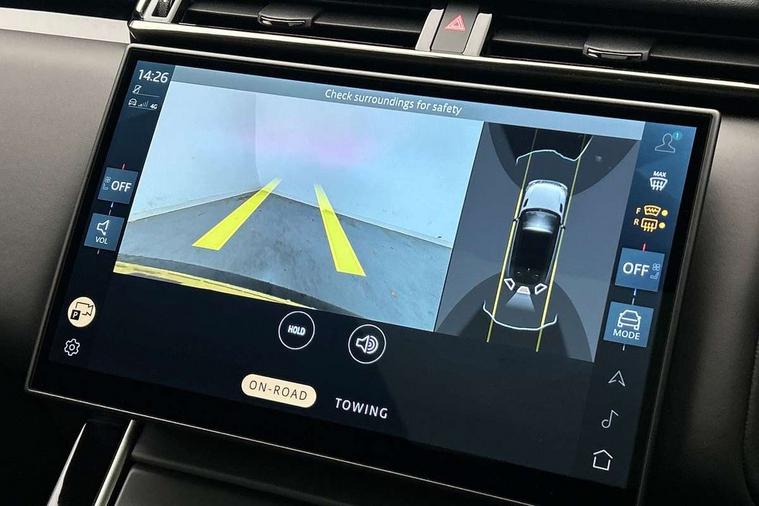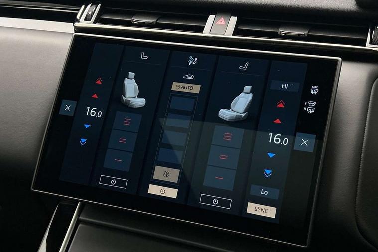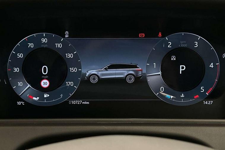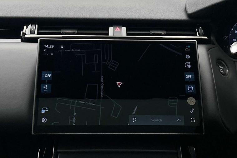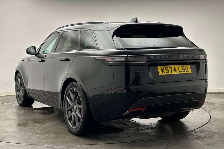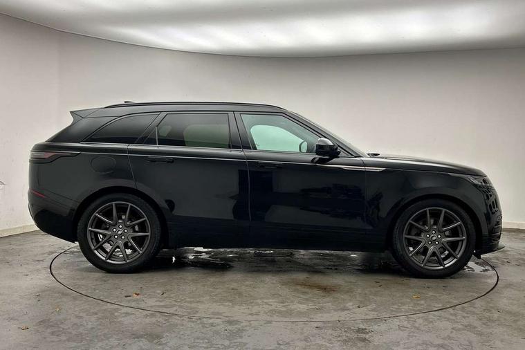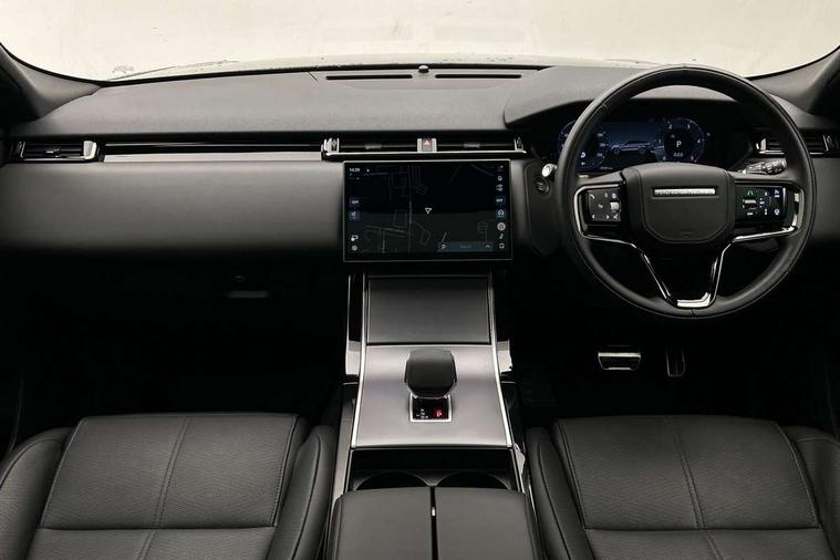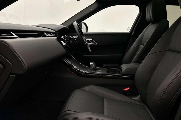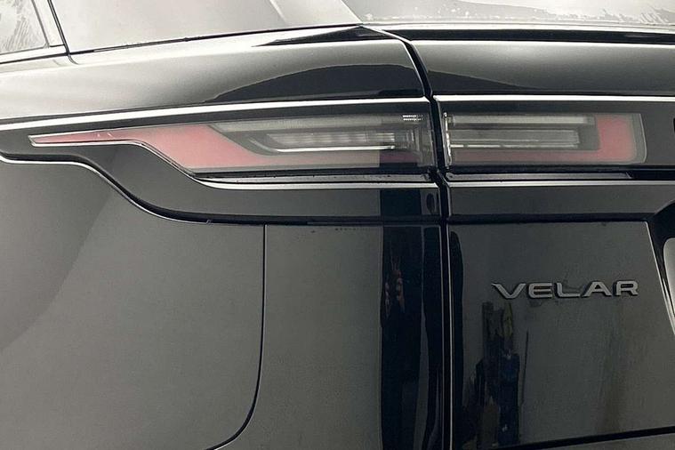 Adaptive cruise control with steering assist, Android Auto, Apple CarPlay, Blind spot assist, Bluetooth connectivity, Brake pad wear indicator warning light, Driver condition monitor, eCall emergency call system, Front and rear parking aid, InControl remote, Land Rover InControl apps, Lane keep assist, Pivi pro with connected navigation, Rear collision monitor, Rear traffic monitor, Service indicator, Speed proportional electronic power assisted steering (EPAS), Traffic sign recognition with adaptive speed limiter, Trip computer, Voice control system, Wireless device charging, 8 speed automatic transmission, Adaptive dynamics, All terrain progress control, Electronic air suspension, Open differential with torque vectoring by braking, Single speed transfer box, DAB radio, Steering wheel mounted controls, 3rd brake light, Acoustic laminated windscreen, Auto dimming interior rear view mirror, Automatic headlamp levelling, Automatic headlights, Body coloured bumpers, Boot protection plate, Electric windows with one touch open/close and anti trap, Flush deployable exterior door handles, Follow me home headlights, Heated rear window with timer, Heated washer jets, Heated windscreen, Metal front tread plates, Metal load space scuff plates, Pixel LED headlights with signature DRL, Power fold, auto-dimming, heated door mirrors with memory and approach lights, Rain sensor windscreen wipers, Rear animated directional indicators, Rear fog lights, Rear side wing doors, Rear wash/wipe, Tailgate/boot lid spoiler, Trailer stability assist, Velar badge, 3 seat bench in 2nd row, Ambient lighting, Bright metal pedals, Carpet mats, Driver/passenger sunvisors with illuminated vanity mirrors, Ebony morzine headlining, Electrically adjustable steering column, Extended leather upgrade, Heated steering wheel, Isofix system on outer rear seats, Loadspace cover, Overhead lighting console, Overhead stowage for sunglasses, Passive front headrests, Rear air vents, Rear centre headrest, Single front passenger seat, Twin front cupholders, Twin sliding front centre armrest, Online pack with data plan - Velar, Power socket pack 2 - Velar, 380mm front brakes and 325mm rear brakes, 3x3 point rear seatbelts, Anti-lock braking system (ABS), Cornering brake control, Curtain airbags, Customer configurable autolock, Door side intrusion beams, Driver airbag, DSC - Dynamic Stability Control, Electronic brake force distribution, Electronic parking brake, Electronic traction control, Emergency braking, Front and rear seatbelt reminder, Hill descent control, Hill launch assist, Low traction launch, Passenger airbag, Power operated child locks, Rear airbags, Roll stability control, Side airbags, Tyre pressure monitoring system (TPMS), Global lock and unlock switch on driver door, Immobiliser, Intrusion sensor, Keyless entry, Lock only switch on front passenger door, Locking wheel nuts, Perimetric alarm, Remote central locking, All season tyres,