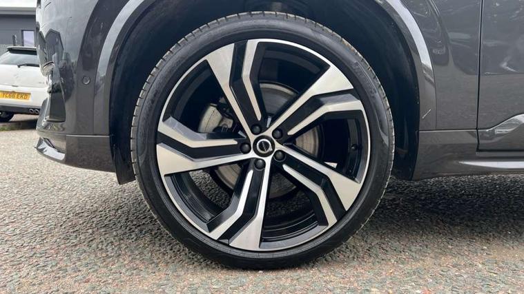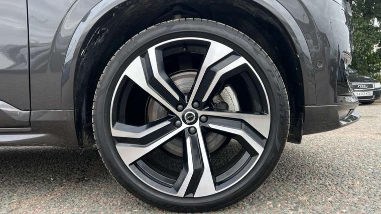 12.3" Progressive Driver Display, 360 degree surround view parking camera with side proximity sensors, 9" centre console portrait touch screen, Adjustable steering wheel force, Bluetooth hands free telephone connection, Driver alert control with lane keeping aid, Driver assistance (pilot assist and adaptive cruise control), Driver awareness - Blind spot information system with steer assist, cross traffic alert with autobrake and rear collision warning and mitigation, Emergency call service, Front and rear park assist, Google Automotive Services - Navigation with Voice recoginition and google assistant, Handsfree power tailgate opening and closing, Oncoming Lane Mitigation, Power operated tailgate, Service interval indicator, Speed limiter, Speed sensitive steering, Trip computer, Volvo on call, Wireless Mobile Phone Charger, 8 speed automatic transmission with start/stop + manual change functions, Active four C chassis - four corner adaptive dampers with electronic air suspension, DAB Radio (Digital Audio Broadcasting), Premium Sound by Bowers and Wilkins, dirac live, dolby pro logic II surround sound, 18 speakers/1400W output and fresh air subwoofer, Steering wheel remote infotainment controls, Active bending headlights with adaptive shadow technology, Adaptive brake lights with high level LED brake lights, Auto dimming interior + exterior mirrors, Auto folding and heated power door mirrors, Automatic headlight levelling system, Automatic LED Headlights + Active high beam incorporating daytime running lights, Body colour bumpers, Dark tinted windows - rear side windows and rear screen, Front and rear power windows, Headlight cleaning system, High gloss black door mirrors and window surround, High gloss black front and rear bumper deco, High gloss black mesh front grille with surround, Home safe and approach lighting, Integrated roof rails in high gloss black, LED front fog lights with cornering light function, Power glass tilt and slide panoramic sunroof with sun curtain, Puddle lights, Rain sensor with automatic windscreen wiper activation, Rear side wing doors, Rear wash/wipe with intermittent wipe setting, Roof antenna, Roof spoiler, Visible VIN plate, 12V socket front tunnel console, rear passenger compartment and cargo area, 2 seat bench in 3rd row, 2nd Row centre armrest with and cupholders, 3 seat bench in 2nd row, 4 zone electronic climate control with Clean zone air quality system + pollen filter, A-pillar parking ticket holder, Advanced interior air cleaner PM2.5, Air conditioning for 3rd row of seats, Ambient door and instrument panel lighting, B Pillar ventilation, Bright metal luggage threshold, Centre console cupholders and storage, Floor mats, Front and rear door pocket and front cupholder illumination, Front and rear reading lights, Theatre lighting and centre armrest storage illumination, Front footwell and side step illumination, Front headrests, Front seat cushion extensions, Heated front seats, Heated rear seats, Heated steering wheel, Height/reach adjustable steering column, Illuminated front and rear tread plates, Illuminated luggage compartment, Illuminated tailgate, Illuminated vanity mirrors + ticket holder, Illumination lockable glovebox compartment, Integrated sun curtains in rear doors, Isofix outer rear child seat preparation in 2nd row, Load protection net, Luggage compartment divider with grocery bag holder, Outboard armrest with cupholder and storage for third row passengers, Power driver seat with multi directional lumbar support and memory for seat and exterior mirrors, Power folding 2nd row headrests, Power passenger seat with multi directional lumbar support and memory, Rear footwell and side step illumination, Rear headrests, Semi automatic load cover, Single front passenger seat, Underfloor luggage compartment storage, 7 three point seatbelts, City safety with steering support includes pedestrian, cyclist and large animal detection and front collision warning with full auto brake, Drivers knee airbag, Dual stage driver/passenger airbags, First aid kit, Front seats SIPS airbags, Hill descent control - off drive mode, Hill start assist, IC (Inflatable Curtains) - Full Length, Passenger airbag cut-off switch, Power child locks on rear doors, Power parking brake with auto hold function, Road sign information display, Run off Road Mitigation, Run off Road Protection, Seatbelt reminder and pretensioners for all seats, SIPS (Side Impact Protection System), Slippery road and hazard light alert, Stability and Traction Control with Spin control, Engine Drag Control and Corner Traction Control, Tyre pressure monitoring system, Vehicle deceleration control with Anti-lock Brake System, Electronic Brake Distribution and Emergency Brake Assist, Warning triangle, WHIPS whiplash protection system - front, Anti-theft alarm including immobiliser/volume sensor + level sensor, Care key with user defined top speed, Key integrated remote control central locking + fuel flap with deadlocking system and auto open/close power windows, Keyless drive includes keyless entry and keyless start, Locking wheel nuts, Private locking for glovebox and tailgate, Tailored Instrument Panel and Door Tops with Contrast Stitching, Tempa spare wheel and jack,