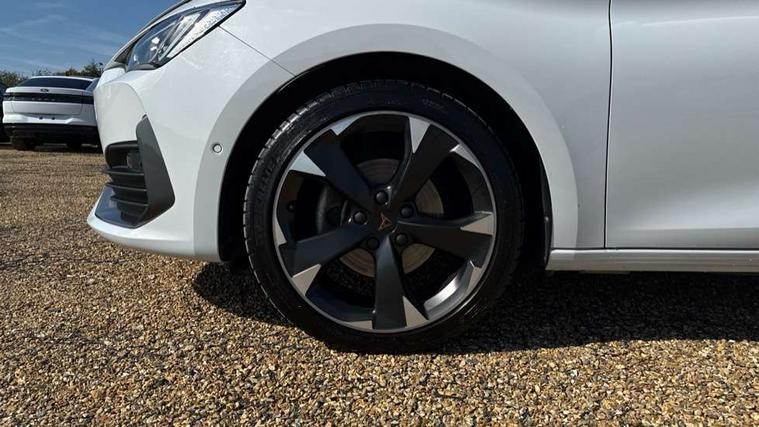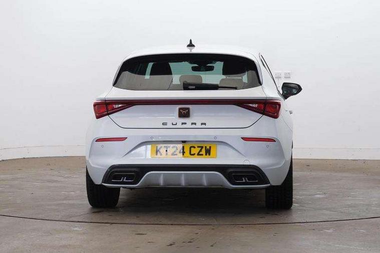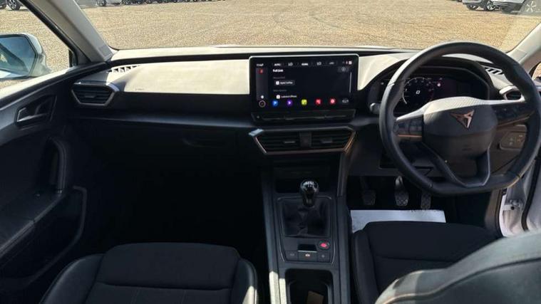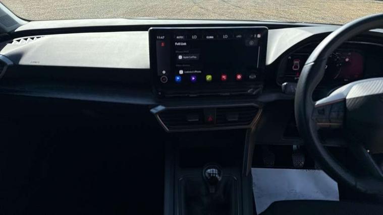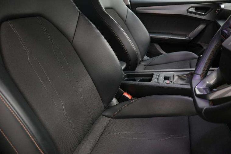 CUPRA drive profile selection with (Comfort/Sport/Individual), throttle response and gearshift mode, Digital cockpit, E-call, Electro mechanical speed sensitive power steering, Four x USB Type C ports (2 in front and 2 in rear), Front assist with forward collision warning braking reaction to vehicles, pedestrians and cyclists, Full link smartphone integration with Mirror Link, wireless Apple CarPlay and wired Google Android Auto, Lane assist, Lockable tailgate, Park assist (inc front/rear parking sensors), Rear view camera, RPM, trip computer, outside temp gauge, instrument light brightness, low fuel warning light, lights on reminder, gearshift indicator, Service interval indicator, Start/stop system with regenerative braking, Wireless phone charger, Sports suspension, Auxiliary input socket, Auto dimming rear view mirror, Body colour door handles, Body coloured bumpers, Cupra sports bumpers, Dark tinted rear windows, Electric front/rear windows, Electrically adjustable, heated and folding door mirrors, LED front fog lamps with cornering function, LED headlights with dynamic turn signals, tail lights, rear fog lights with rear coast to coast lighting, Rain sensing wipers, Rear diffuser with twin exhaust pipe on each side, Rear side wing doors, Rear wash/wipe, Separate daytime running light with automatic headlight control and coming home feature, Third brake light, 12v power supply in centre console, 3 seat bench in 2nd row, 5 headrests, 60/40 split rear bench seat with armrest, Ambient lighting with glovebox, footwell and single monocolour, Cupra Leather flat bottomed, perforated steering wheel, Driver/passenger manual seat height adjustment, Folding boot cover, Front and rear reading lights X 4, Front centre armrest, Front seats manual lumbar adjustment, Grey headlining, Height/reach adjust steering wheel, Illuminated interior front door sills, ISOFIX points in outer rear seats with top tether anchorage points, Jack and tool kit, PVC/Cloth upholstery with copper stitching, Single front passenger seat, Sports seats, Sunvisors with illuminated mirror, Three zone climate control, Media system plus with navigation pack - Leon Cupra, Safety and driving pack (M) - Cupra leon, 3 point seatbelts on all rear seats, ABS, Brake control system - ESC and brake booster, Child proof door locks, Cupra black brake calipers, Driver and front passenger airbags with front passenger airbag de-activation, front side and curtain airbags, Electronic parking brake, Extended safety system - seat belt tensioner, window closure and hazard lights, Hill hold control, Rear disc brakes, Seat belt reminder for front and rear seats, Tiredness recognition system, Tyre pressure monitoring system, Anti theft alarm system with interior monitoring in cab, backup horn and towing protection, KESSY Advanced - Keyless start, keyless entry, Locking wheel bolts, Chrome and copper interior detailing, 18" Machined sport black and silver alloy wheels with 92Y tyres,