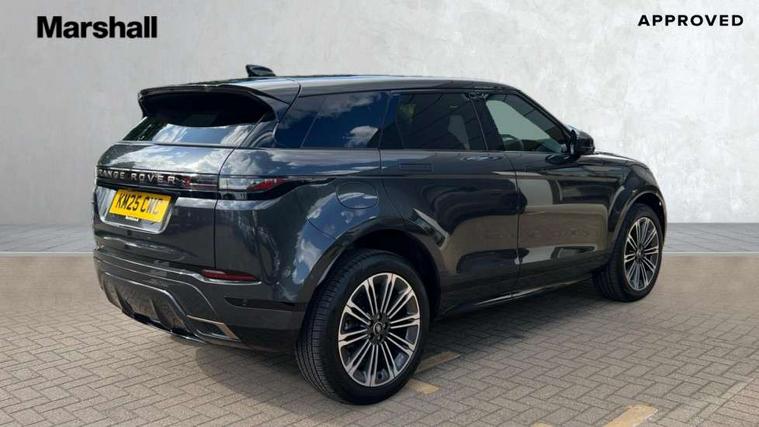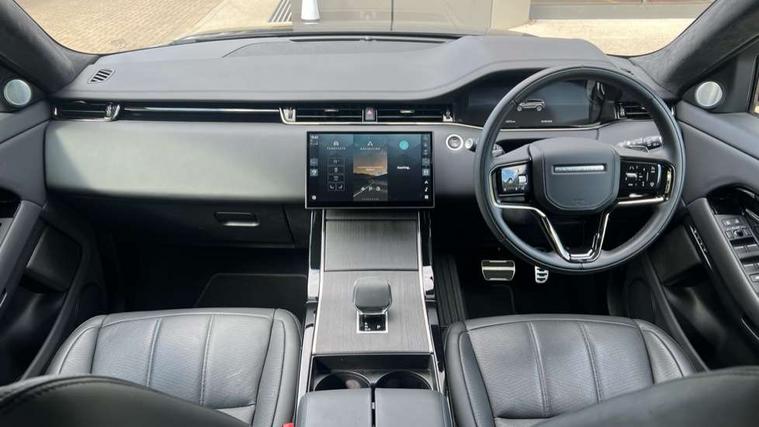 11.4" touch screen, 3D 360 degree surround camera with wade sensing, Adaptive cruise control, Android Auto, Apple car play, Blind spot assist, Bluetooth connectivity, Brake pad wear indicator warning light, Driver condition monitor, eCall emergency system, Eco mode, Electronic power assisted steering (EPAS), Front and rear parking aid, InControl remote, Interactive driver display, Land Rover InControl apps, Lane keep assist, Pivi pro connected includes diamond pivi variant, smart settings, connected navigation pro, nuance speech licence, Powered tailgate/boot lid, Rear collision monitor, Rear traffic monitor, Tailgate, Traffic sign recognition with adaptive speed limiter, Voice control system, Wireless device charging, All terrain progress control, Diesel exhaust fluid (DEF) large tank, Efficient Driveline, Large fuel tank, Terrain Response 2, Digital Audio Broadcast radio-DAB, Meridian surround sound system with 650W subwoofer and 14 speakers, Steering wheel mounted controls, Acoustic laminated windscreen, Auto headlights, Automatic headlight levelling, ClearSight interior rear view mirror, Electric windows with one touch open/close and anti trap, Flush deployable exterior door handles, Front and rear recovery eyes, Heated rear window with timer, Heated washer jets, Heated windscreen, Pixel LED headlights with signature DRL and LED tail Lights, Power fold, auto-dimming, heated door mirrors with approach lights and auto dimming driver side, Rain sensing windscreen wipers, Rear animated directional indicators, Rear fog lights, Rear side wing doors, Rear wiper, Side repeater indicators in mirror, Sliding panoramic roof with powered sunblind, Tailgate spoiler, Third brake light, Winter wiper park position, 14 way driver memory electric front seats with 2 way manual headrests + 4 way lumbar support, bolsters, 40:20:40 split folding rear seats with centre headrest and armrest, Ambient interior lighting, Bright metal pedals, Carpet mats, Customer configurable single point entry, Electrically adjustable steering column with memory function and easy entry/exit, Front and rear cupholders, Heated steering wheel, Isofix system on outer rear seats, Overhead lighting console, Overhead stowage for sunglasses, Passive front head restraints, Rear air vents, Rear head restraints, Satin chrome gearshift paddles, Single passenger seat, Sunvisors with illuminated vanity mirrors, Twin sliding front centre armrest, Power socket pack 2 - Evoque, 3 rear 3 point seatbelts, Anti-lock braking system (ABS), Brake hold function, Customer configurable autolock, DSC - Dynamic Stability Control, Electronic brake force distribution, Electronic parking brake, Electronic traction control, Emergency braking, Front and rear seatbelt reminder, Hill descent control, Hill launch assist, Low traction launch, Occupant protection assist, Passenger seat occupant detector, Power operated child locks, Roll stability control, Six airbags - Driver and passenger airbags/driver knee airbag/front side airbag and curtain airbags, Torque vectoring brake, Tyre pressure monitoring system, Alarm, Immobiliser, Intrusion sensor, Keyless entry, Locking wheel nuts, All season tyres,