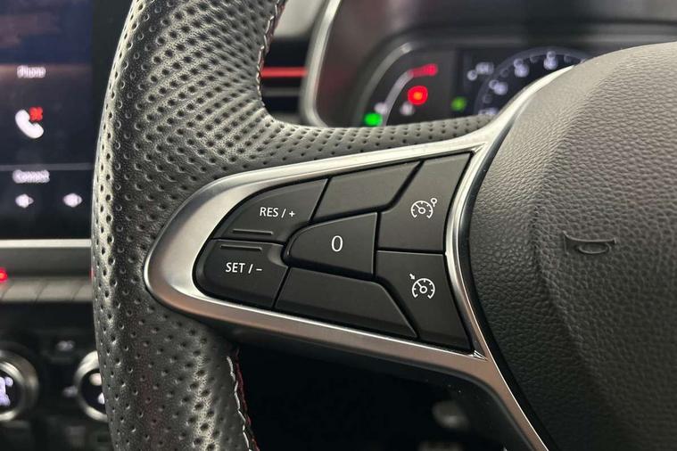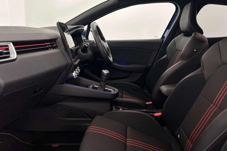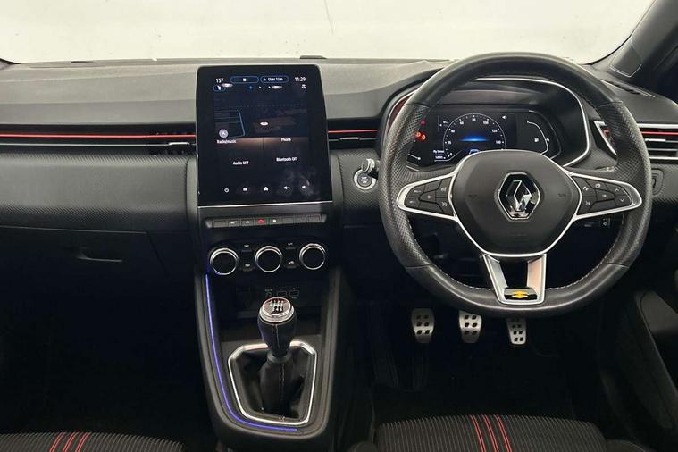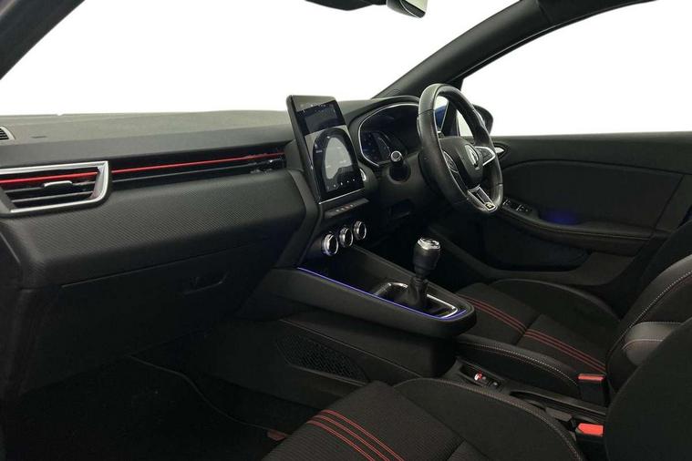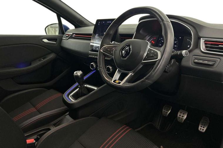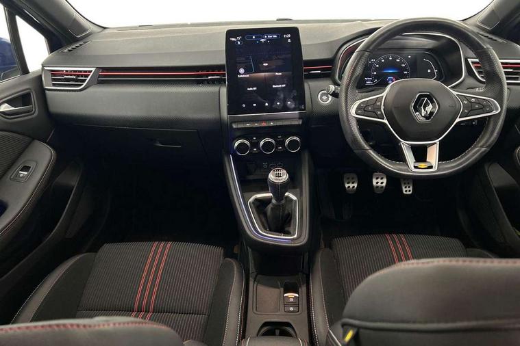 7" TFT colour instrumental display, Cruise control + speed limiter, E-call, Easy link navigation with 9.3" touchscreen+4x20W amplifier+FM DAB double tuner, sound auditorium, 2xUSB/1xjack/bluetooth, smartphone integration plus, Eco mode driving function, Gear change indicator, Lane departure warning system, Lane keep assist, Over speed prevention, Rear parking sensors, Rear view camera, Traffic sign recognition, Trip computer, Variable assistance electric PAS, Auto dimming rear view mirror, Auto light control and rain sensing wiper, Automatic headlights, Body colour door handles, Body colour door mirrors, Body coloured bumpers, Body coloured rear spoiler, Chrome front grille, Chrome window surround, Drivers one touch window with anti-pinch feature, Electric adjustable/heated/folding door mirrors, Electric front windows, Electric rear windows, Exterior rear hidden door handles, Extra tinted glass on rear windows + tailgate, Full C-shape LED front and rear signature lighting, Full LED front and rear headlamps integrating daytime running lights at the front and rear, Gun Metal insert on lower side doors with Clio embossing, LED front fog lights, LED Roof light, Rear fog lights, Rear side wing doors, Rear wiper, RS Line badging, RS Line exterior styling, RS Line side marker chrome, RS Line sports front bumper, RS Line sports lower grill, RS marker chrome gun metal grey sport rear bumper with chrome oval exhaust pipe, Shark fin antenna, Third brake light, Variable speed on front windscreen wipers, 12V Accessory socket, 3 rear height adjustable headrests, 3 seat bench in 2nd row, 6.2L front glovebox, 60/40 split rear seats, Air recirculation control, Auto climate control, Black headlining, Dark roof lining and aluminimum pedal set, Driver's seat height adjustment, Front cupholders, Front decor strip in red, Front door storage bin, Height adjustable front headrests, Height adjustable passenger seat, Height/reach adjust steering wheel, Isofix system on outer rear seats, Multi function steering wheel, Multisense including ambient lighting and selectable drive modes, Pollen filter, RS branded top grain leather steering wheel, RS Line cloth upholstery, RS Line Interior trim including airvent stripe and gearshifter in red, Single front passenger seat, System for Restraint and Protection SRP-front seats, Parking Pack - Clio, Storage pack - Clio, 3 point seatbelts on all rear seats, ABS+EBD+Brake assist, Active emergency braking system, Curtain airbags, Distance warning alert, Driver and passenger front and side airbag deactivation, Driver/Front Passenger airbags, Electronic parking brake with auto hold, ESC - Electronic Stability Control + traction control, Front side airbags(head+thorax), Height adjustable driver's seatbelt, Hill start assist, Seatbelt warning, Tyre pressure warning, Central door locking, Deadlocking system, Hands free key card with push button, start and stop function, Locking fuel filler cap, RAID (Renault Anti-Intruder Device) with automatic door locking, Rear side wing door and window child locking function (front driver door control panel), Remote central locking with thatcham approved immobiliser, Grey dashboard trim, 17" RS diamond cut alloy wheels,
