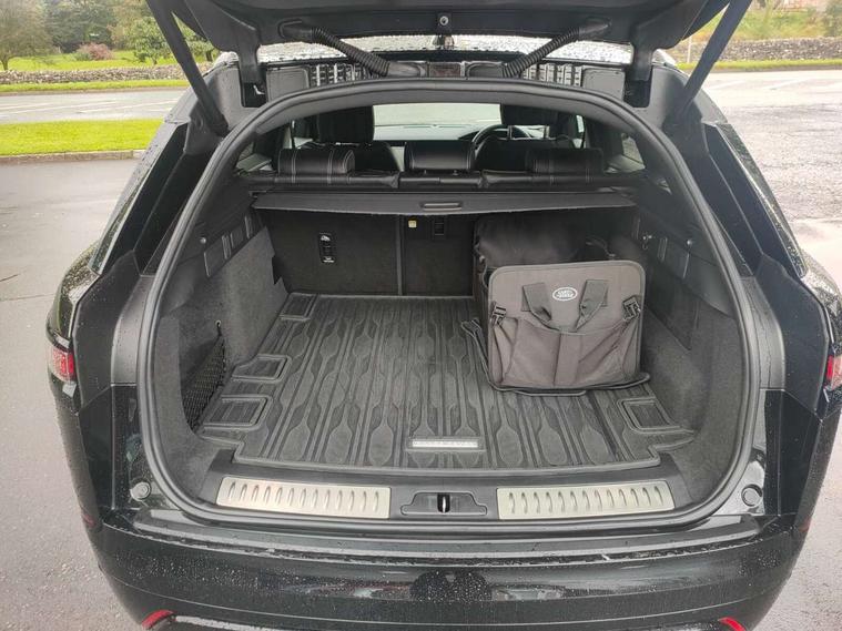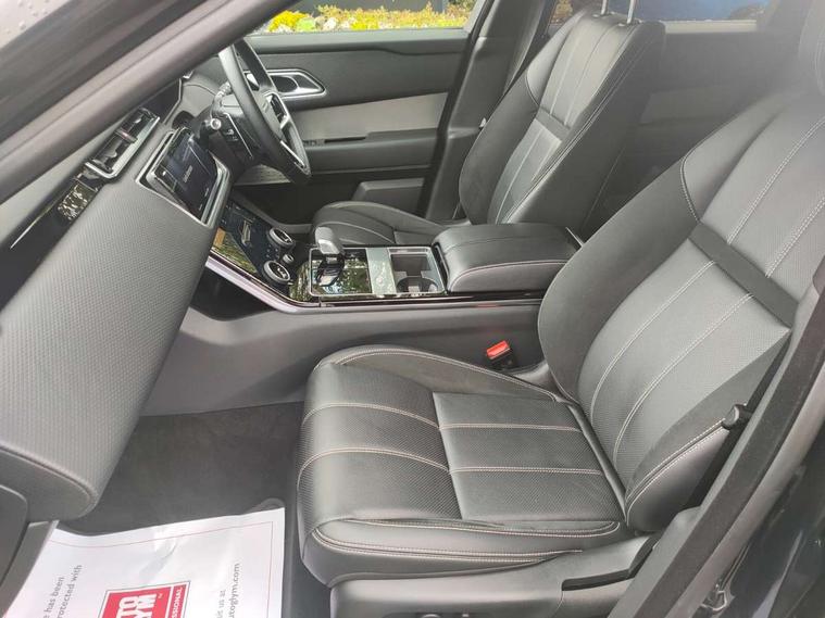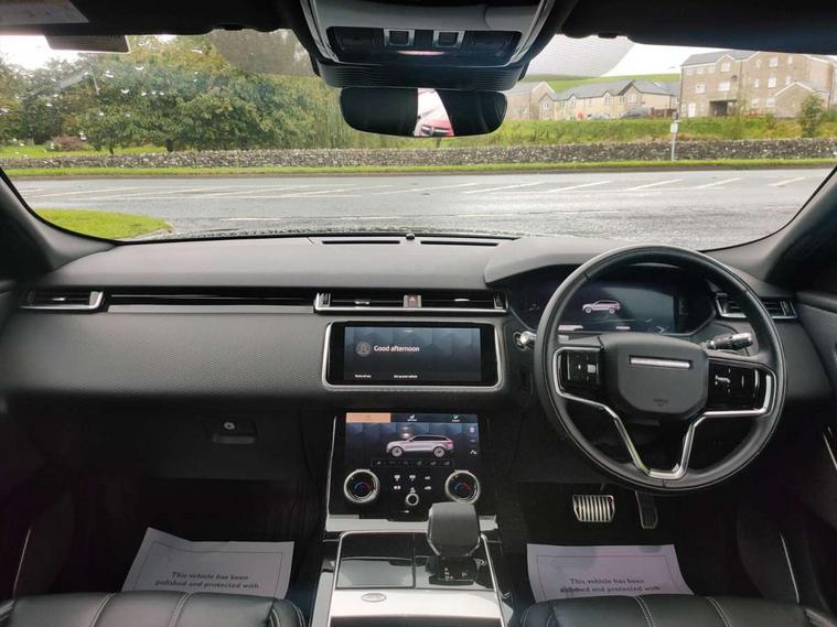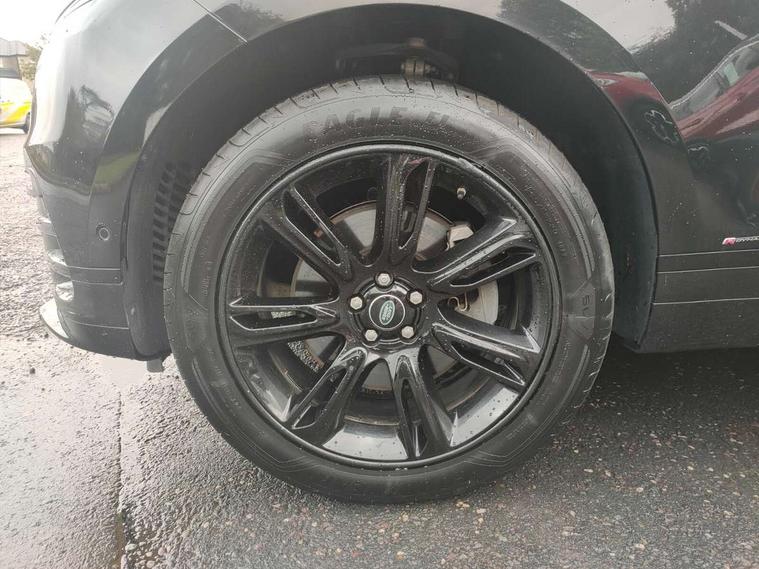 10" touch screen, 3D Surround camera includes, clear sight ground view, 360 parking aid and wade sensing, Android Auto, Apple car play, Blind spot assist, Bluetooth connectivity, Brake pad wear indicator warning light, Driver condition monitor, InControl remote, Interactive Driver display instrument cluster, Land Rover InControl apps, Lane keep assist, Pivi pro connected includes upgraded infotainment, smart settings, connected navigation pro, Nuance speech licence, Powered gesture tailgate/boot lid, Push button start, Rear traffic monitor, Service indicator, Speed proportional electronic power assisted steering (EPAS), Traffic sign recognition with adaptive speed limiter, Trip computer, Voice control system, Wade Sensing, 8 speed automatic transmission, Open differential with torque vectoring by braking, Single speed transfer box, Digital Audio Broadcast radio-DAB, Steering wheel mounted controls, Acoustic laminated windscreen, Adaptive front lighting system, Auto dimming interior rear view mirror, Automatic headlamp levelling, Automatic headlights, Body coloured bumpers, Boot protection plate, Electric heated/power fold door mirrors with approach lights and auto dimming driver side, Electric windows with one touch open/close and anti trap, Flush deployable exterior door handles, Follow me home headlights, Front fog lights, Heated rear window with timer, Heated windscreen + heated windscreen washer jets, Metal load space scuff plates, Metallic paint, Privacy glass, Rain sensor windscreen wipers, Rear fog lights, Rear wash/wipe, SE badge, Sliding panoramic sunroof with auto blind function, Tailgate/boot lid spoiler, Trailer stability assist, Velar and R-dynamic badge, 40:20:40 split folding rear seats, Ambient lighting, Bright metal pedals, Driver/passenger sunvisors with illuminated vanity mirrors, Heated steering wheel, Isofix system on outer rear seats, Loadspace cover, Overhead lighting console, Overhead stowage for sunglasses, Passive front headrests, Rear air vents, Rear centre headrest, Satin chrome gearshift paddles, Standard interior, Twin front cupholders, Twin sliding front centre armrest, Online pack with data plan - Velar, R-Dynamic black pack - Velar, 355mm front brakes and 325mm rear brakes, 3x3 point rear seatbelts, Anti-lock braking system (ABS), Cornering brake control, Curtain airbags, Customer configurable autolock, Door side intrusion beams, Driver airbag, DSC - Dynamic Stability Control, Electronic brake force distribution, Electronic parking brake, Electronic traction control, Emergency brake assist, Emergency braking, Front and rear seatbelt reminder, Hill descent control, Hill launch assist, Low traction launch, Passenger airbag, Power operated child locks, Rear airbags, Roll stability control, Side airbags, Tyre pressure monitoring system, Unpainted brake calipers, Global lock and unlock switch on driver door, Immobiliser, Intrusion sensor, Keyless entry, Lock only switch on front passenger door, Locking wheel nuts, Perimetric alarm, Remote central locking, 20" 7 spoke alloy wheels with gloss black finish - Style 7014,