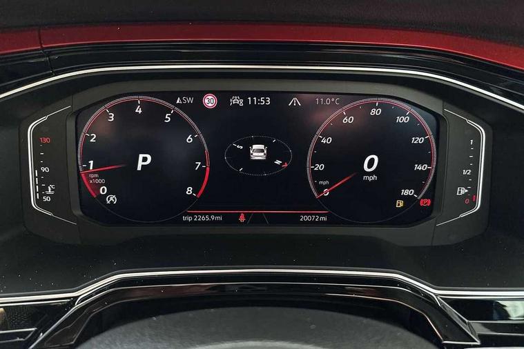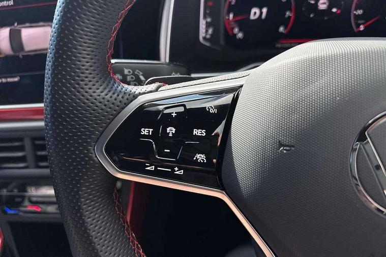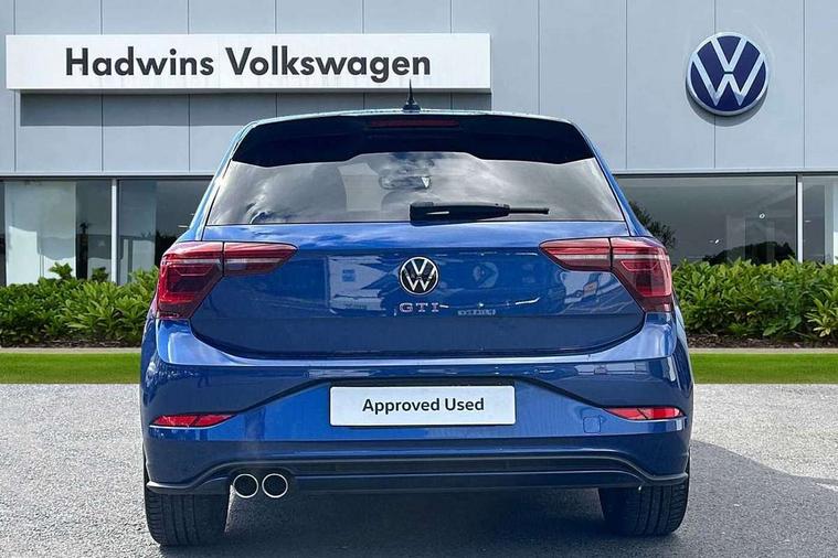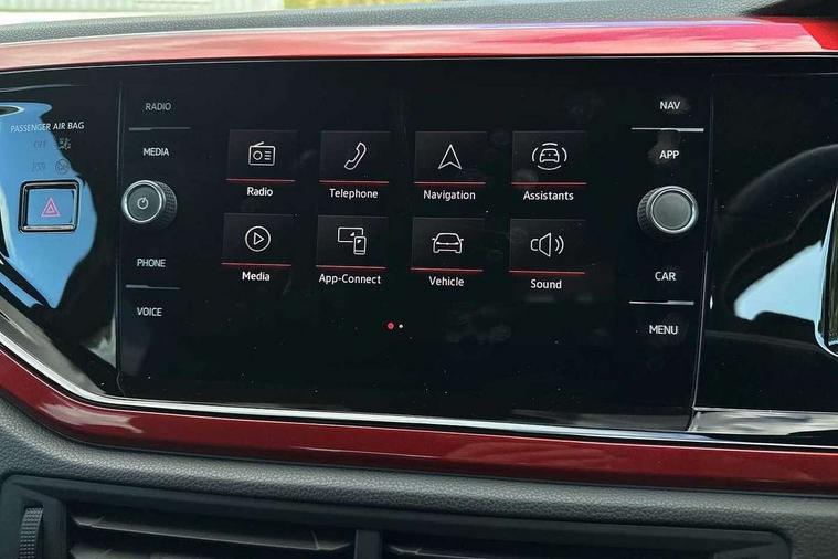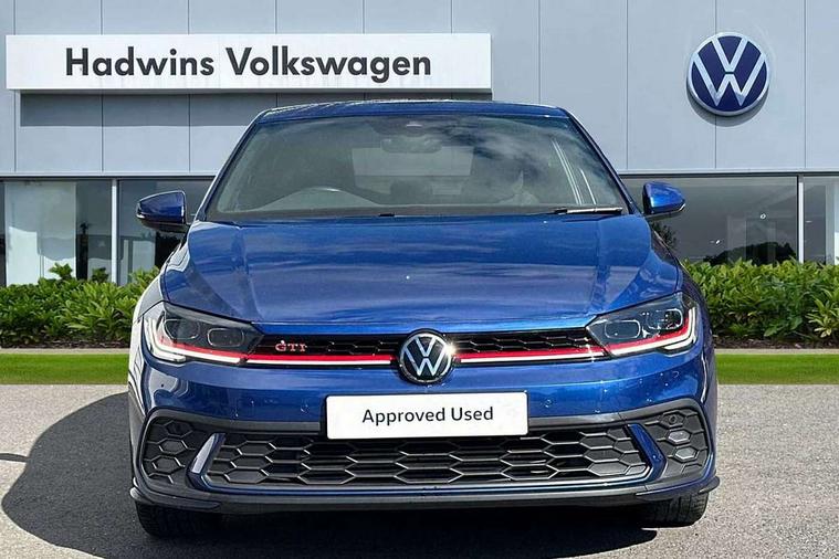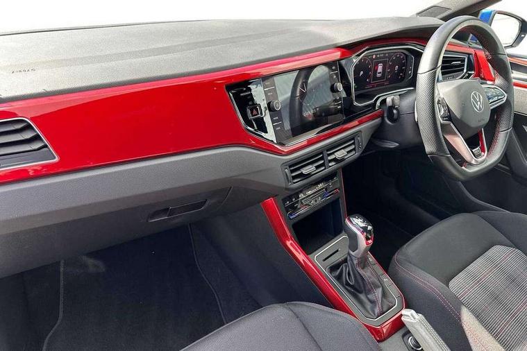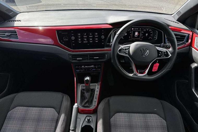 Adaptive cruise control with follow-to-stop and speed limiter, Bluetooth mobile phone interface, Digital Cockpit Pro with 10.25" Display, Driver alert system, Dynamic road sign display, Eco mode, Emergency call service, Power assisted speed sensitive steering, Preparation for We connect and We connect plus, Speedo and rev counter, electronic odometer, trip, service interval display and fuel gauge, Travel Assist - Lane keeping system and traffic jam assist, Travel assist including emergency assist, Trip computer, Warning signal and warning light for front and rear seatbelts not fastened, Washer fluid level indicator, Wireless app connect, Adaptive chassis control, Front wheel drive, Heavy duty rear axle, Rear shock absorpion sports version, Sports select suspension lowered by 15mm, Start-stop system with battery regeneration (recuperation - energy recovery during braking), DAB Digital radio, Diversity antenna for FM reception, Front and rear 6 speakers, Body colour bumpers, Body colour door handles, Electric front windows, Front scuff plates in aluminium with GTI logo, Heat insulating darkened glass in side and rear windows, Heat insulating glass windscreen, Power folding adjustable/heated exterior mirrors and front passenger exterior mirror lowering function, Rear electric windows, Rear fog light, Rear side wing doors, Rear windscreen washer and wiper with interval delay, Sport bumpers with air intakes with honeycomb structure, Third brake light, Twin chrome exhaust tailpipes, 12V power socket in centre console, 2 USB-C ports in the front, 2 USB-C charging sockets on the center console in the rear, 3 rear head restraints, 60/40 split folding rear seat and rear seat bench not split, Air care climatronic air conditoning system with active combination filter and 2-zone temperature control, Black roof lining, Chrome plated radiator grille inserts, air vent surrounds and light switch surrounds, Door and side trim panel, Driver and front passenger seat height adjustment, Driver/passenger sunvisors with illuminated vanity mirrors, Front + rear carpet mats in recycled material, Front centre armrest, Front footwell illumination, Front seat backrest storage pockets, GTI sports gearshift knob in aluminium leather, Handbrake lever handle in leather, Headliner in recycled material, Isofix child seat preparation easy-fit (for two outer rear seats, and front passenger seat) compatible with I-size, LED interior light with switch off delay and dimmer, 2 reading lights front and rear, Luggage compartment cover, Luggage compartment floor, Luggage compartment lighting, Single front passenger seat, Stainless steel pedals, Standard pedal cluster, Three spoke leather wrapped multifunction sports steering wheel with shifting paddles, IQ LED matrix headlights pack - Polo, Light and sight pack - Polo GTI, Sports suspension pack - Polo, 3 point height adj front seatbelts + pretensioners, 3x3 point rear seatbelts, ABS, Driver and front passenger airbag with front passenger airbag deactivation, Drivers and front passengers safety optimised head restraints, ESC (Electronic stability control) + EDL (Electronic Differntial lock) and ASR (Traction control), Extended and predictive pedestrian/ cyclist protection, Front and rear disc brakes with red brake calipers, Front curtain and side airbags with center airbag, Hill hold control, Manual child lock in rear doors, Two tone horn, Tyre pressure loss indicator, Alarm with interior protection, Anti-theft alarm system with interior monitoring, backup horn, and towing protection, Anti-theft wheel bolts, Electronic engine immobiliser, Chrome applications on rotary light, mirror adjustment, window regulator switches, outlet with frame in black, Low rolling resistance tyres,