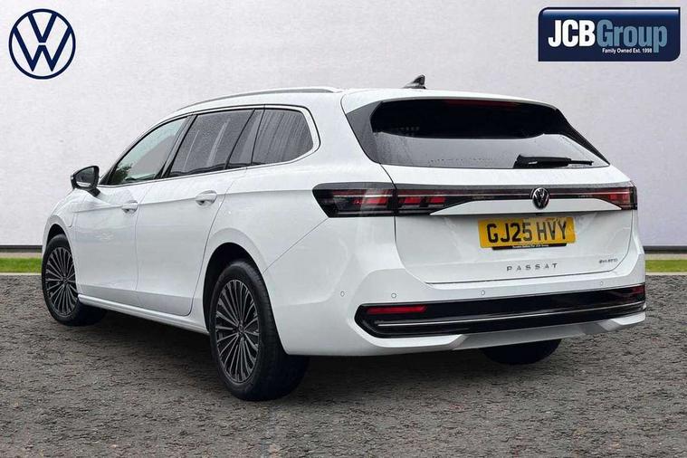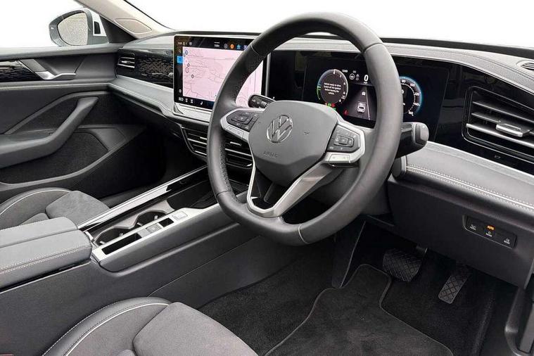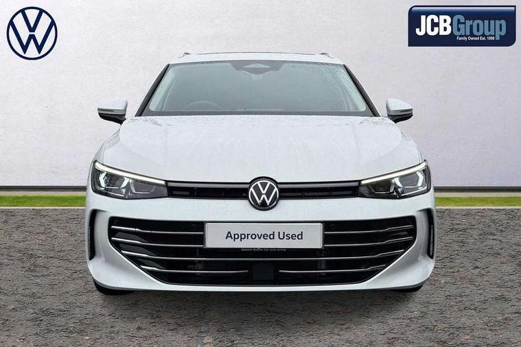 2 x Front USB-C ports, 2 x USB-C charging sockets on the centre console in the rear, charging capacity up to 45W, Adaptive cruise control, Advanced driver attention and drowsiness monitor, Chat GPT function for IDA voice assistant, Digital cockpit pro 10.25" high resolution, Discover media navigation system includes streaming and internet, Dynamic road sign display, E-Sim card for online connectivity, eCall emergency call service, Electronic engine sound, Full electric tailgate operation, Inductive smartphone charging without external antenna connection, Memory feature for park assist, Oncoming vehicle braking when turning including swerve support, Park assist pro with park distance control (Remote park assist), Predictive speed limiter, Preparation for We connect and We connect plus, Wireless app connect, Battery 340 A (58 Ah), Front wheel drive, Petrol Particulate Filter, 8 Speakers, Auto dimming interior rear view mirror, Automatic headlights, Body colour bumpers, Body colour door handles, Electric panoramic sunroof, tilting and sliding panoramic sunroof with rear panoramic sunroof, Heated windscreen washer jets, Laminated safety glass windshield, heat and sound insulating, LED third brake light, Rain sensor, Rear side wing doors, Rear wiper, Welcome light with surround lighting, 3 seat bench in 2nd row, 3 zone air care climatronic with rear air conditioning control panel, 30 colours options interior ambient lighting, Front + rear carpet mats, Front head restraints, Front sports comfort seats, Isofix child seat preparation, easy-fit (for two outer rear seats, and front passenger seat), compatible with I-size, Leather-wrapped, heated and multi-function steering wheel with shift paddles, Luggage compartment cover, power operated, Rear centre armrest, Single front passenger seat, Standard pedal cluster, Sun visors with illuminated vanity mirrors for driver and front passenger, Sunblind for rear side windows, Three rear head restraints, Unsplit rear seat bench, split folding backrest, Acoustics pack - Passat Estate, LED High matrix headlamps pack - Passat, 3x3 point rear seat belts, ABS (Anti locking brake system) includes BAS (Brake assist) and EBD (Electronic brake pressure distribution), Autonomous emergency braking front assist with pedestrian and cyclist monitoring, Disc brakes in front, Driver/Front Passenger airbags, Drivers knee airbag, Electronic parking brake with auto hold, ESC (Electronic stability control) + EDL (Electronic Differential lock) and ASR (Traction control), EDTC (Engine drag torque control), Extended safety system with proactive passenger protection system, Front passenger airbag deactivation switch, Hill hold function, Tyre pressure loss indicator, Warning triangle and first aid kit, Alarm with interior protection, Electronic engine immobiliser, Keyless locking and starting system keyless access with safelock, Aluminium decorative inserts, Tool kit for tyre mobility set, Trims for alloy wheels, Tyre mobility kit including compressor and sealing foam,