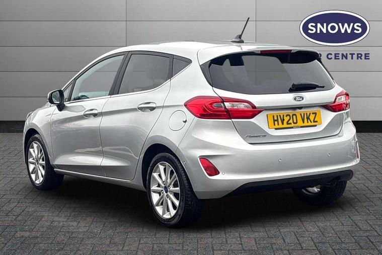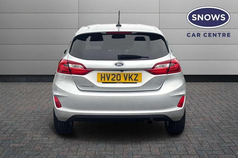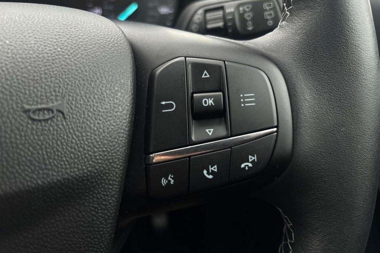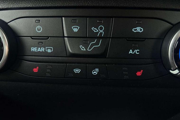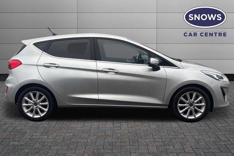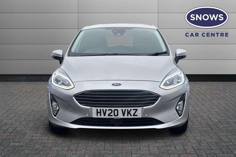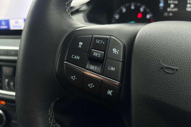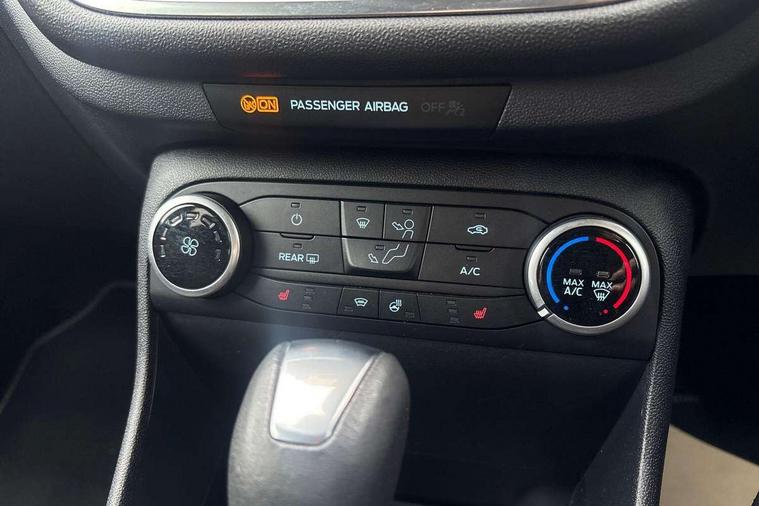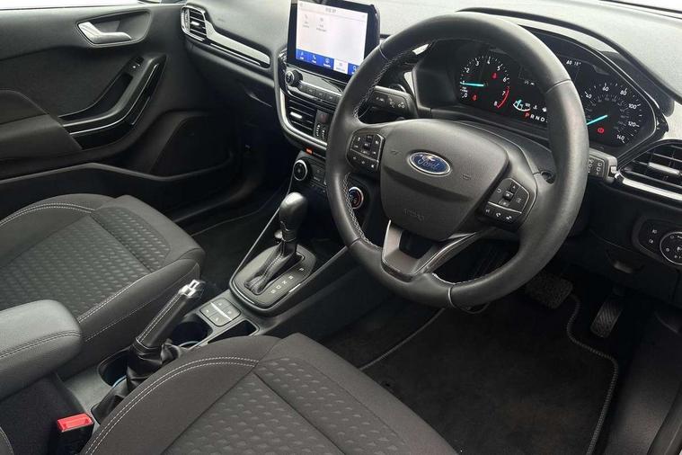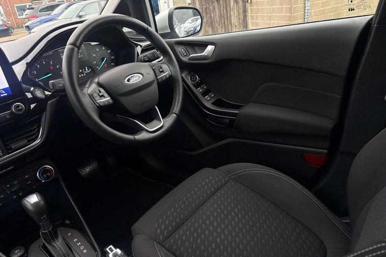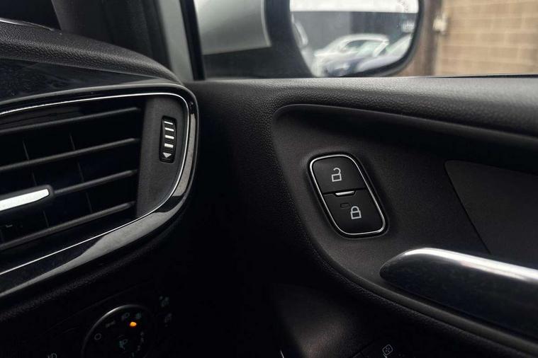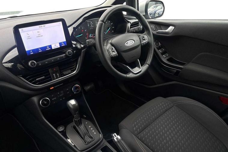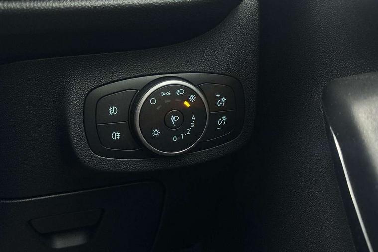 Bluetooth system, Electric power steering, Ford easy fuel, Ford SYNC 3 Navigation system incl 8" touchscreen, 7 speakers, FordPass connect, Apple carplay, android auto, voice control and emergency assistance, Rear parking distance sensors, Trip computer, 2 USB ports, Auxiliary input socket, DAB Digital radio, Steering wheel mounted controls, Body colour bumpers, Body colour door handles, Body colour rear spoiler, Body coloured electrically operated and heated door mirrors with side indicators, Chrome beltline trim, Chrome front grille, Chrome lower window surround, Cornering front fog lights, Electric front windows/one touch facility, Electric rear windows, LED Night signature to rear lights, Power foldable door mirrors with puddle lights, Quickclear heated windscreen, Rain sensing wipers and auto dimming rear view mirror, Rear privacy glass, Rear wiper, 12V Accessory socket in centre console, 3 spoke leather trimmed steering wheel with audio control, 60/40 split folding rear seat, Adjustable head restraints, Boot carpet, Centre console with armrest and illuminated cupholders, Chrome inner door handles, Cloth upholstery, Footwell illumination, Front and rear velour floor mats, Front map reading lights, Front seat and rear pockets, Height adjustable driver's seat, Illuminated glovebox, LED ambient lighting, Load area light, Luxury woven headliner, Manual air conditioning, Overhead console with sunglasses holder, Pollen filter, Rake/reach adjustable steering wheel, Sensico wrapped handbrake and gearknob, NCAP Pack - Fiesta, 3 point seatbelts on all rear seats, ABS+EBA, Curtain airbags, Driver and passenger airbags, Drivers knee airbag, Electronic stability control with hill start assist, Front passenger airbag deactivation, Front side airbags, Seatbelt warning, Two tone horn, Tyre pressure monitoring system, Keyless start with 'Ford Power' starter button, MyKey system, Remote central locking & engine immobiliser, Thatcham Cat.1 alarm, 16" 10 spoke alloy wheels,