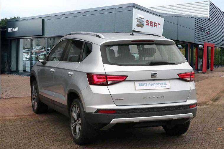 'Lights On' Reminder warning buzzer, Driver alert system, Electric speed sensitive power steering, Full Link App interface, Low fuel warning light, Multi function display, Outside temperature gauge, Rear parking sensor, Remote fuel flap release, SEAT Drive profile, SEAT logo boot release, Trip computer, Comfort suspension, XDS electronic differential lock, Steering wheel mounted audio/phone controls, Aluminium roof rails, Body colour bumpers, Body colour door handles, Body colour door mirrors, Chrome headlight surround, Chrome side window trim, Chromed centre radiator grille surround, Electric folding door mirrors, Electrically adjustable and heated door mirrors, Front and rear electric windows, LED daytime running lights, LED front fog lights with static cornering light function, LED Headlights, LED tail lights, Rear wash/wipe, 12V power point front, 3 height adjustable rear headrests, 4 Lashing eyes in boot, 60/40 split folding rear seat, Active head restraints, Adjustable front armrest with storage compartment, Card holder, Cloth upholstery, Comfort front seats, Driver/passenger lumbar adjustment, Driver/passenger sunvisors with illuminated vanity mirrors, Dual zone climate control, Footwell illumination, Front cupholders x 2, Front reading lights, Front seat back storage pockets, Height adjustable driver's seat, Height adjustable front headrests, Height adjustable passenger seat, Illuminated boot, Isofix child seat preparation, Leather steering wheel and gear knob, Rear armrest, Rear central air outlet, Rear reading lights, Storage box under drivers seat, Navigation system pack - Ateca, Seat Media System Plus pack - Ateca, 3x3 point rear seatbelts, ABS, Auto hold function, Automatic post collision braking, Curtain airbags, Driver/Front Passenger airbags, Drivers knee airbag, Electronic parking brake, Electronic stability control, ESP+EBA, Front and rear seatbelt reminder, Front assist including city emergency braking, Front passenger airbag deactivation, Front side airbags, Hill hold control, Predictive pedestrian protection, Tiredness recognition system, Traction control, Tyre pressure monitoring system, 2 folding remote keys with window open/close function, Immobiliser, Locking wheel bolts, Remote central locking, Volumetric alarm with back up horn, Chrome effect dashboard facia, 18" Bi-colour alloy wheels,