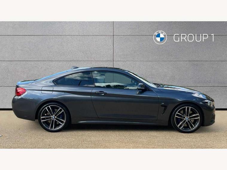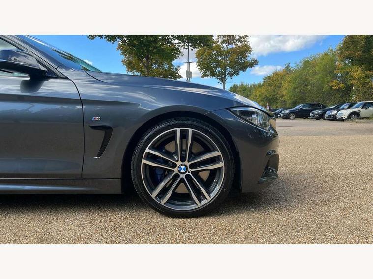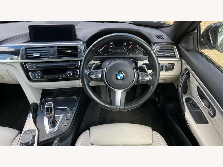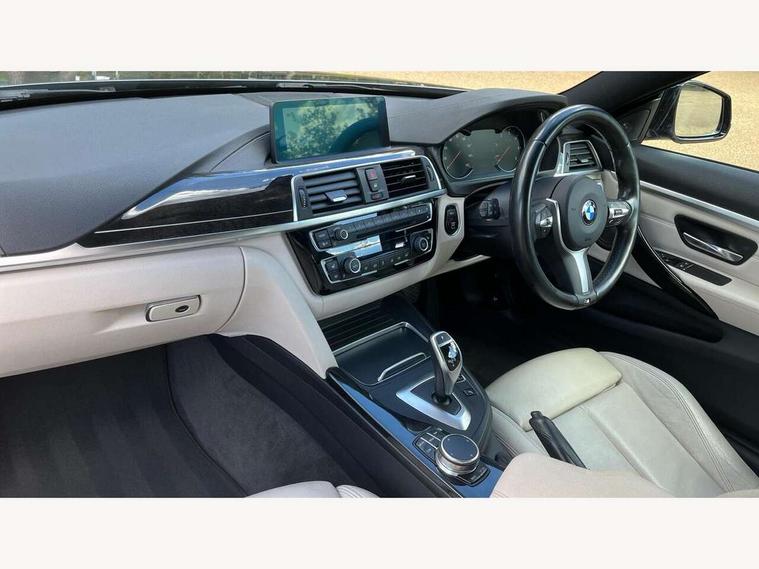 BMW Online services, BMW remote services, BMW Teleservices, Brake pad wear indicator warning light, Check control system, Door/boot open warning, Front/rear Parking distance control, iDrive controller and display with 6.5" monitor, Lights on warning, Oil temperature gauge, On board computer, Outside temperature display, Real time traffic information, Run flat indicator, Service interval indicator, Stop/start button, Diesel particulate filter, Drive Performance Control, Electronic differential lock, Sports function on gearbox with steering wheel mounted gearshift paddles, Bluetooth audio streaming, BMW professional radio/CD/MP3, DAB Digital radio, 2 speed adjustable intermittent wipers with wash/wipe function, Auto dimming rear view mirror, Body colour bumpers, Body colour door handles, Body colour door mirrors, Body colour roof mouldings, Chrome kidney grille with black vertical slats, Door sill finishers, Dual chrome exhaust, Electric adjustable heated door mirrors, Electric front windows/one touch facility, Follow me home headlights, Heat insulating tinted glass, Heated windscreen washer jets, High gloss shadow line, LED daytime running lights, LED front fog lights, M aerodynamic bodystyling, Rain sensor including auto headlights activation, Welcome lighting, Windscreen with grey shadeband, 12V sockets in front centre console and passenger footwell, 3 spoke leather M sport multifunction sports steering wheel, 4 grab handles, Anthracite headlining, Anthracite Velour floor mats, Dual zone climate control, Folding front centre armrest with storage compartment, Folding storage compartment with glasses holder + coin tray, Front cupholders x 2, Front door storage with bottle holder, Front head restraints, Front sports seats with electric side bolster adjustment, Front/rear armrests within door panels, Glovebox with lid, Heated front seats, Integrated rear head restraints, ISOFIX child seat preparation+airbag deactivation, Lashing eyelets in boot, Leather gearknob, Leather handbrake grip, Reach + rake adjustable steering column, Rear centre armrest with 2 cupholders, Storage compartment in rear centre console, Toolkit located in luggage compartment, Extended lights package - 4 Series, Media pack - Professional - 4 Series, ABS/EBD, Automatic Stability Control (ASC), BMW emergency call, Brake energy regeneration, Cornering brake control (CBC), Crash Sensor - activates hazard/interior lighting + unlocks doors, Driver seatbelt warning indicator, Driver/Front Passenger airbags, DSC+, Dynamic brake control, Dynamic Traction Control - DTC, Front passenger airbag deactivation, Front seatbelt force limiters, Front seatbelt pretensioner, Front side airbags, Hill start assist, ITS head airbags for front/rear, Side impact protection, Tyre pressure monitor, Warning triangle and first aid kit, Central locking including fuel filler and boot, Drive away door locking, Electronic immobiliser, Remote control Thatcham category 1 alarm, Run flat tyres,