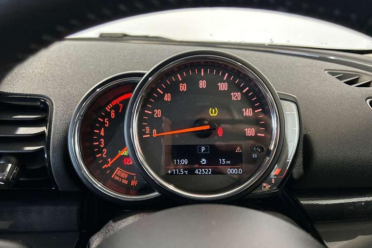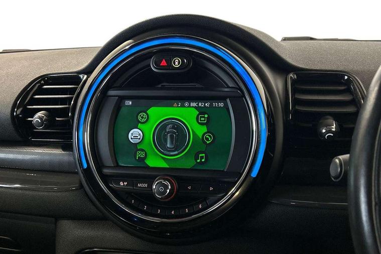 Interior lights pack - Mini Clubman, Drive away door locking, Keyless Start, Locking wheel bolts, RF remote control central locking, Second remote key, Thatcham category 1 alarm + immobiliser, Auxiliary input socket, DAB digital radio module, MP3 compatible radio/single CD player, Radio visual boost, 3 point automatic seatbelts, 3 point seatbelts on all rear seats, ABS, Automatic Stability Control (ASC), CBC - (Cornering brake control), Crash Sensor - activates hazard/interior lighting + unlocks doors, Driver and passenger airbags, Driver and passenger side airbags, DSC - Dynamic Stability Control, Electronic brake force distribution, Electronic parking brake, Front curtain airbags, Front passenger airbag deactivation, Fuel cut off safety device, Head airbags, Hill start assist, Pyrotechnically pre-tensioned front seatbelts, Single tone horn, Tyre pressure warning, Anti dazzle rear view mirror, Black side scuttle with indicators, Body coloured bumpers, Chrome exhaust tailpipe, Chrome headlight surround, Chrome plated radiator grille, Dynamic brake lights, Electric front windows + one touch + anti-pinch, Electrically adjustable door mirrors, Follow me home headlights, Front intermittent wipers, Green tinted glass, Heated door mirrors/heated windscreen washers, Heated rear window with timer, Illuminated door handles, Metal look door sill finishers, Rain sensor including auto headlights activation, Rear fog lights, Rear spoiler in roof colour, Rear wiper, Wheelarch extensions, White indicator lights, 12V power point front, 4 lashing points to secure luggage, 60/40 split folding rear seat, Centre console storage box, Chrome interior door handles, Driver/passenger sunvisors, Easy entry seats, Front and rear cupholders, Front headrests, Front interior light, Front passenger grab handle, Front seat backrest storage nets, Heater with recirculation function, Height/reach adjust steering wheel, Isofix rear child seat preparation, Luggage compartment lighting, Multifunction steering wheel, Outer passenger rear headrests, Rear armrest with storage, Rear grab handles, Storage compartments in doors, Toolkit in luggage compartment, Apple car play, Brake pad wear indicator warning light, Central display with LED ring and 6.5" colour touch screen, Connected driver, DTC - Dynamic traction control, Exterior temperature gauge, Instrument cluster, Intelligent emergency call, Interior fuel flap release, MINI remote services, MINI TeleServices, Navigation system, On board computer, Personal Profile, Real time traffic information, Run flat indicator, Service interval indicator, Servotronic speed sensitive power steering, Electronic differential lock,