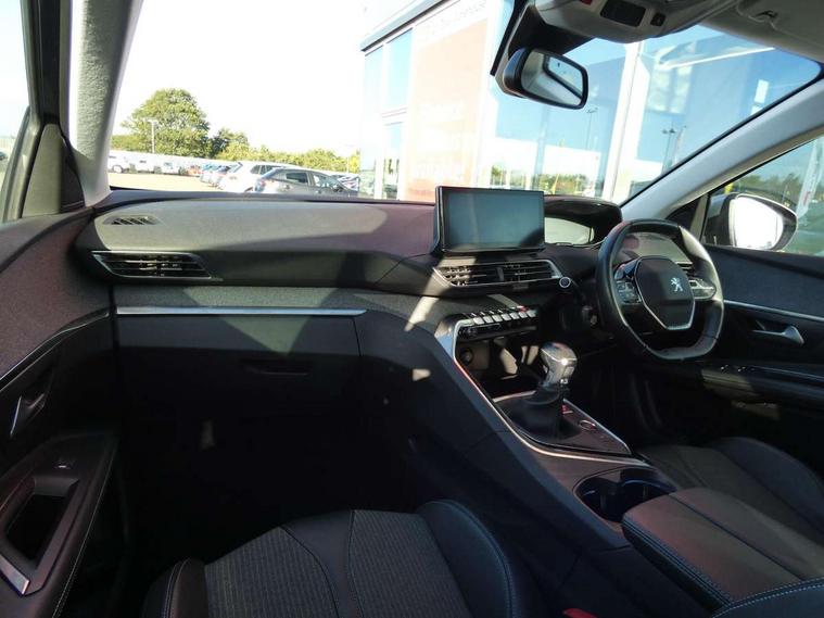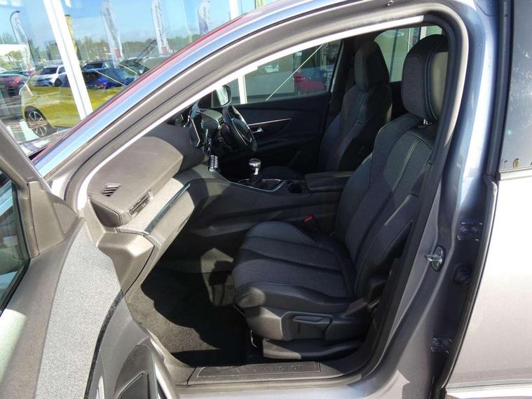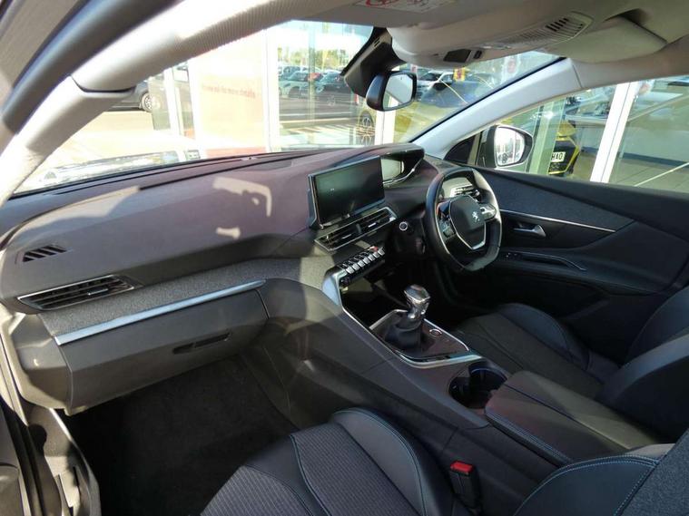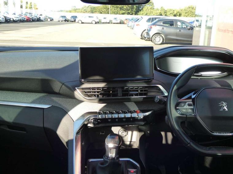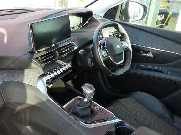 3D connected navigation with 10" HD touchscreen + voice recognition system, Bluetooth telephone facility, Driver attention alert system, Extended traffic sign recognition, Exterior temperature indicator with ice warning, Front parking sensors, Lane departure warning system, Mirror screen with mirror link, apple carplay and android auto, Multi function trip computer, Passive blind spot monitoring without Steering correction, PEUGEOT i-Cockpit with 8.0" capacitive touchscreen in centre console, Peugeot i-cockpit with compact multi-function sports steering wheel, PEUGEOT i-Cockpit with configurable 12.3" Head-up digital instrument panel, PEUGEOT SOS and assistance, Programmable cruise control and speed limiter, Rear parking aid, Speed limit recognition and recommendation, Dynamic stability control and electronic anti-skid system, Stop/start function, 6 speakers radio with mp3 compatible, DAB Digital radio, USB socket, Aluminium longitudinal roof bars, Automatic hazard light activation upon heavy brake application, Automatic triggered rear windscreen wiper in reverse gear, Black rubber side window trim, Body colour door handles, Body colour door mirror shells, Body colour rear roof spoiler with stainless steel edging trim, Body protectors (bottom of front and rear bumpers + wheel arches + protection at bottom of doors) in black, Chrome front wing trim, Chrome rear bumper facia, Dark tinted rear side windows + tailgate window, Eco LED headlights, Electric folding door mirrors, Electric operated/heated door mirrors, Front and rear door and sill protectors with polished stainless steel insert, Front windscreen wiper with magic wash cleaning system, Gloss black B and C pillar and aerodynamic deflector trim, Gloss black front bumper air scoops, Gloss black rear cluster connecting strip, Headlights left on audible warning, Heated rear windscreen with integrated antenna, LED daytime running lights, LED rear number plate lighting, LED side indicator lights integrated into door mirrors, LED third brake light, One touch electric front/rear windows with pinch protection, Radiator grille in chrome edge trim and facets, Rear LED Peugeot signature 'Claw Effect' lights, Rear side wing doors, Stainless steel roof arches, 1/3 to 2/3 split folding rear seats, 12V Sockets in dashboard, rear cabin and load area, 2 cupholders in front centre console, 2x Rear coat hooks, 3x Isofix child seat fittings in the front passenger and outer rear seats, 4 Grab handles retractable and damped, Blue ambient lighting for connecting zone, Blue ambient lighting to front door panels, central storage and cupholders, Brumeo fabric trimmed door armrests, Centre front armrest with butterfly wing opening and illuminated storage compartment, Dual zone automatic climate control, Electric power steering with reach and rake adjustable steering column, Flocked glovebox interior, Foldable front passenger seat, Footwell illumination, Front interior light with 2 reading spotlights and rear interior light with timer, Front seat back map pockets, Gear shift indicator, Height adjustable front seats, Illuminated glovebox, Individual left and right controls in boot for seat folding, Leather steering wheel with detail stitch, LED interior lighting in storage spaces and load area, Rear bench seat with central armrest and ski hatch, Rear centre console ventilation system, Roof lining - Salin light grey, Satin chrome dashboard trim, Satin chrome digital instrument panel and touchscreen trim, Satin chrome front door panel recess trim, Satin chrome interior door handles, Satin chrome scorpion's tail and toggle switch trim, Seatbelt not fastened audible and visual alert for front seats, Seatbelt unfastened on the move audible and visual alert for front and rear seats, Sunvisors with illuminated vanity mirrors, Two position boot floor, Safety pack with emergency braking system - 3008, Safety plus pack with high beam assist - 3008, Visibility pack - 3008, 3x Rear three-point retractable seatbelts with force limiters in the outer rear seats, ABS (Anti-lock Braking System) with EBD (Electronic Brakeforce Distribution) and EBA (Emergency Braking Assistance), Adaptive driver and front passenger airbags with passenger airbag deactivation function, Driver and front passenger side airbags, Electric child locking functionality on rear windows and doors, Electric parking brake, Front and rear curtain airbags, Front optimised safety headrests and 3 x rear retractable headrests with height adjustable, Front three point retractable seatbelts with pre tensioners and force limiters, Front ventilated disc brakes and rear disc brakes, Hill start assist, Two tone horn, Automatic door locking when moving off, Electronic immobiliser, key operated exterior door lock from the left hand door, Perimetric and volumetric alarm with lift and tilt sensor, Peugeot Open and Go System, Remote control central locking with two plip keys, Brumeo fabric Dashboard, front and rear door panel finish, Puncture repair kit including compressor, sealant cartridge and towing eye,