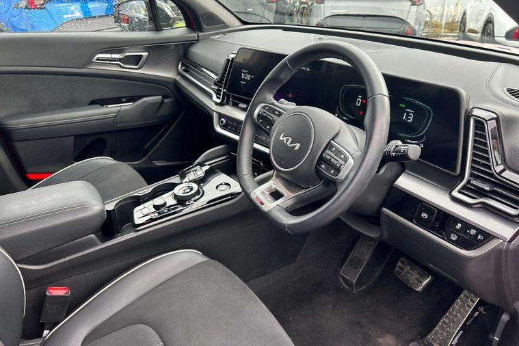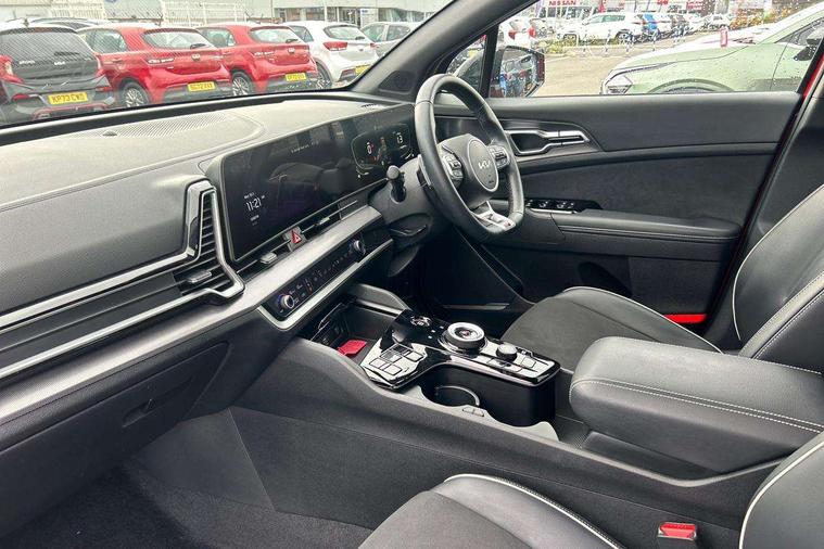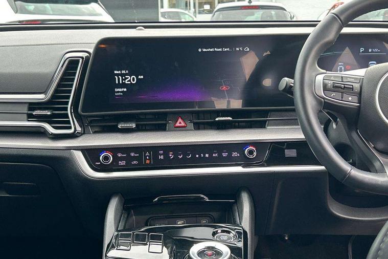 12.3" Display with navigation, 4.2" supervision colour cluster display, Apple car play/Android Auto with voice control, Drive mode selector, E-call, Forward collision avoidance assist (FCA) - city/pedestrian/cyclist/junction covering, Front and rear parking sensors, Highway Driving Assist (HDA), Intelligent speed limit assist, Kia Connect (UVO), Lane Following Assist (LFA), Lane keep assist, Low washer fluid warning, Rear view monitor, Reversing camera system integrated into centre fascia screen, Smart cruise control with stop and go functionality, Speed sensitive power steering, Trip computer, Windscreen washer level indicator, Intelligent Stop and Go, 6 speaker audio system, Bluetooth audio streaming, DAB Radio with MP3, Rear USB port, Steering wheel mounted audio controls, USB C type charging ports on centre console, USB C type charging ports on side of front seats, USB port for connection of a media device, All round electric windows with drivers and front passenger auto up/down function, Automatic headlight control system, Automatic window defogger, Backlite glass heated with timer, Body colour and black bumper with silver accents, Body colour exterior door handles, Body colour radiator upper garnish and door garnish, Electrically adjustable/heated/folding door mirrors with LED indicators, Front and rear chrome skid plates, Gloss black door mirrors, Gloss black radiator grille, Gloss black side sill and wheel arch body mouldings, Glossy black roof rack, High beam assist, Interior electrochromic mirror, LED daytime running lights, LED front fog lamps, LED headlamps (low and high beam - MFR type), LED High mounted stop light, LED rear combination lamp, Rain sensing wipers with aero blades, Rear fog lamp, Rear privacy glass, Rear side wing doors, Rear spoiler, Rear wiper, Satin finished beltline, Trailer stability assist, 12V power socket in front centre fascia and luggage compartment, 2nd row personal lamps, 3 seat bench in 2nd row, 3 x passenger assist grips, 40/20/40 split folding rear seat, All-round height adjustable headrests, Black headlining, Centre console storage box, Cupholders in rear armrest, D-Shaped sports leather steering wheel and perforated inserts with GT-Line logo, Door courtesy lamps, Drink holder at centre armrest, Driver and front passenger side sunvisors with illuminated vanity mirrors, Driver's seat manual height adjust, Drivers seat power lumbar support, Front and rear door storage, Front seat and rear pockets, Front/rear centre armrests, Gear shift indicator, Glovebox illumination, Interior door lock/unlock function, ISOFIX Child seat top tethers and anchor fixings outer rear seats, Luggage area light, Luggage area load cover, Luggage net with hooks, Metal paint interior door handles, Overhead console lamp, Paddle shift controls, Rear coat hooks, Single front passenger seat, Sports pedals, Suede leather upholstery, Three zone climate control, Tilt/telescopic adjustable steering wheel, Ventilation ducts to rear compartment, Active front headrests, All round 3-point seatbelts, Anti-lock braking system (ABS), Dual front side airbags, Dual horn, Electronic parking brake, Electronic stability control with downhill brake control, Front passenger airbag cut-off switch, Front seatbelt pretensioners + load limiters, Height adjustable front seatbelts, Hill start assist control (HAC), Impact sensing auto door unlocking, Multi collision brake assist, Rear door child safety locks, Rear seat alert system, Traction control, Twin curtain airbags, Twin front airbags, Tyre pressure monitoring system, Advanced anti-theft system including immobiliser and alarm, Door deadlocks, Engine Start/Stop Button with Smart Entry System, Locking wheel nuts, Speed sensitive auto door locking, Visible vehicle identification number, Aluminium pattern finish centre fascia and door garnish, 18" Alloy wheels, Tyre mobility kit,