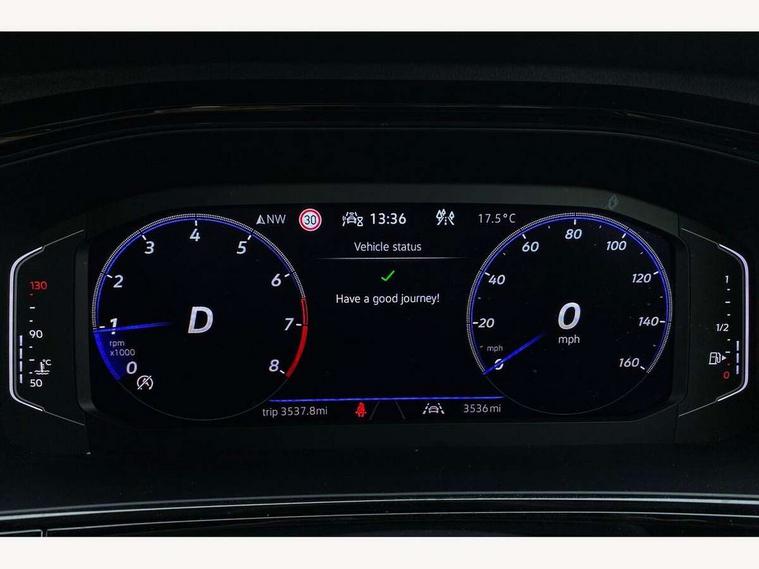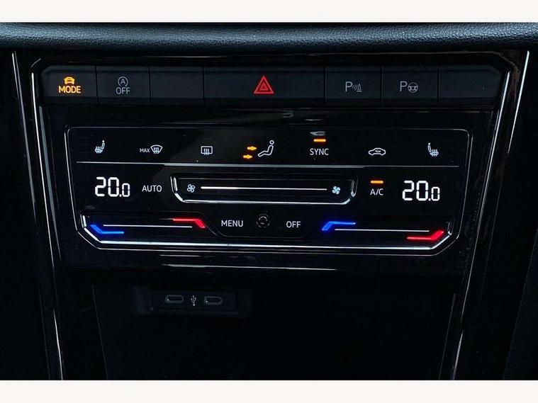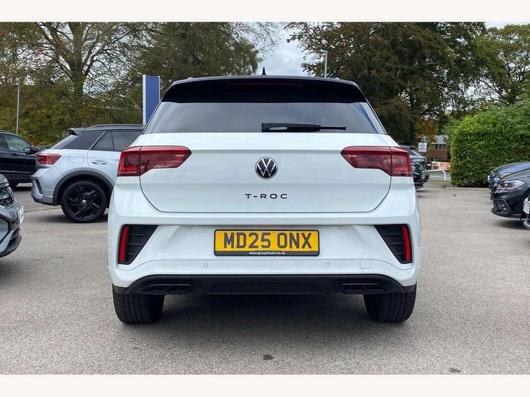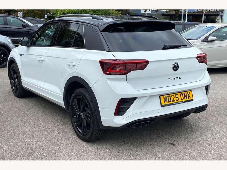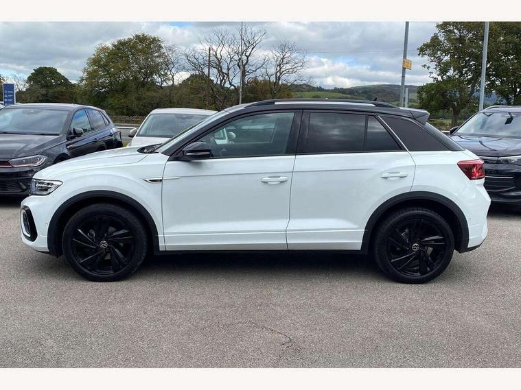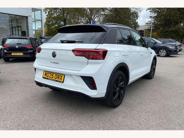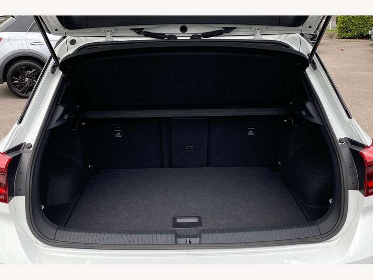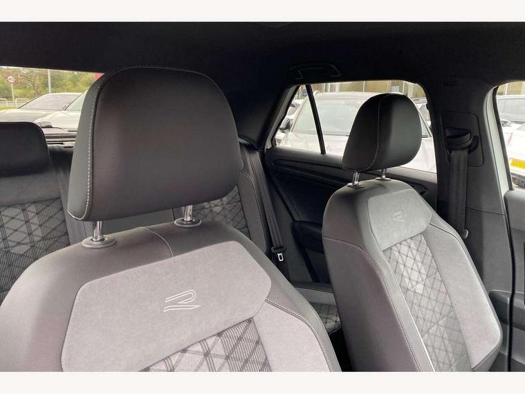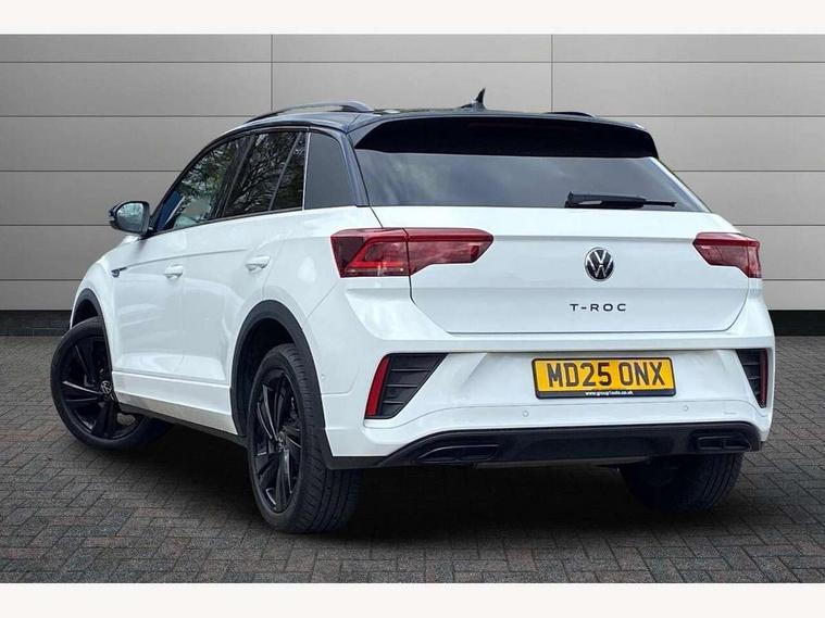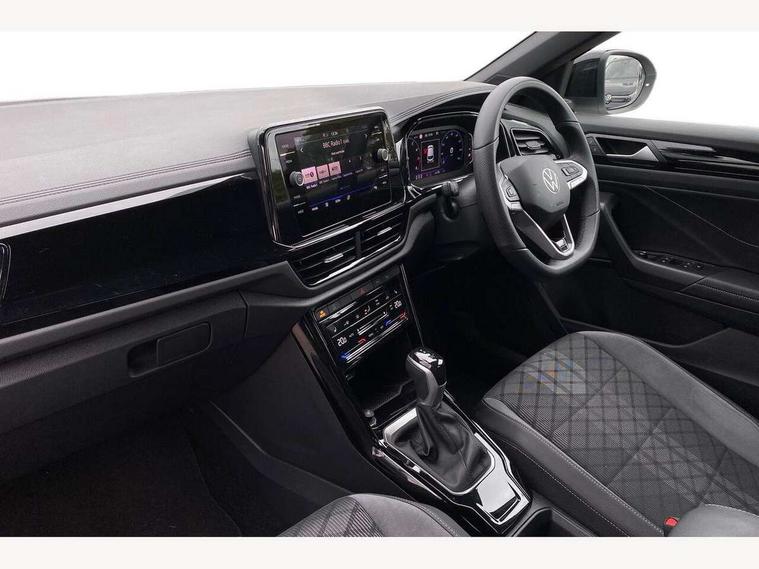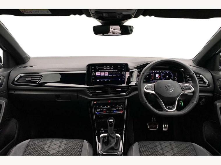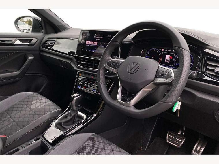 10.25" Digital cockpit pro, Advanced driver attention and drowsiness monitor, Emergency call service, Lane keeping system Lane Assist, Mobile phone interface, Modified key software - reduce switch off time for key status change to Long no motion, Online services, Park assist including front and rear parking sensors, Power assisted speed sensitive steering, Service interval indicator, Tailgate/trunk lid release from outside, Think blue trainer driver tips and journey analysis, Warning sound and light for front seatbelts unfastened, Wireless app connect, Battery regeneration during braking, Rear shock absorption chassis with increased ride height, Start/stop function with battery regeneration, DAB Digital radio, Diversity antenna for FM reception, Front and rear 6 speakers, Music playback - MP3, WMA and AAC files, Premium USB cable in choice of either Apple or Android smartphone compatibility, SD card slot, Simultaneous pairing of 2 compatible mobile devices, Title and cover art display, We Connect and We Connect Plus functionality, Auto dimming interior rear view mirror, Automatic hazard lights activation under emergency braking, Automatic headlight control with LED separate daytime running lights with coming/leaving home function, Dynamic cornering light, Electrically adjustable and heated door mirrors, Extended roof spoiler, Exterior mirrors aspherical on driver side, convex on front passenger side, External USB type C socket and charging sockets, Front windscreen wiper with intermittent wipe and 4 position delay, Heated rear window, Illuminated front grille, IQ LED matrix headlights, LED 3rd brake light, LED rear number plate lights, LED rear tail lights with dynamic turn signal, Light mode for poor weather, rain, fog or snow, Power windows with comfort operation and circuit breaker, R-Line design body coloured bumpers, Rain sensor, Rear exhaust tailpipe, Rear fog light on one side and reversing lights on both sides, Rear side wing doors, Rear wash/wipe with intermittent wipe setting, Remote electrically foldable door mirrors, puddle lights and reverse activated passenger's door mirror, 12V power socket in centre console, 3 rear head restraints, 3 seat bench in 2nd row, 4 load lashing points in luggage compartment, Air care climatronic air conditoning system with active combination filter and 2-zone temperature control, Artvelours cloth upholstery, Black roof lining, Chrome plated radiator grille inserts, air vent surrounds and light switch surrounds, Door and side trim panel with leatherette insert, Drawer under drivers seat, Driver seat height adjust, Driver's seat lumbar support, Front + rear carpet mats, Front centre armrest, Front comfort sports seats, Front cupholders x 2, Front footwell illumination, Front reading light, Front scuff plates with R Line logo, Front seat back storage pockets, Glove compartment door with light, Instrument lighting, white adjustable panel illumination, Interior ambient lighting and surround lighting, Interior light delay, Isofix child seat preparation, Leather gearshift handle, Leather wrapped multifunction steering wheel with paddle shift, Load-through provision with cup holder when folded down ('Unsplit rear seat bench, split folding backrest, with centre armrest), Luggage compartment lighting, Non-folding front passenger seat backrest, Passenger seat height adjuster, Passenger seat lumbar support, Single front passenger seat, Stainless steel pedals, Storage compartment in left and right luggage area, Storage compartment in rear doors, Storage compartments in driver and front passenger doors, Sunvisors with illuminated vanity mirrors, Variable boot floor, height adjustable and removable, Winter pack without heated windscreen washer jets - T-Roc, 3 point height adj front seatbelts + pretensioners, 3 point seatbelts in outer rear with ECE label, ABS, Child locks on rear doors, City emergency braking and pedestrian monitoring, Driver and front passenger airbag with front passenger airbag deactivation, Driver and front passenger safety-optimised head restraints, Drivers seatbelt reminder, Electronic parking brake, Electronic Stability Control (ESC) inc EDL (Electronic Differential Lock) and ASR (Traction Control), Front and rear passengers curtain airbag system including front side airbags, Front disc brakes, Hill start assist, Predictive pedestrian protection, Rear disc brakes, Two tone horn, Tyre pressure loss indicator, Volkswagen roadside assistance, Tool kit, Trims for alloy wheels, Tyre mobility kit including compressor and sealing foam,