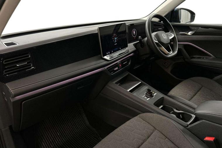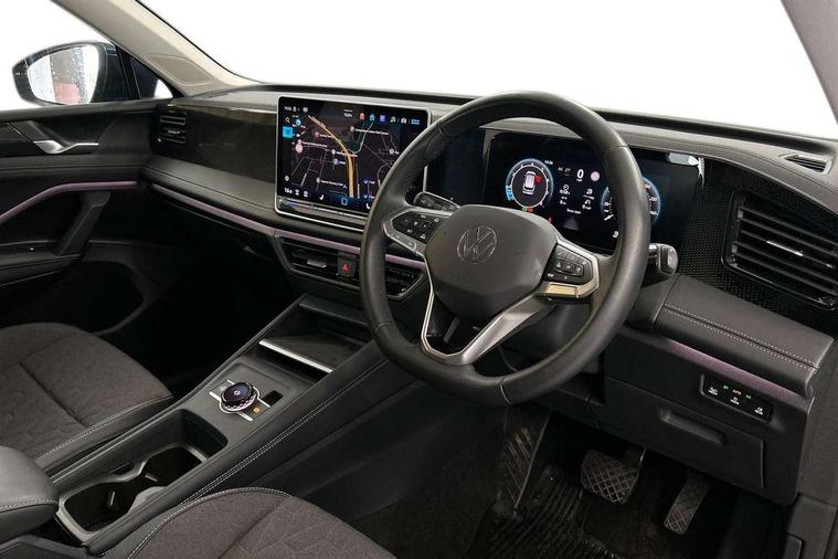 Adaptive cruise control (ACC), Advanced driver attention and drowsiness monitor, Bluetooth mobile phone interface, Digital Cockpit Pro - 10.25" high resolution dash display screen with customisable menus and information, Dynamic road sign display, E-Sim card for online connectivity, eCall emergency call service, Front Assist - Autonomous emergency braking with pedestrian and cyclist monitoring, Lane change system, Side assist, Rear traffic alert and Exit warning system, Lane keeping system Lane Assist, Multifunction front facing camera, Oncoming vehicle braking when turning including swerve support, Park assistance plus with front and rear parking sensors, Power assisted steering with speed sensitive, Start/stop system with regenerative braking, Warning signal and warning light for front and rear seatbelts not fastened, Wireless App-Connect, Front wheel drive, Digital radio reception (DAB), Diversity antenna for FM reception, Ambient lighting with logo projection, Auto dimming interior rear view mirror, Automatic headlight control system, Body coloured bumpers and air intake with chrome trim, Body coloured door handles, Body-coloured exterior mirror housings, Coming/leaving home lighting function, Heat insulating glass in side and rear windows, Heat insulating windshield, Heated rear window, High level 3rd brake light, Illuminated door handle recesses, Illuminated lightline between headlamps, Rain sensor windscreen wipers, Rear fog light on one side, reversing light on both sides, Rear side wing doors, Rear wiper, 12V outlet in center console rear and in luggage compartment, 12V socket in centre console, 3 bench rear seats in 2nd row, Air care climatronic 3 zone air conditioning system with rear air conditioning control panel, Carpet mats, front and rear, Centre console with illuminated storage compartment with sliding cover and two drinks holders, Ceramique headlining, Door and side trim panel in foam film and woven fabric, Front centre armrest, ISOFIX anchors for child seats on outer rear seats and front passenger seat compatible with i-Size, Mechanical rear seat release, Power adjustable lumbar support in front, Rear bench seat, split folding, longitudinally movable and folding with load-through hatch and centre armrest, Safety optimised front head restraints, Single front passenger seat, Sun visors with illuminated vanity mirrors, Three rear head restraints, Variable luggage compartment floor, Comfort package incl. Memory feature for Park assist and Safelock - Tiguan, Design package - Tiguan, 3 point seat belt for centre rear seats, 3 Point seat belts in front with pretensioners, 3 point seatbelts in outer rear with ECE label, Driver and front passenger airbag with front passenger airbag deactivation, Electronic parking brake with auto hold, Front and rear curtain airbags, Front and rear side airbags, Front centre airbag, Front disc brakes, Manual child proof rear door locks, Rear disc brakes, Two tone horn, Warning triangle, Anti theft wheel bolts, Soul instrument panel,